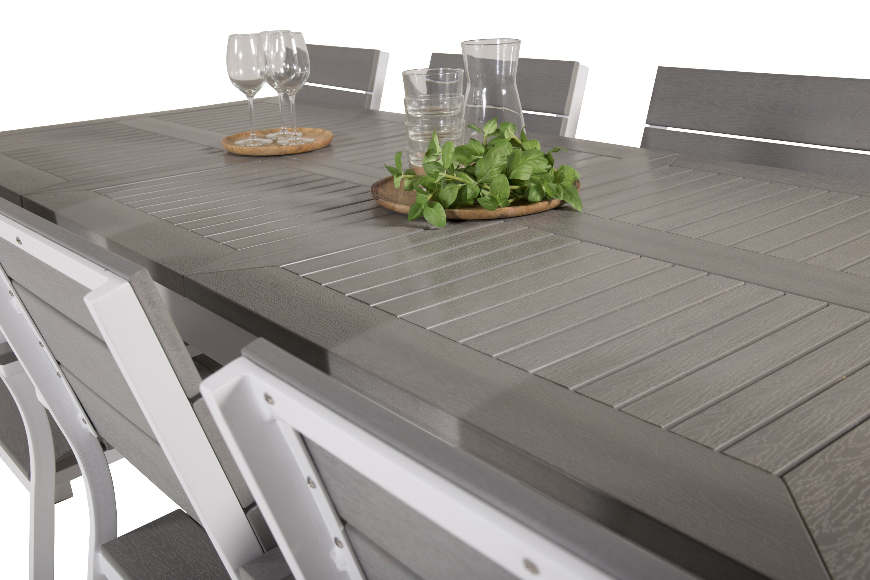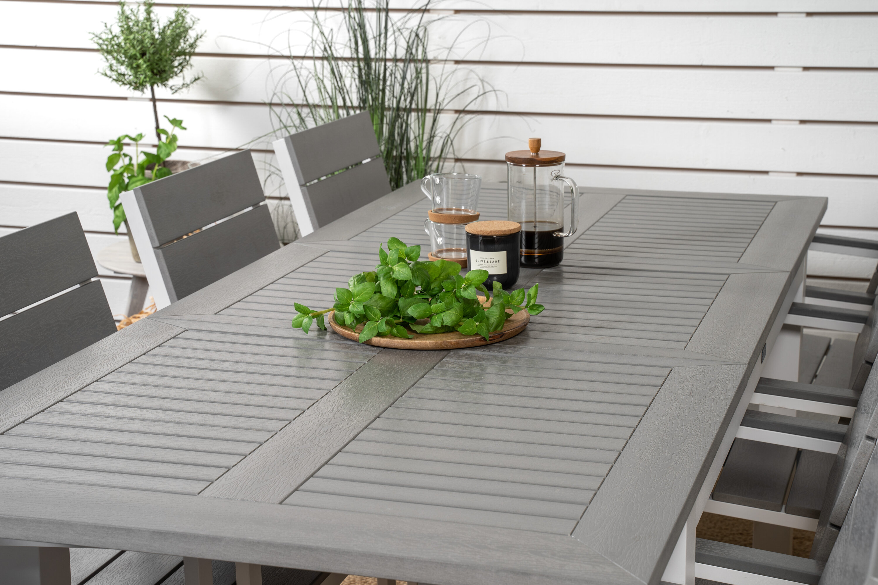 L'achat d'un groupe d'aliments pré-composés est à la fois sûr et pratique. La table à manger extensible Albany ainsi que les chaises à manger Levels - la combinaison donne une expression confortable et luxueuse sur n'importe quel patio !