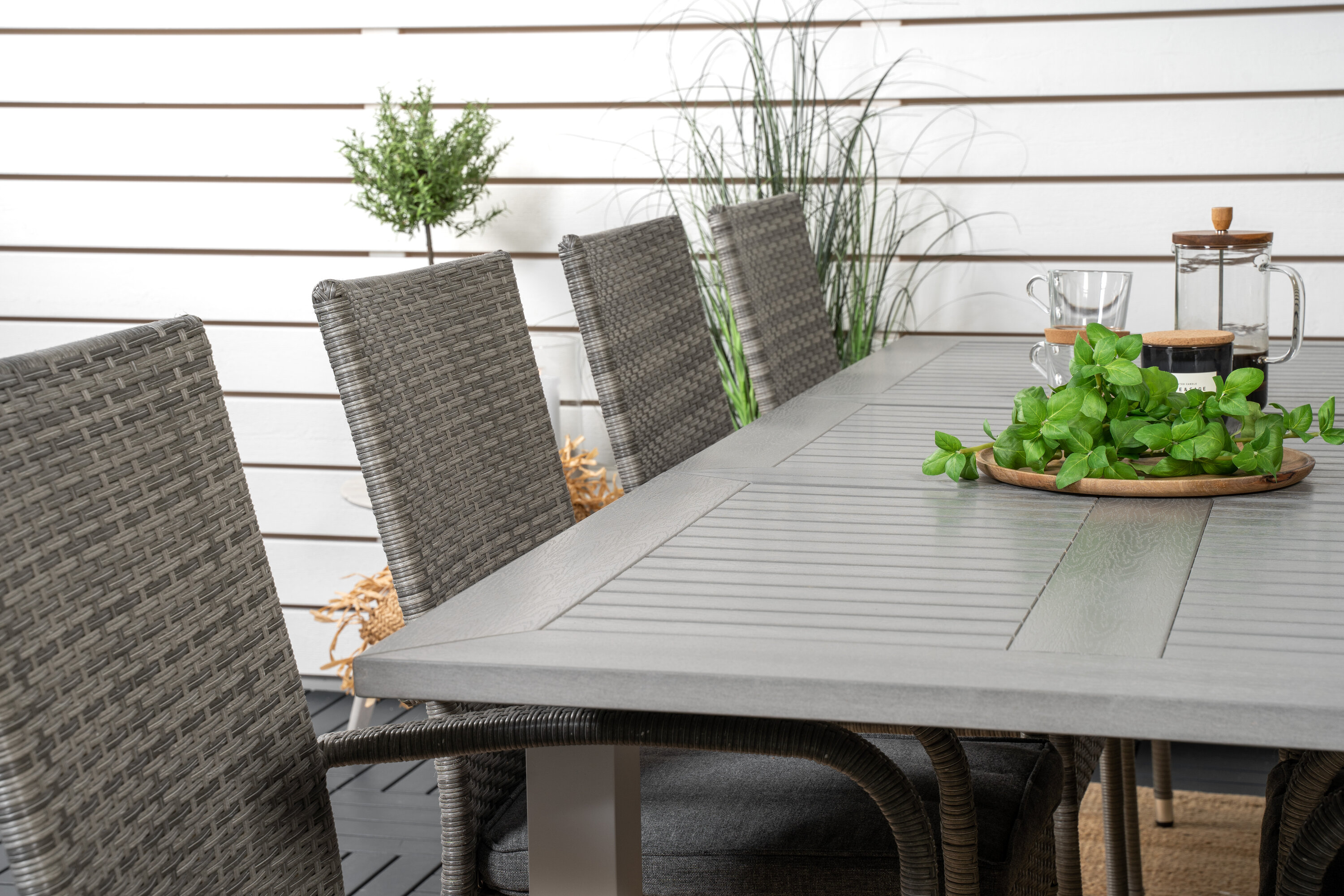 Moderne et intemporel ! Préparez-vous pour la saison en plein air avec ce charmant groupe gastronomique. Avec la table à manger extensible Albany et les chaises de salle à manger Anna, vous n'avez pas à vous soucier de vous asseoir. Invitez à de nombreux moments sociaux à venir !