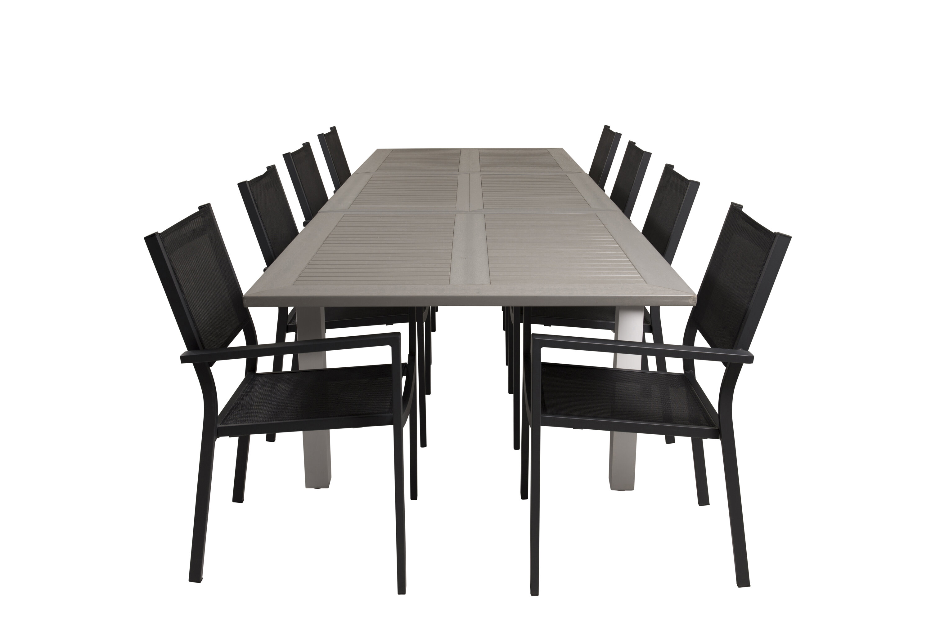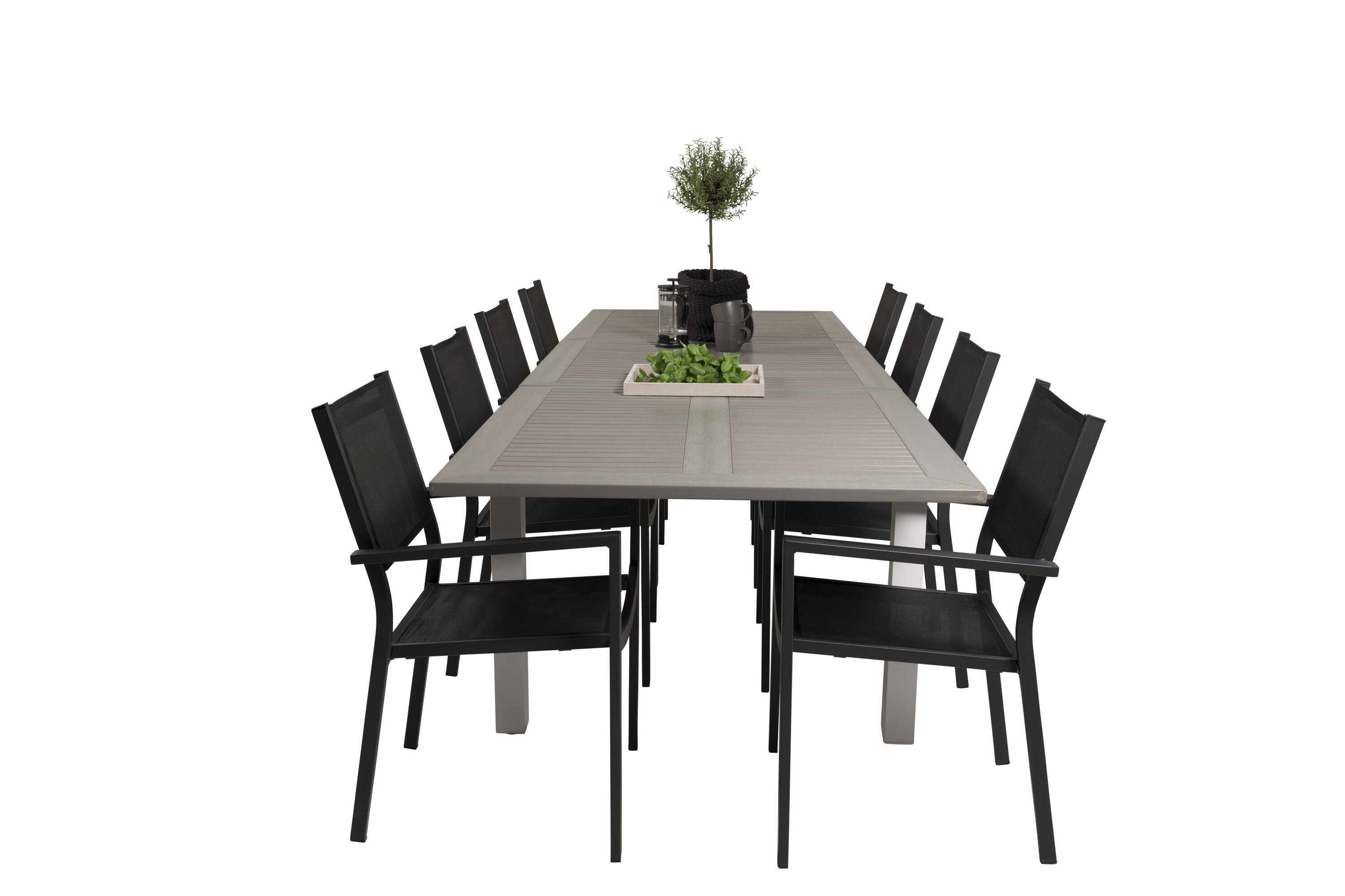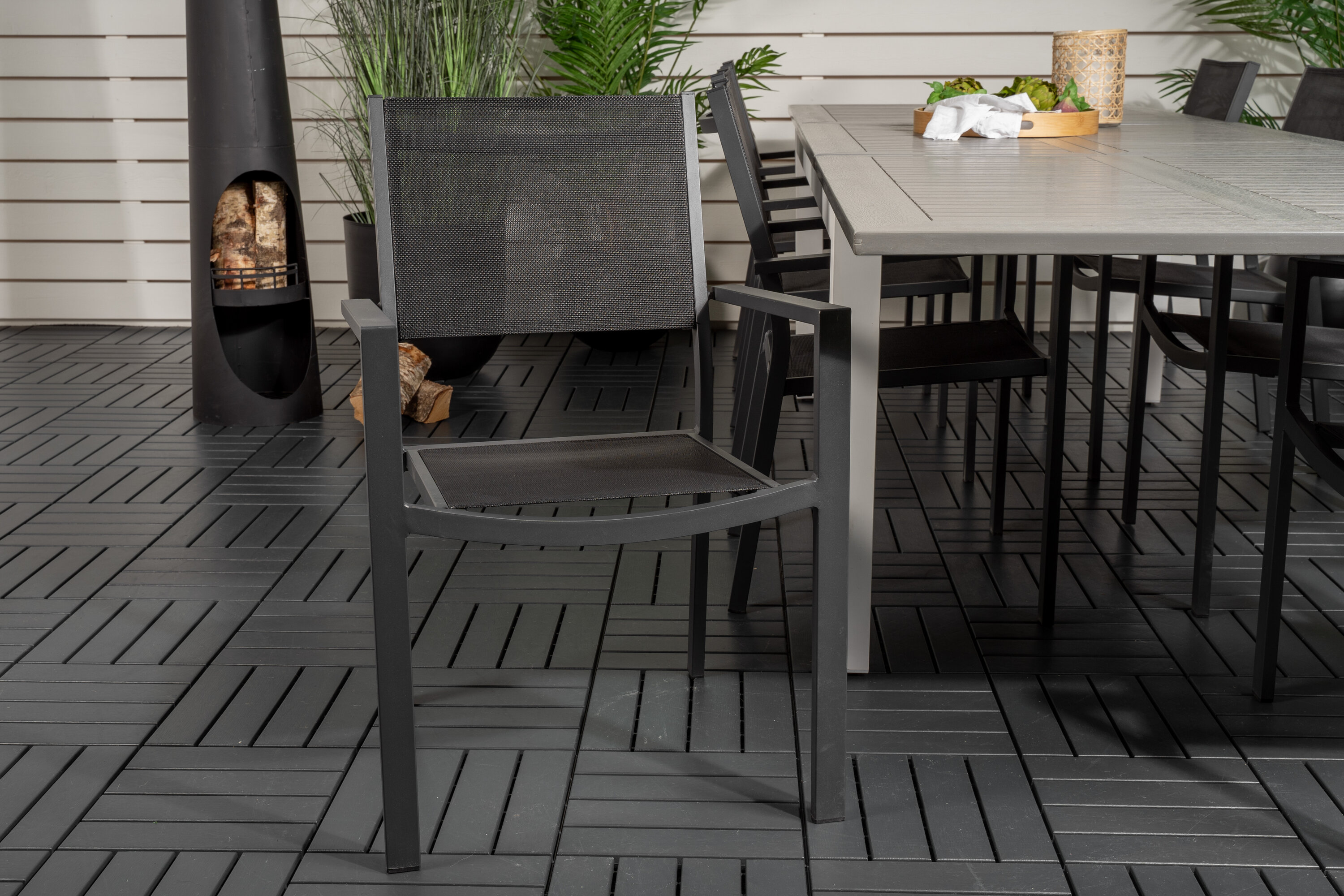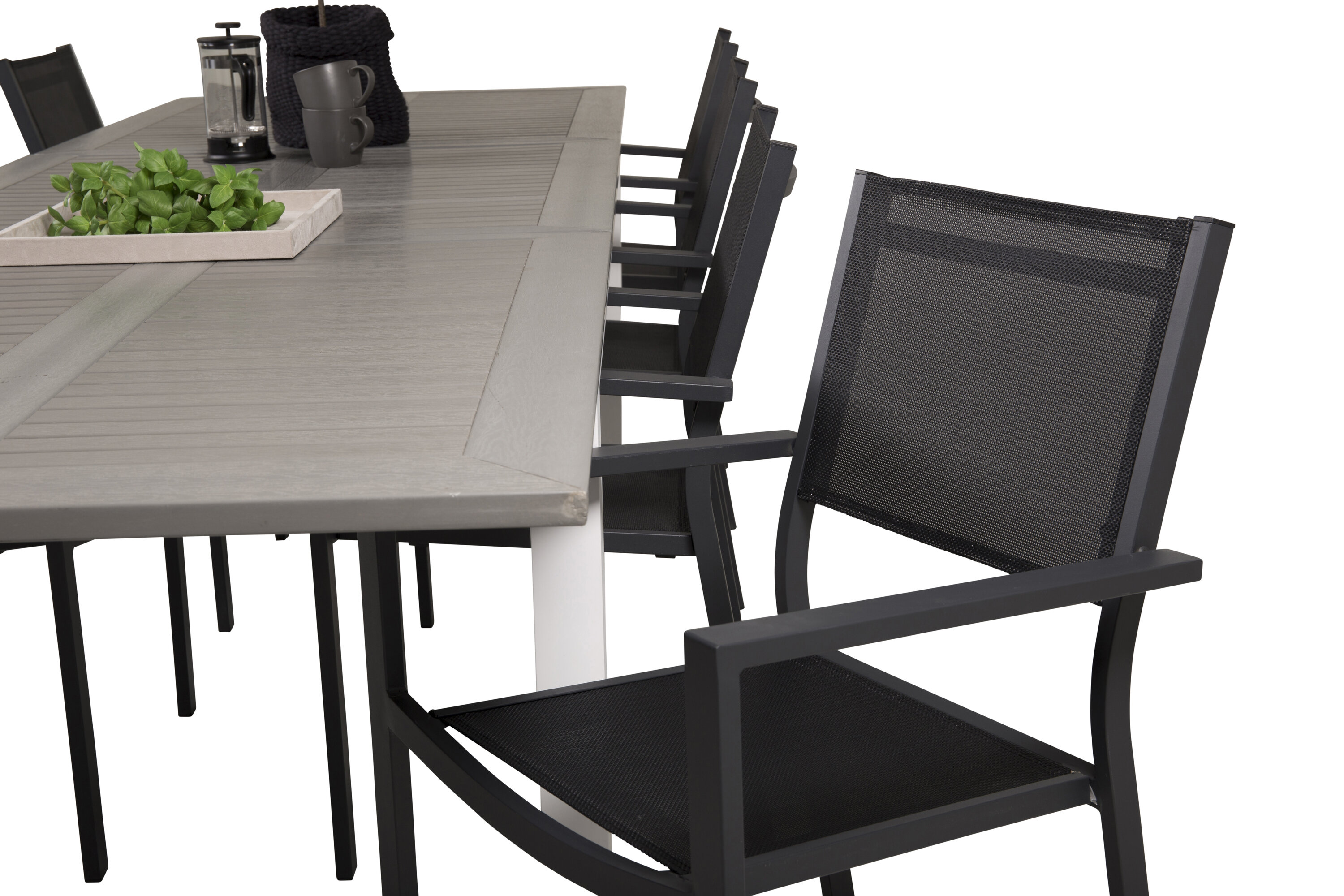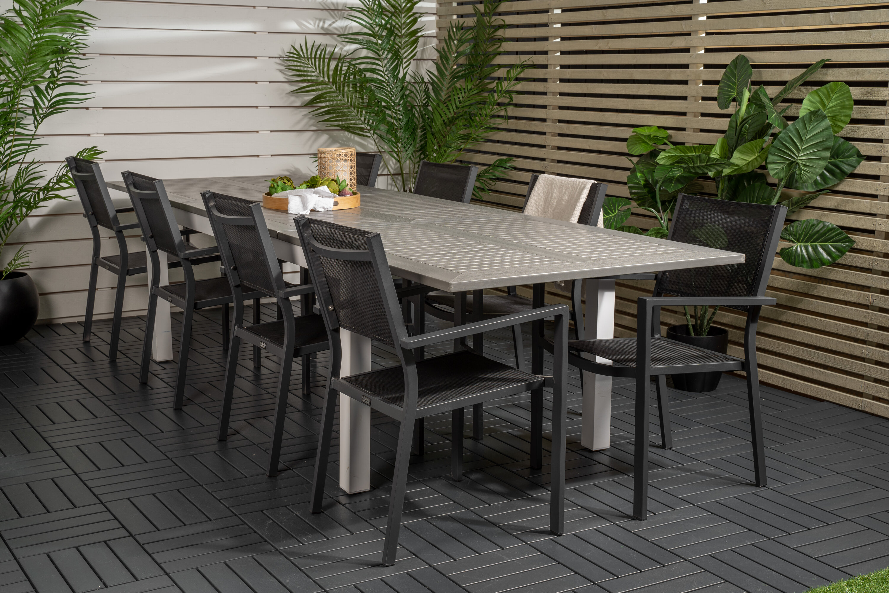Groupe alimentaire qui s'adapte à la plupart des environnements ! Notre table à manger extensible Albany avec des chaises élégantes de la série Copacabana est faite pour ceux qui veulent créer une sensation confortable et moderne dans le jardin ou dans l'espace extérieur. Élargissez vos invitations à dîner et évitez de vous soucier de l'hébergement de tout le monde.