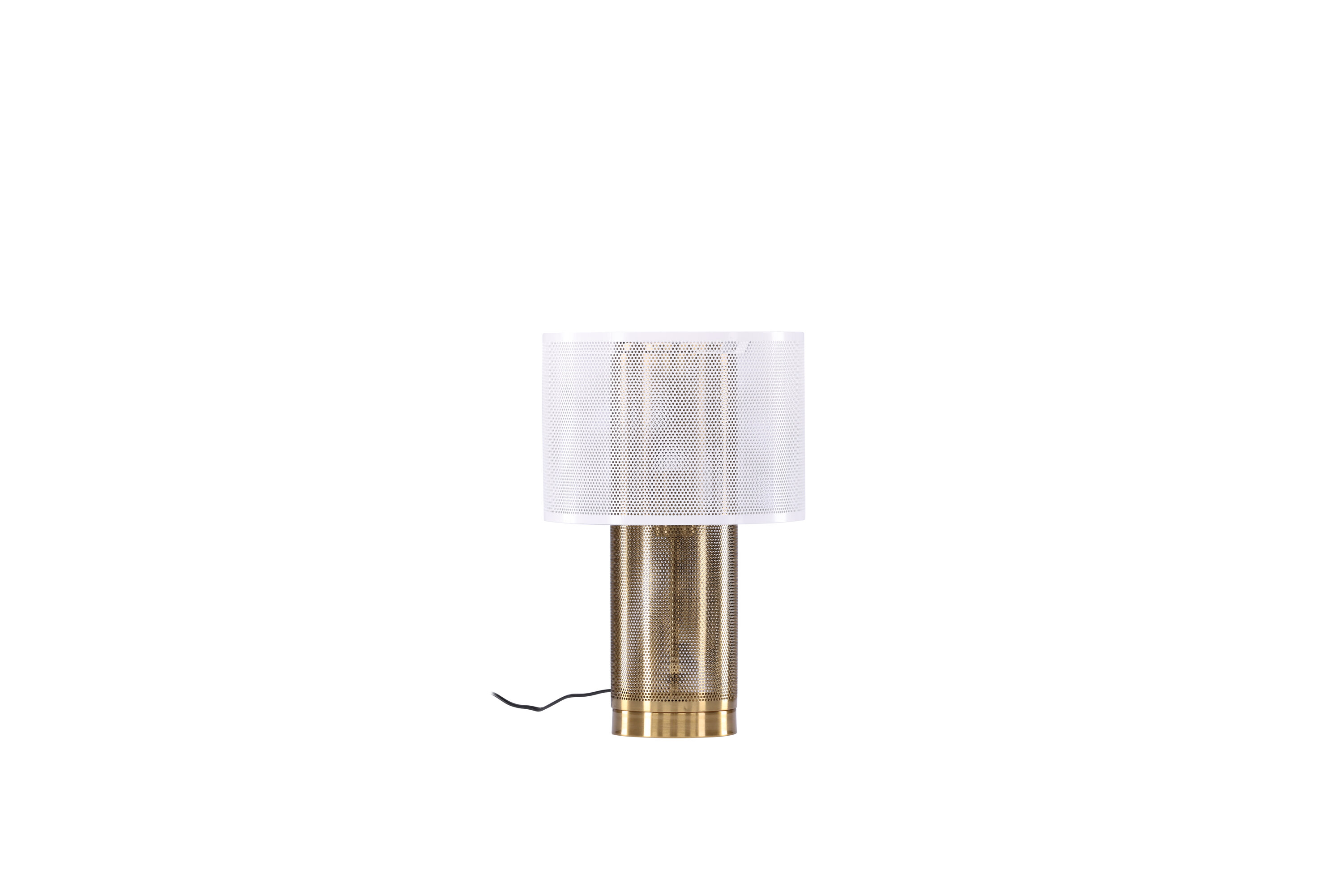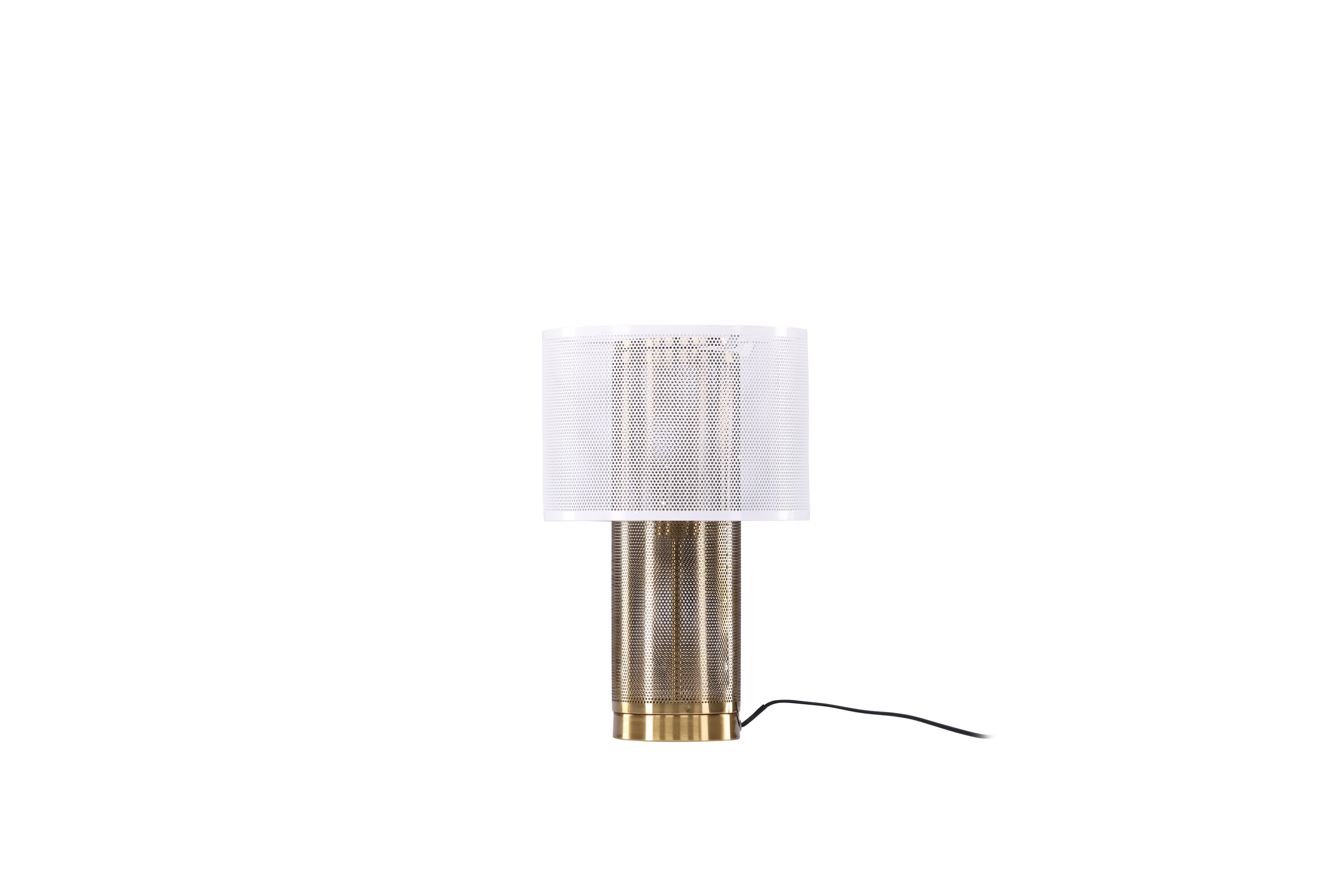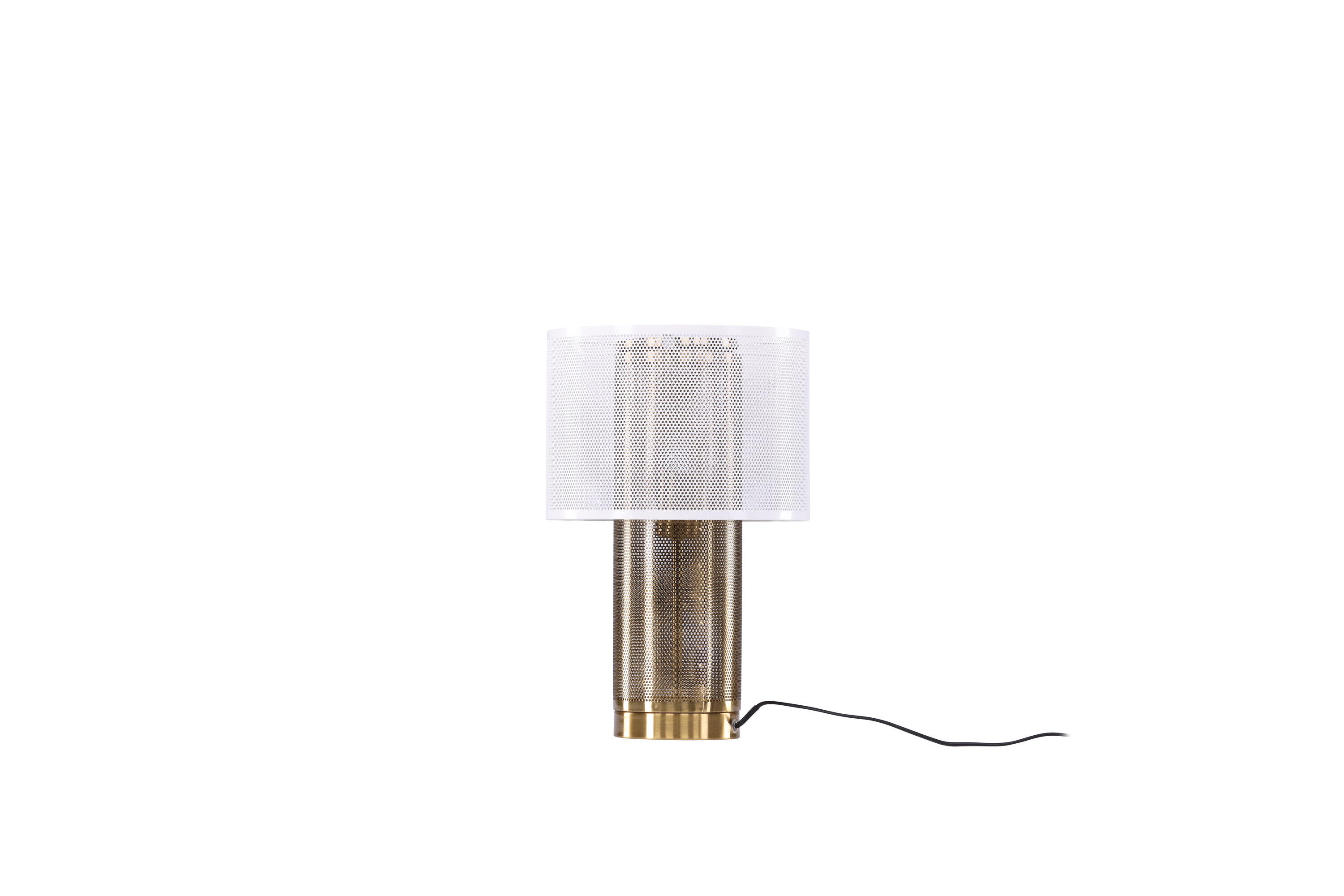 Gap, une lampe de table unique pour la maison moderne ! La lampe impressionne par son pied doré et son abat-jour blanc conçu dans un motif en maille fine qui fait de la lampe un joli détail intérieur. Placez la lampe sur le bureau avec d'autres décorations ou seule comme icône de style dans un coin sombre pour élever le niveau intérieur. Cette lampe devient à la fois une lampe pratique avec une lumière agréable et une partie importante de l'intérieur.