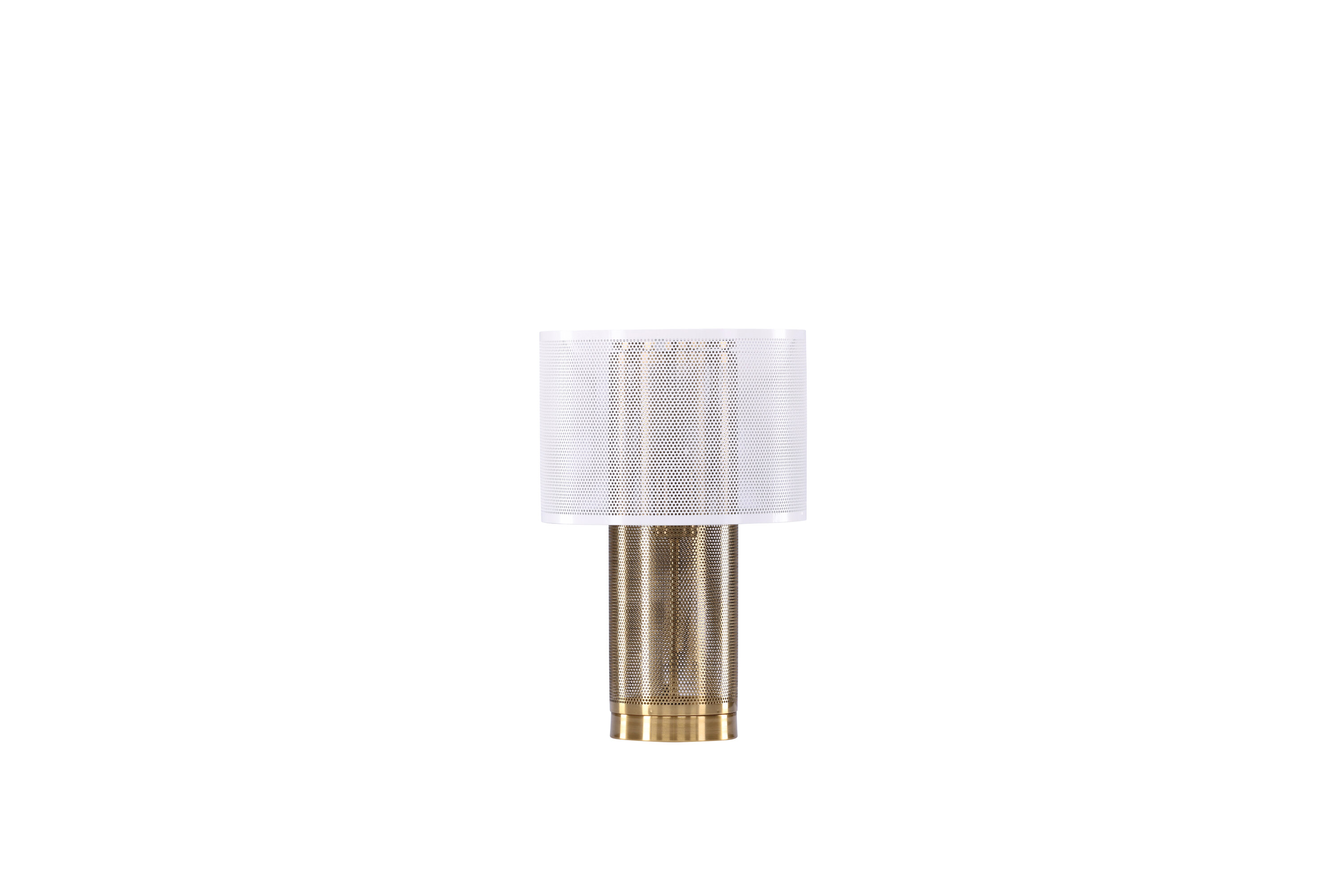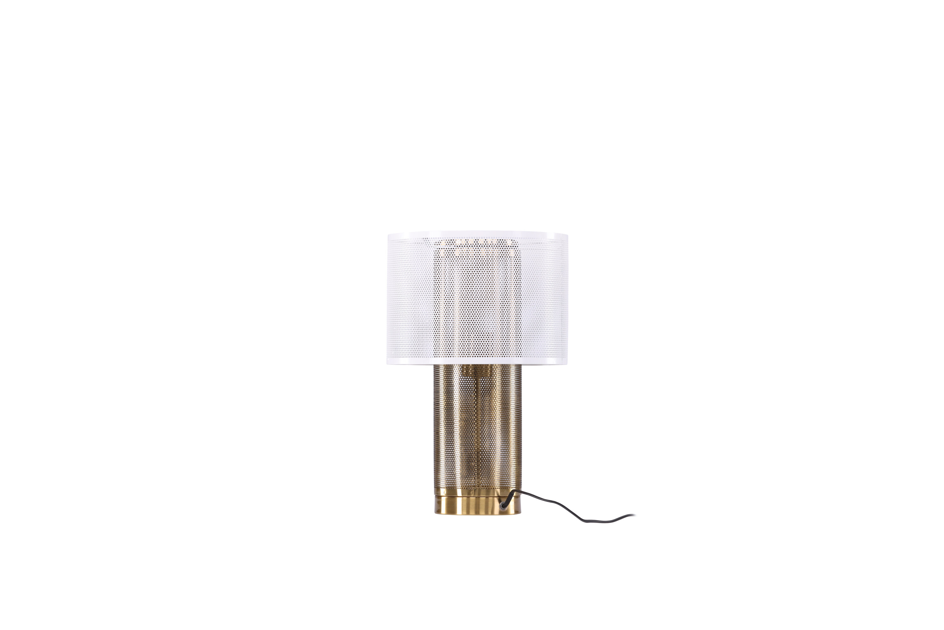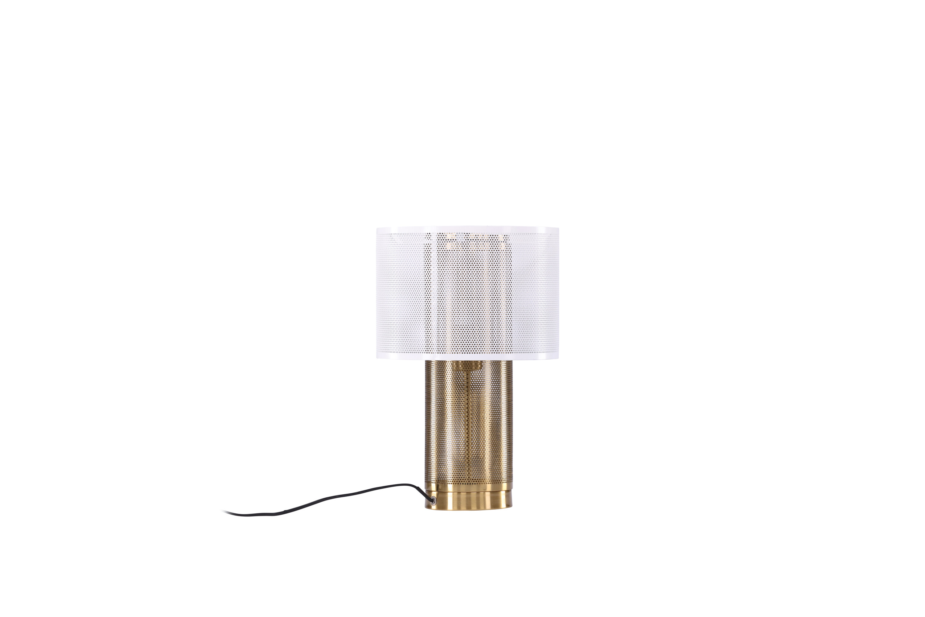 Gap, une lampe de table unique pour la maison moderne ! La lampe impressionne par son pied doré et son abat-jour blanc conçu dans un motif en maille fine qui fait de la lampe un joli détail intérieur. Placez la lampe sur le bureau avec d'autres décorations ou seule comme icône de style dans un coin sombre pour élever le niveau intérieur. Cette lampe devient à la fois une lampe pratique avec une lumière agréable et une partie importante de l'intérieur.