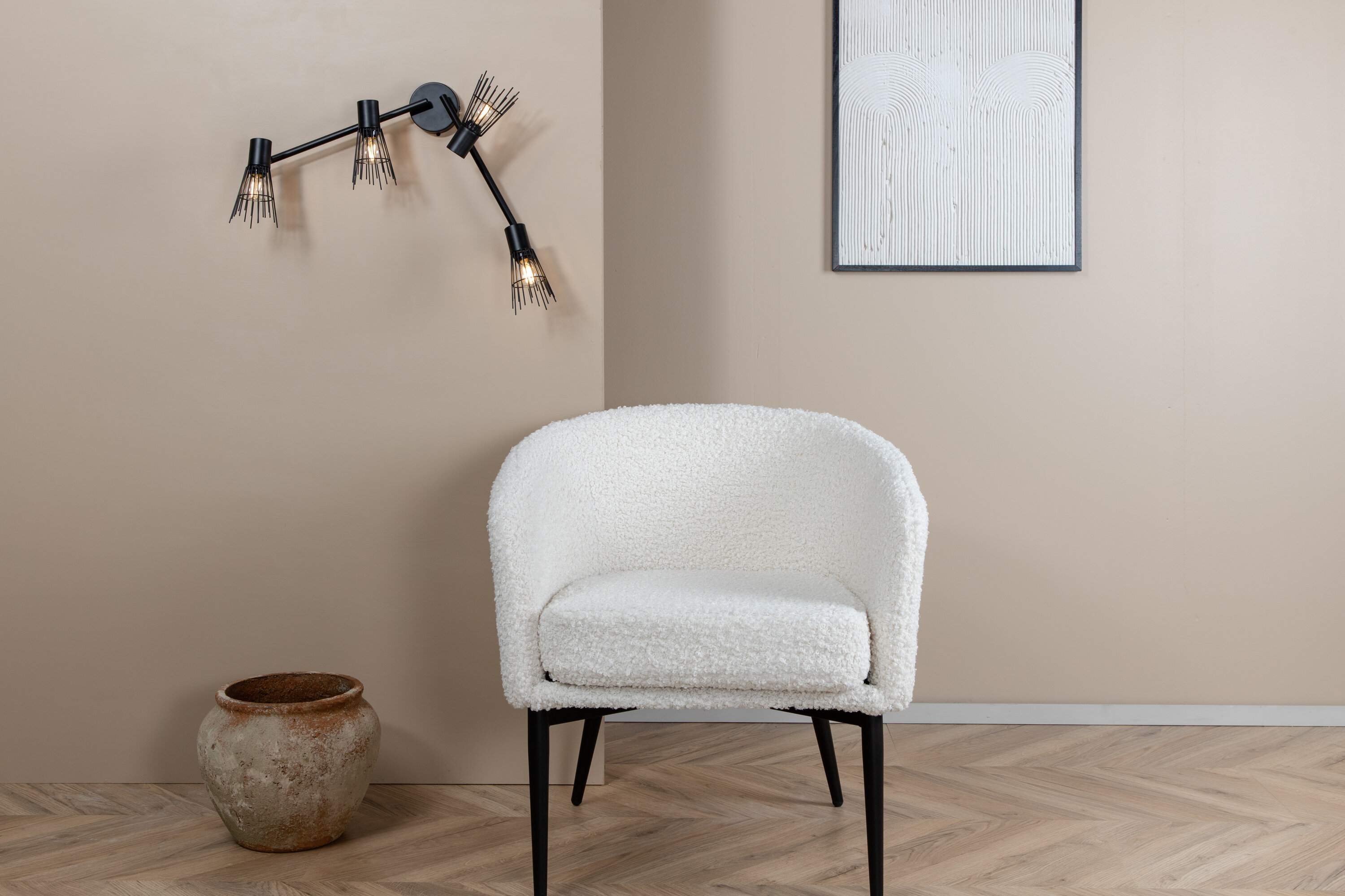 Avec la lampe murale Pico, vous obtenez un éclairage à la fois pratique et élégant ! Le support a un design simple en acier noir et quatre sources lumineuses. Les abat-jour ont un design décoratif qui rend la lampe unique. Les sources de lumière et les bras peuvent être ajustés en fonction du goût et du domaine d'utilisation, ce qui rend la lampe très utile. Placer dans le hall, le salon ou là où un éclairage ponctuel est souhaité. Lors de l'installation : Une installation dite fixe est nécessaire, qui ne peut être effectuée que par un électricien.