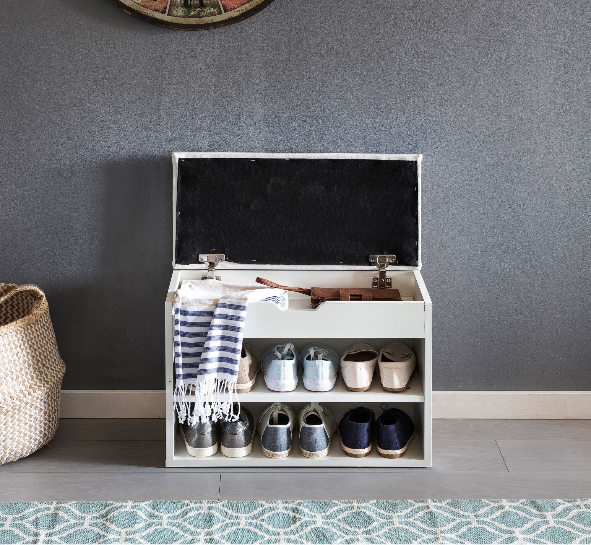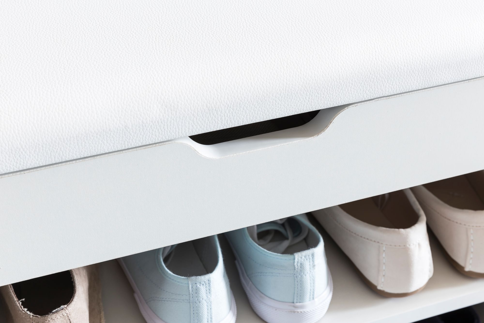Banc à chaussures blanc avec assise similicuir blanc | Bois 60x40x30 cm