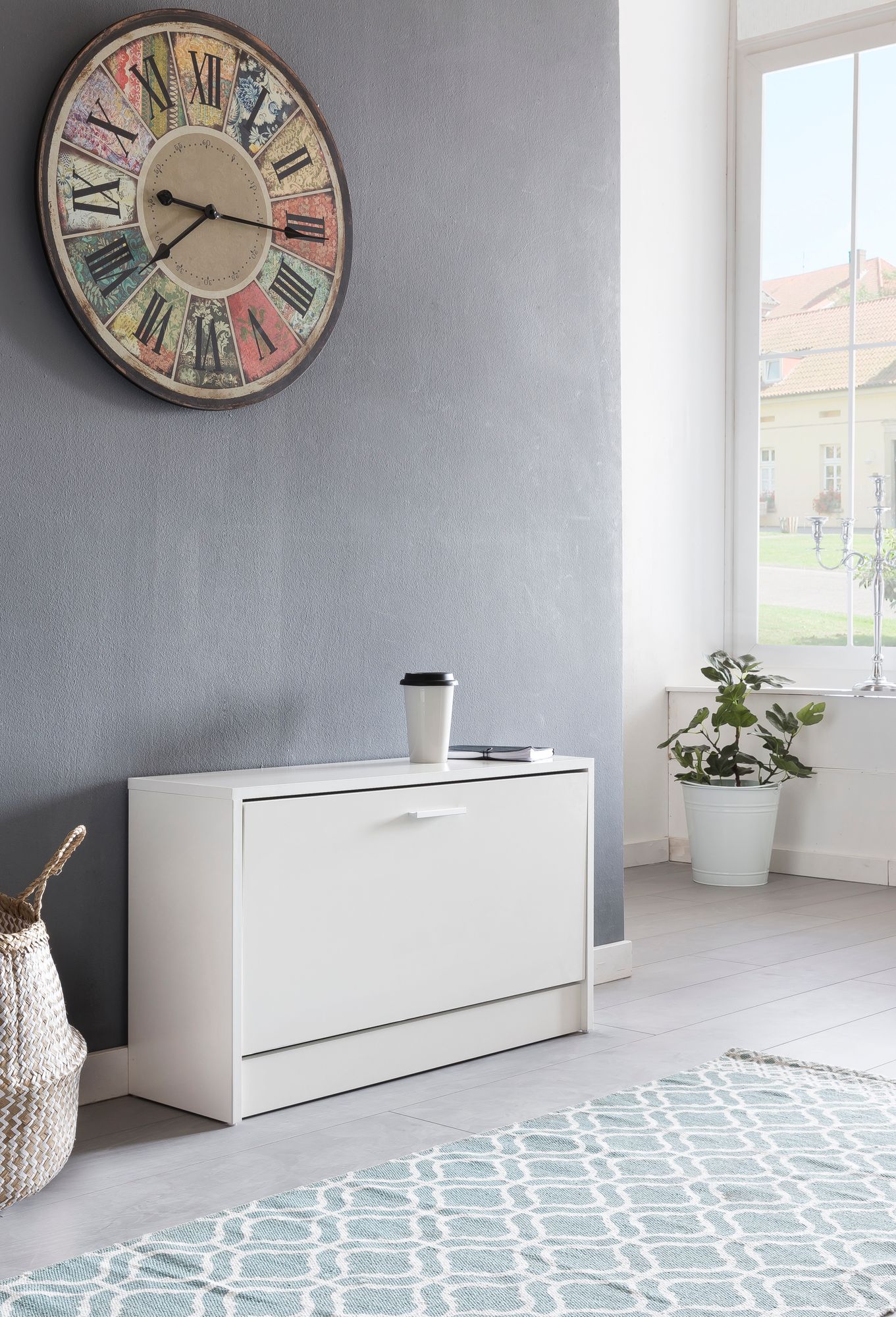 Informations sur le produit "Banc à chaussures bois blanc 80x47x24 cm | 1 compartiment | Design moderne"