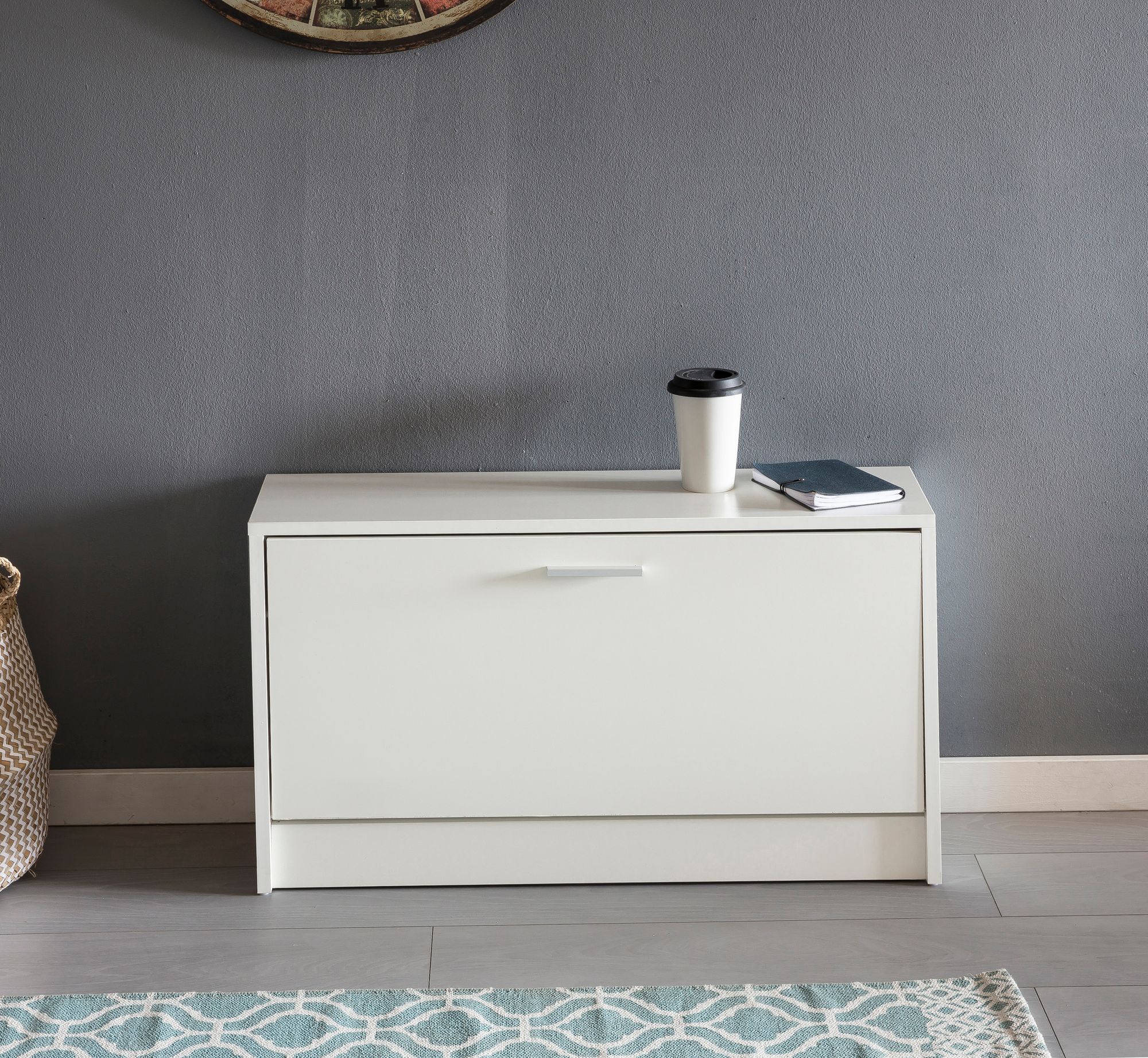 Banc à chaussures bois blanc 80x47x24 cm | 1 compartiment | Design moderne