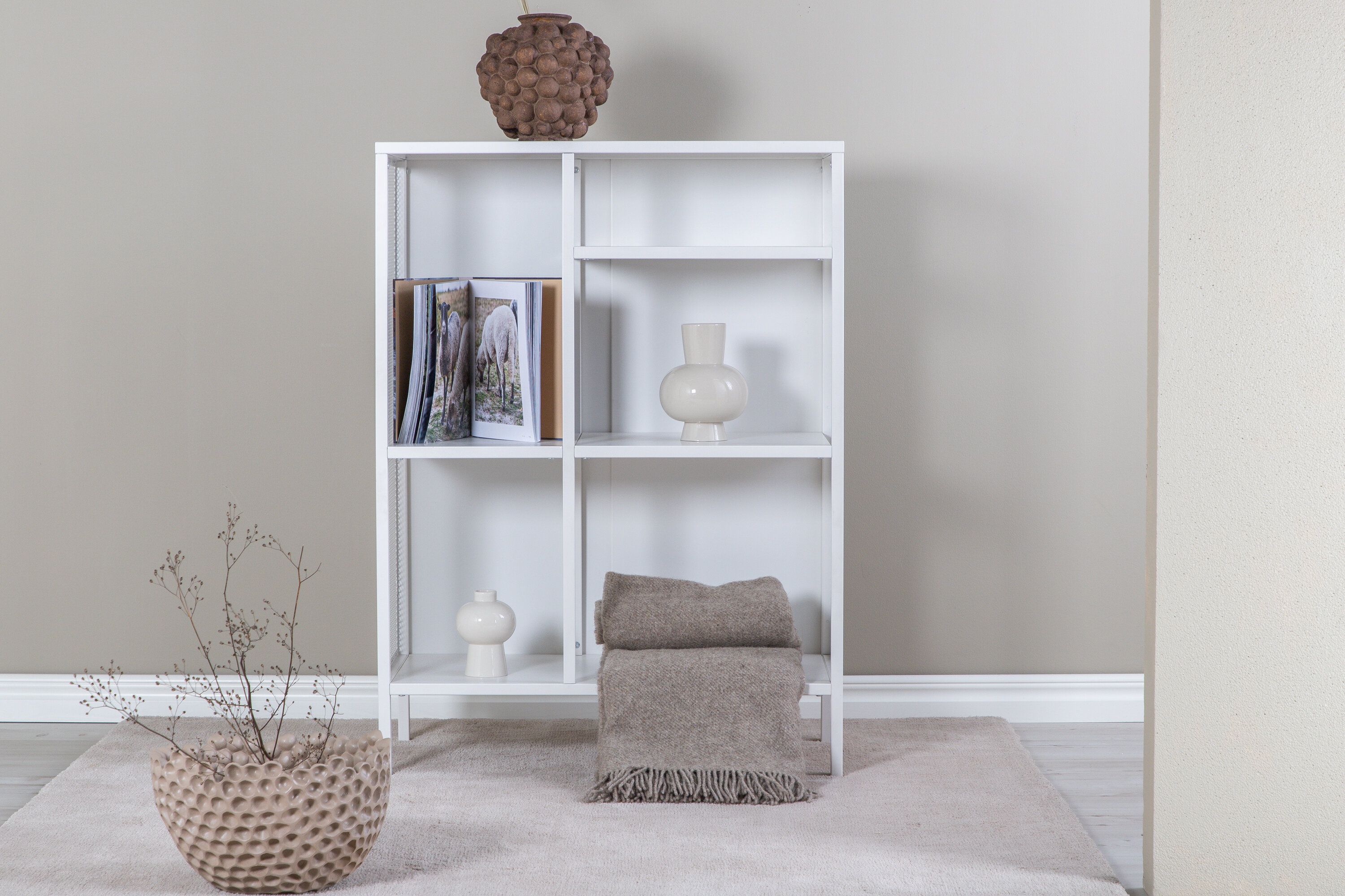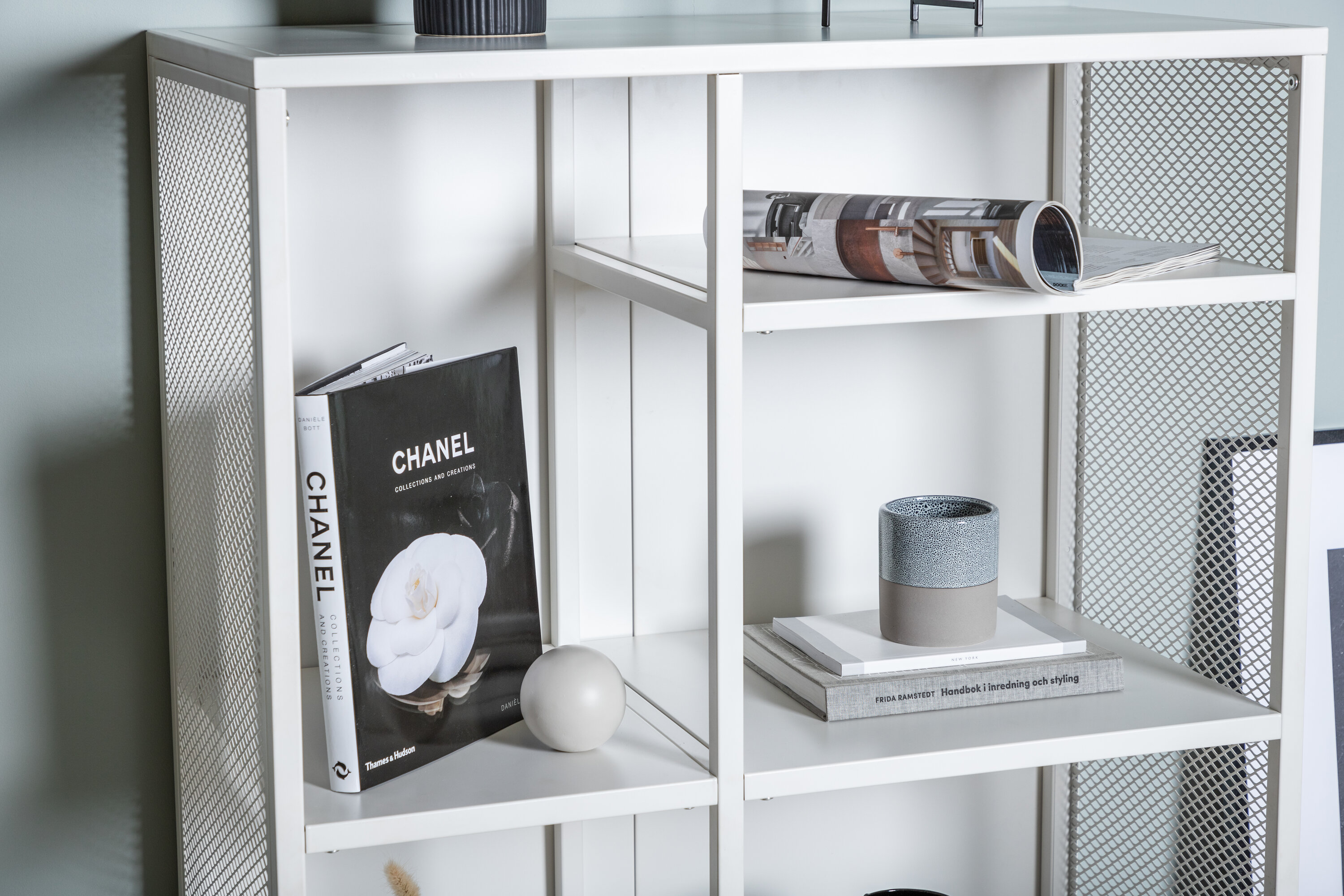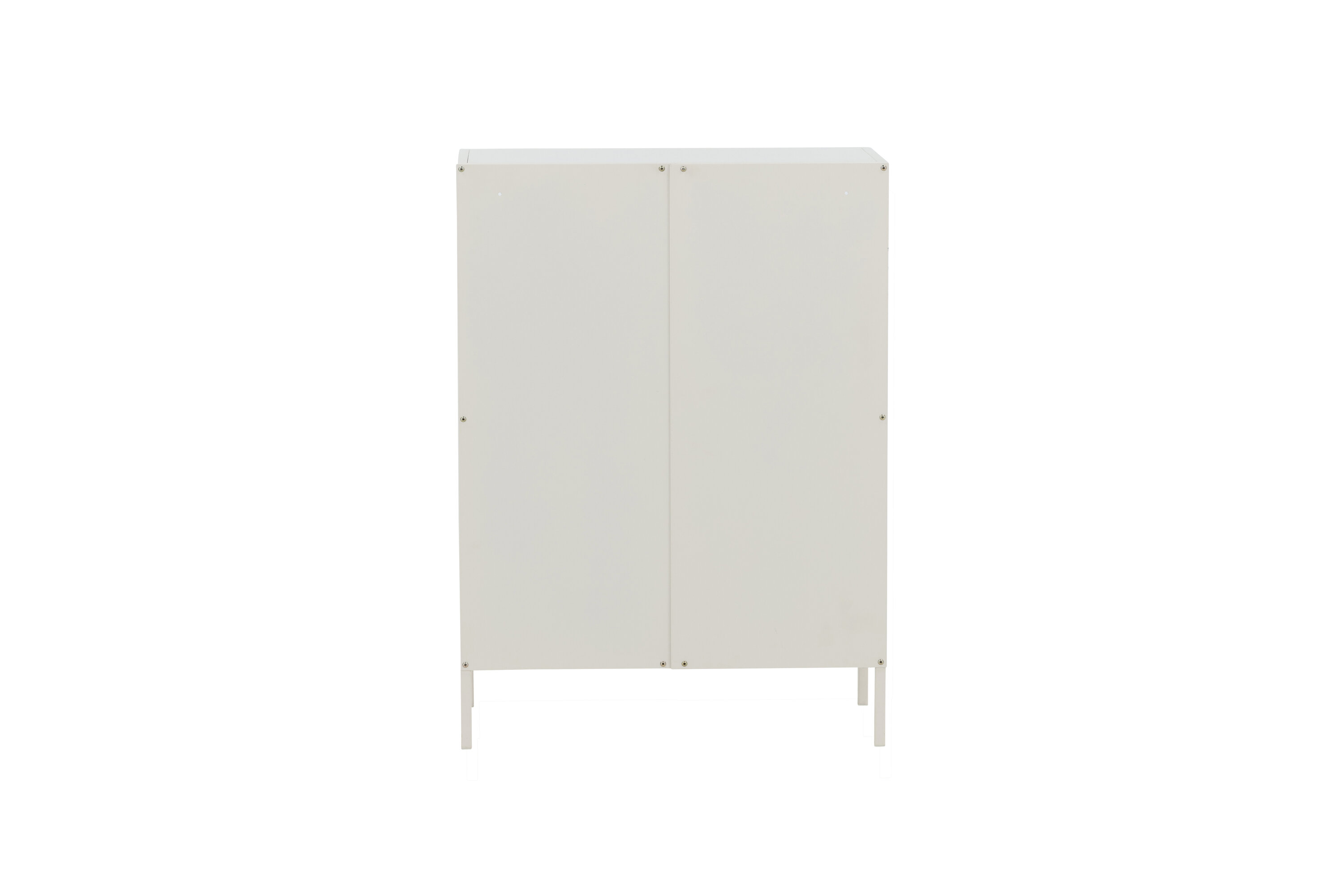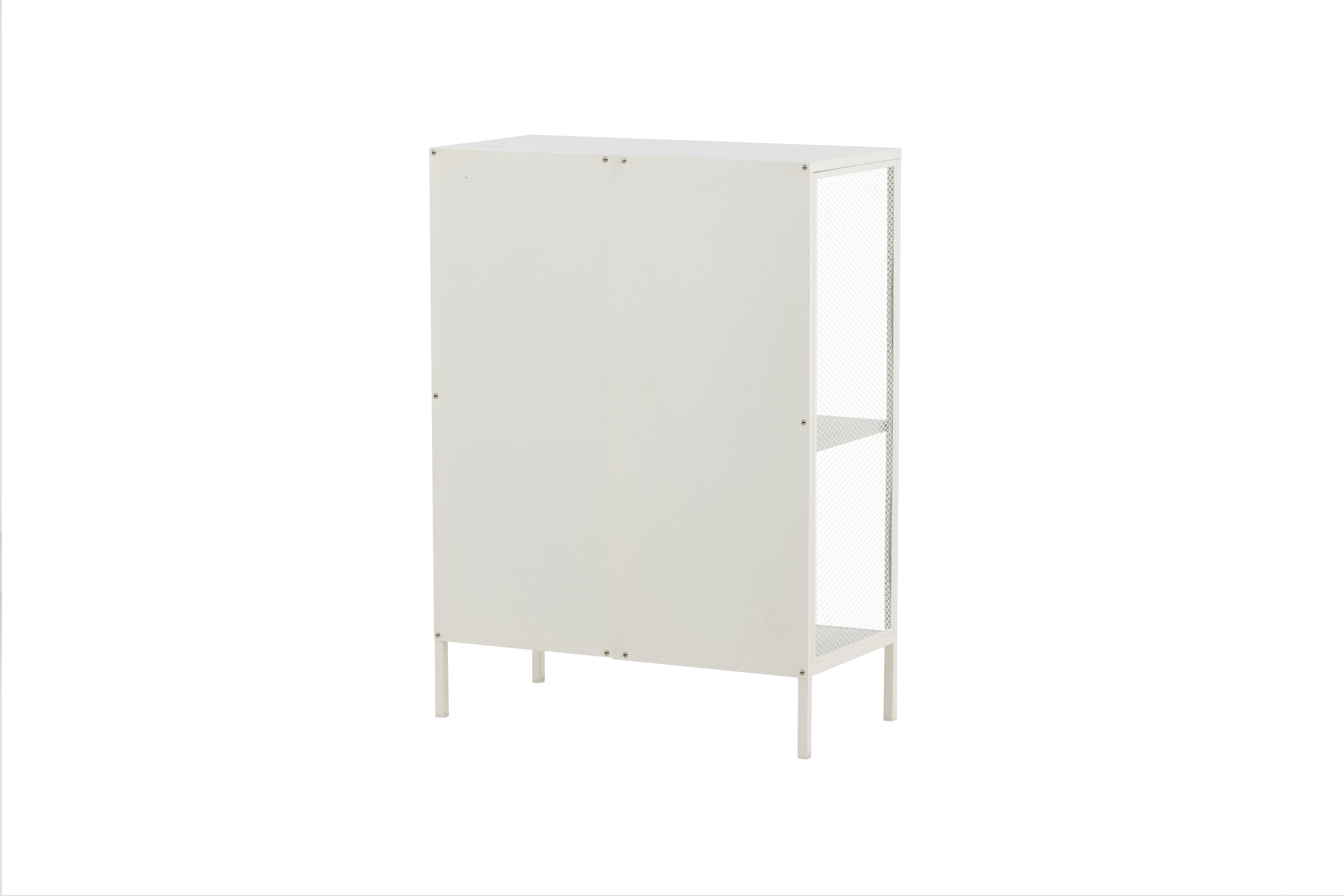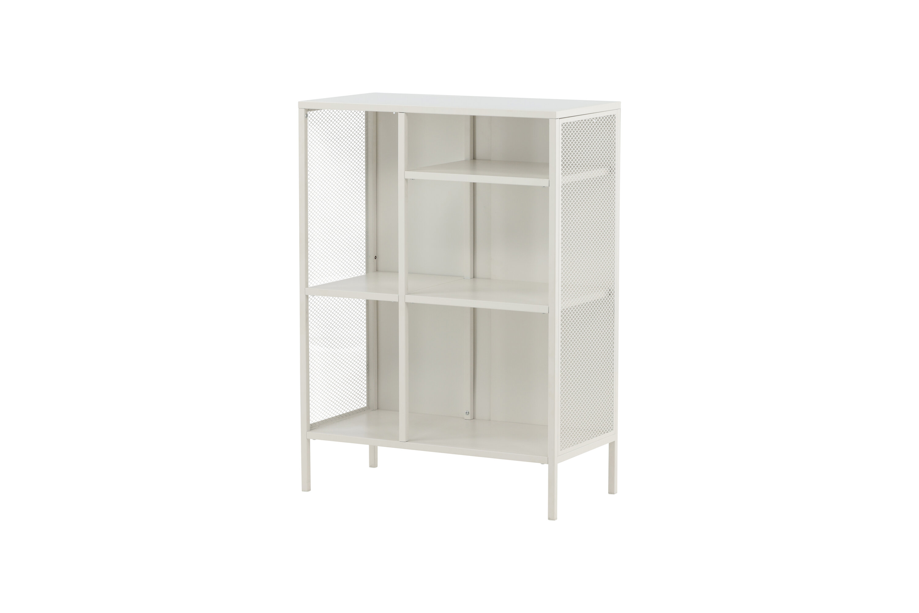 Misha, dans un design industriel robuste en acier blanc revêtu de poudre avec trois surfaces en relief à différentes hauteurs. Filets sur les côtés de l'armoire pour une touche supplémentaire, reposant sur 4 pieds blancs revêtus de poudre en acier. Dimensions : Longueur : 80 cm, largeur : 40 cm, hauteur : 110 cm. Un assemblage plus léger est requis.