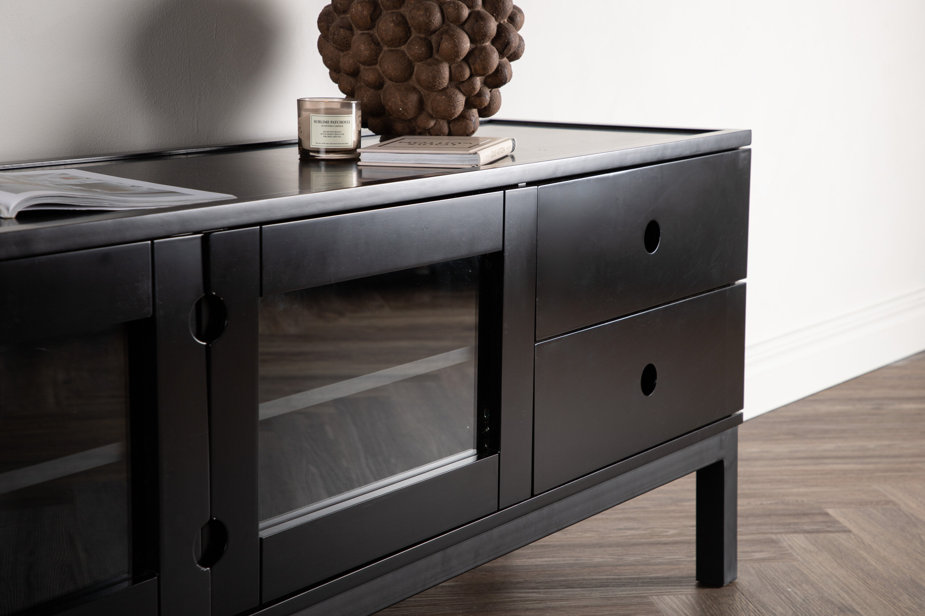 Alcoa est le banc de télévision parfait pour le salon ou le buffet du hall ! Avec son design élégant, sa couleur légèrement assortie et son espace de rangement généreux, ce meuble se tient au fil du temps. Cette agence appartient à la collection Venture Home et est fabriquée en MDF noir avec deux armoires réglables à droite et deux boîtes réglables à gauche. Les armoires ont deux étagères qui permettent un rangement visible. Le buffet est soulevé par quatre pieds qui facilitent l'aspiration en bas. Aménagez votre maison de manière intelligente et tendance, en toute sécurité !
