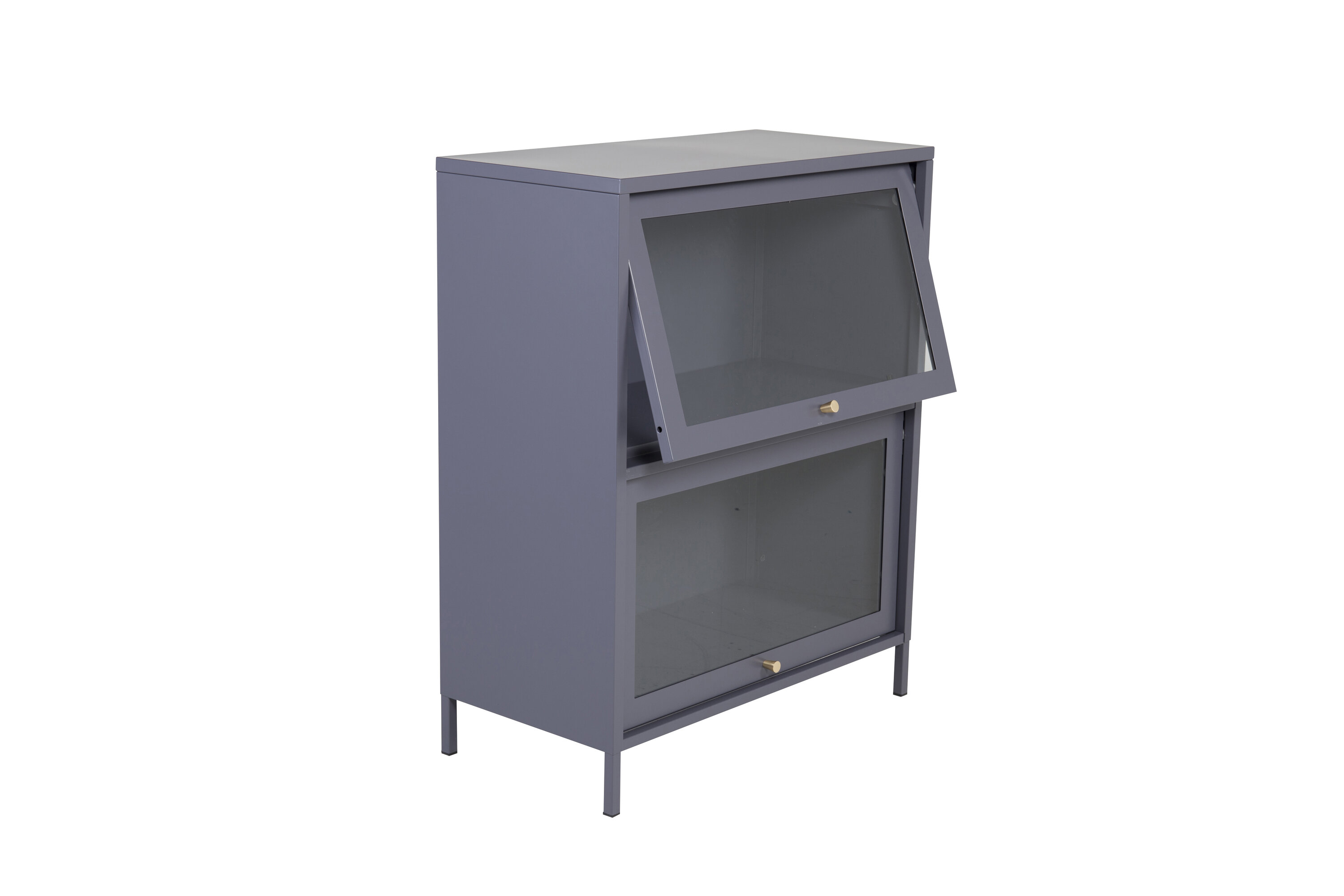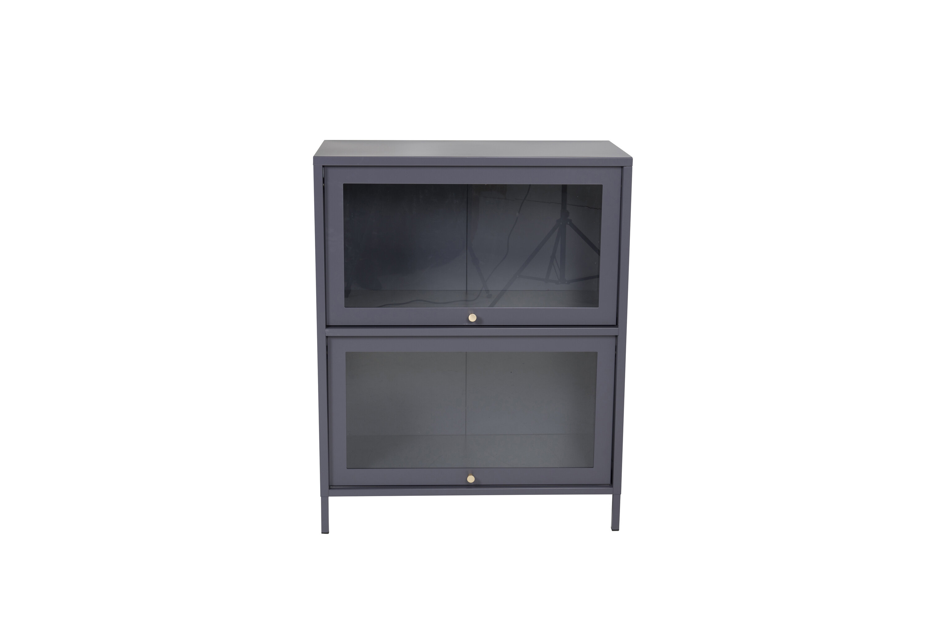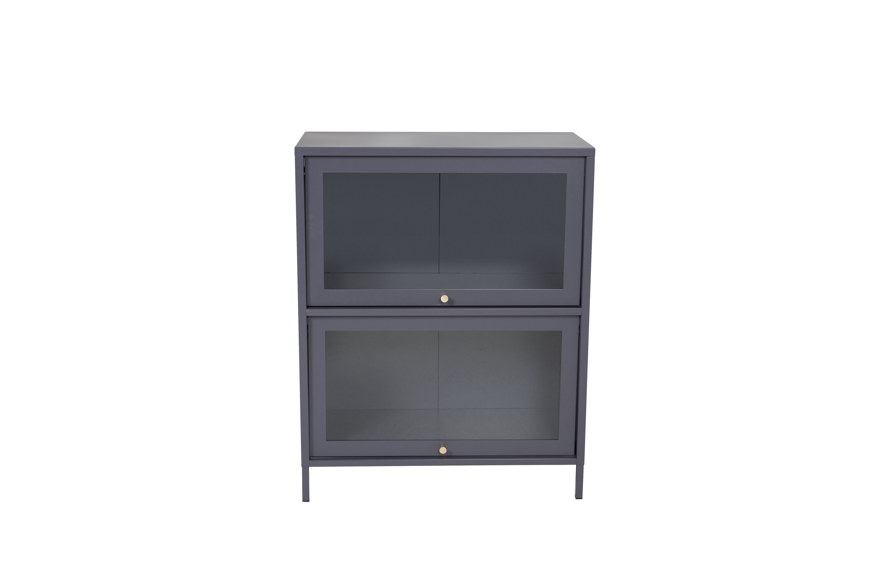 Tôle tendance de la série Bakval. Le design est bien pensé sous une forme industrielle moderne en acier revêtu de poudre grise avec deux portes en verre. Le verre clair laisse entrer une belle lumière dans l'armoire et est encadré par de l'acier enduit de poudre dans des boutons en laiton gris et détaillés. Les portes vitrées s'ouvrent vers le haut. L'armoire repose sur quatre pieds étroits en acier gris enduit de poudre qui donne à l'armoire un aspect aéré. Dimensions : Longueur : 80 cm, largeur : 40 cm, hauteur : 100 cm. Un assemblage plus léger est requis. Un meuble de rangement élégant que vous pouvez remplir de tout, de la belle porcelaine aux livres et aux détails intérieurs élégants.