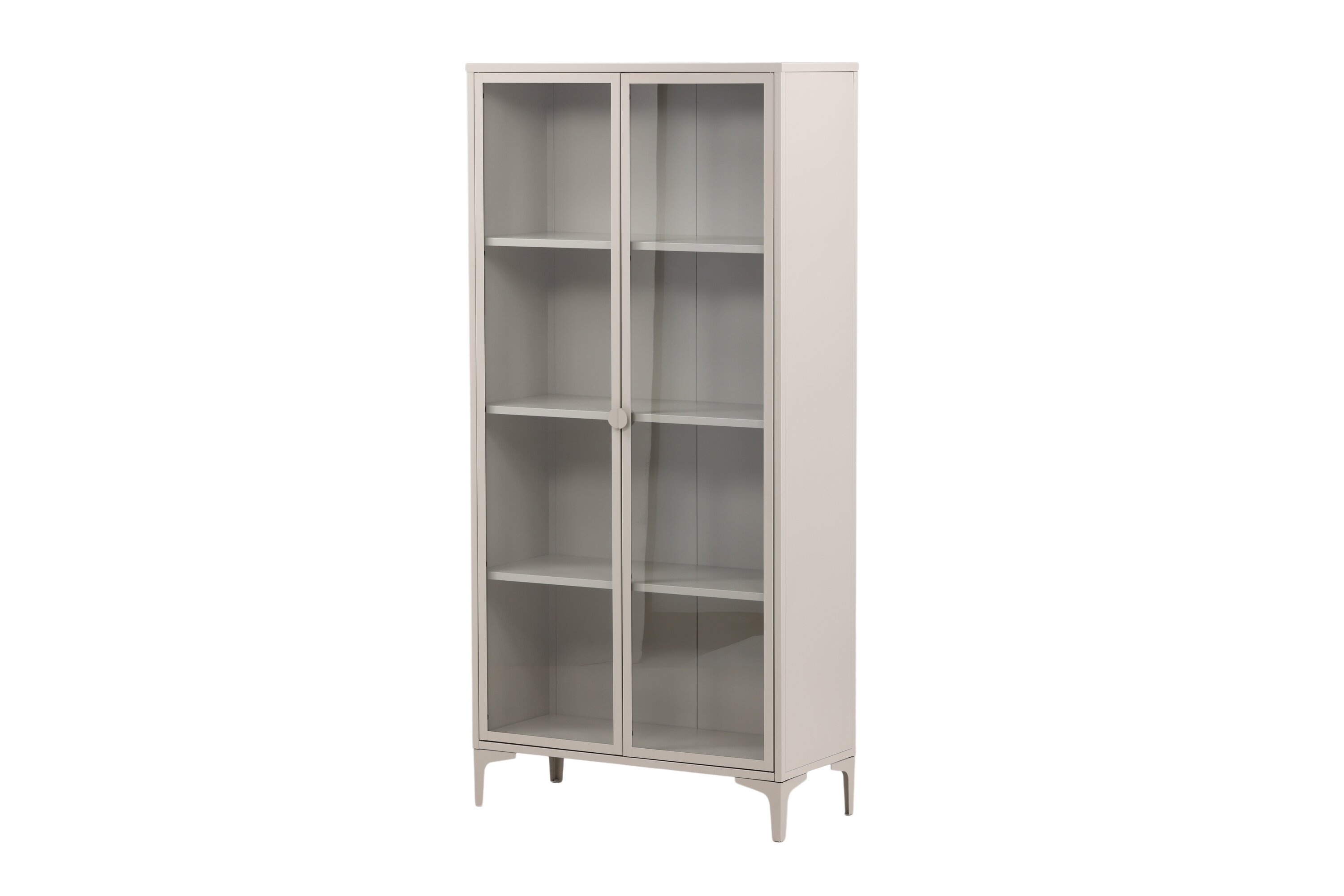 Le présentoir est un ajout populaire à l'intérieur avec des installations de rangement élégantes ! L'armoire de la série Piring a un design moderne avec des structures droites, en acier beige revêtu de poudre. L'armoire a deux grandes portes en verre qui fournissent une belle entrée de lumière dans l'armoire et quatre surfaces en relief pour votre porcelaine fine ou de beaux détails intérieurs. Il s'agit d'une vitrine qui offre le meilleur des deux mondes simplement - choisissez ce que vous voulez montrer et ce qui a besoin d'un stockage intelligent. Assemblage plus facile requis !