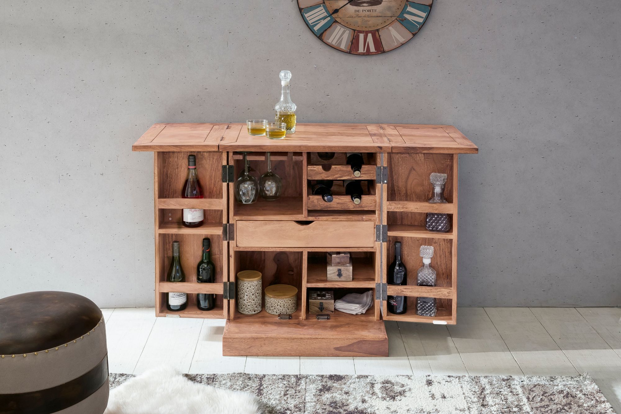 Informations sur le produit "Bar maison Akazie Massif | Naturel brun chaud | 65 x 91 x 50 cm avec portes et tiroir"
