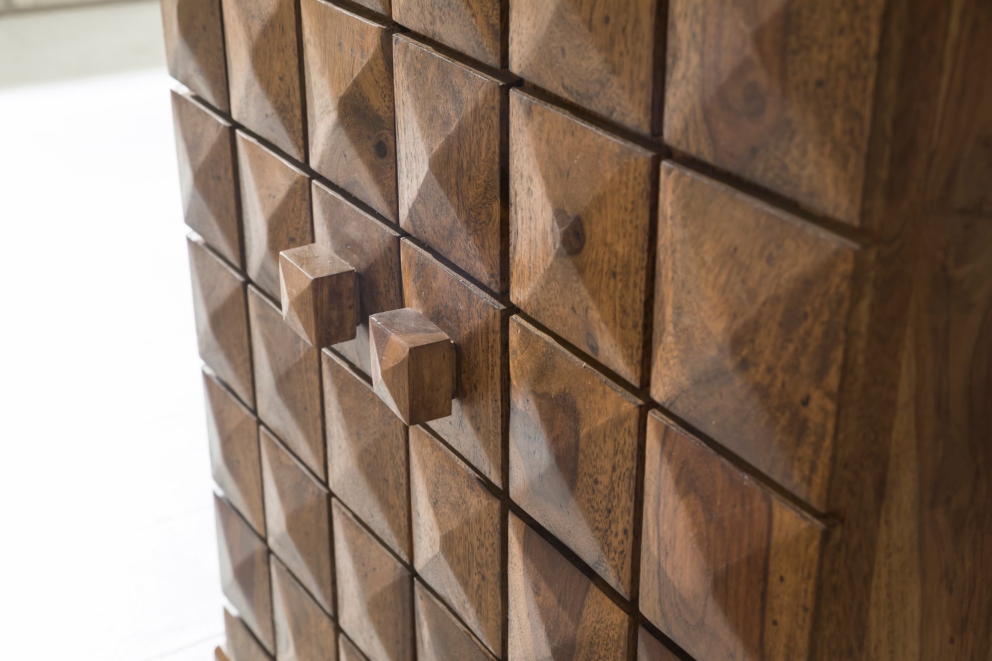 - Couleur : Marron naturel avec motif en damier sur portes