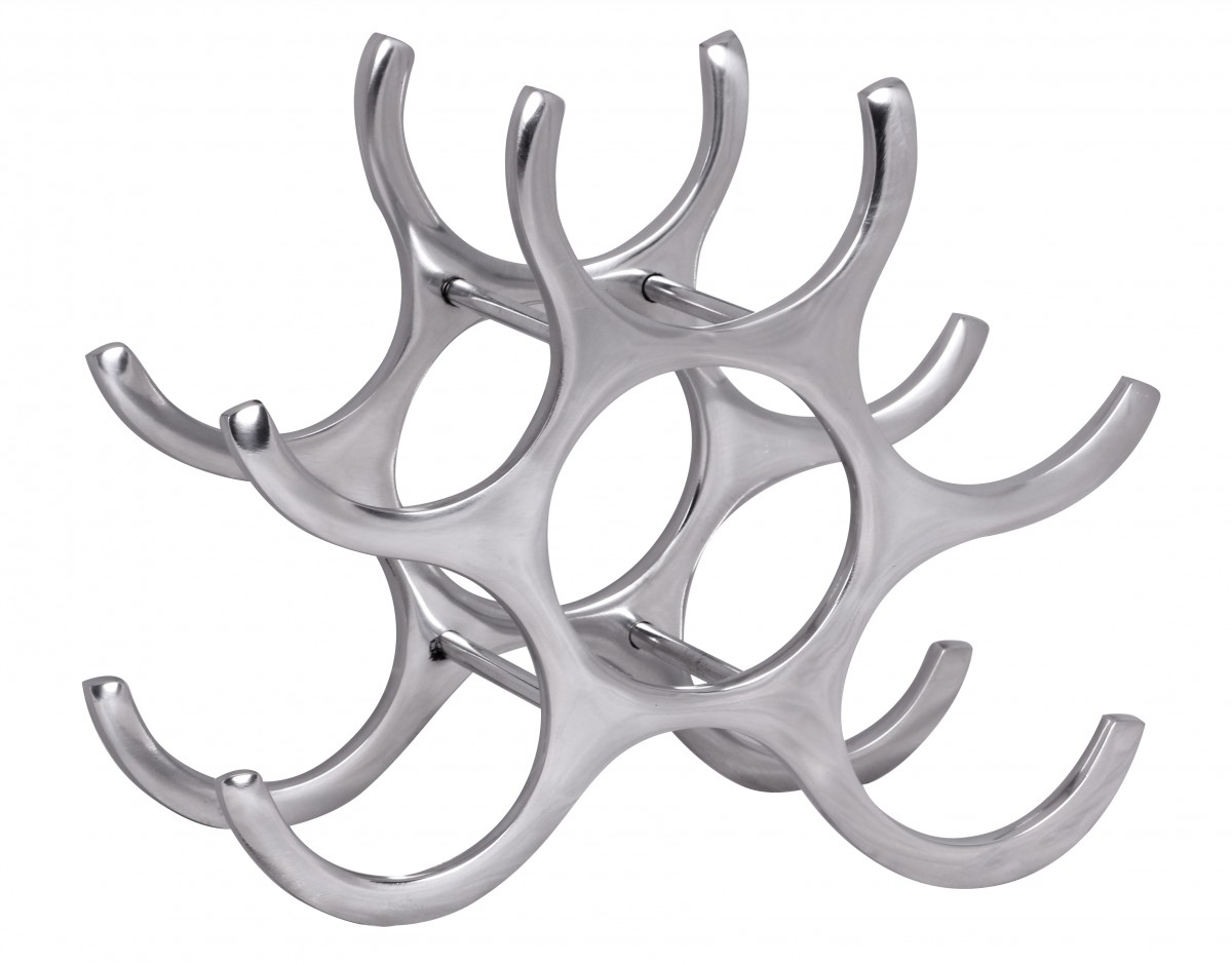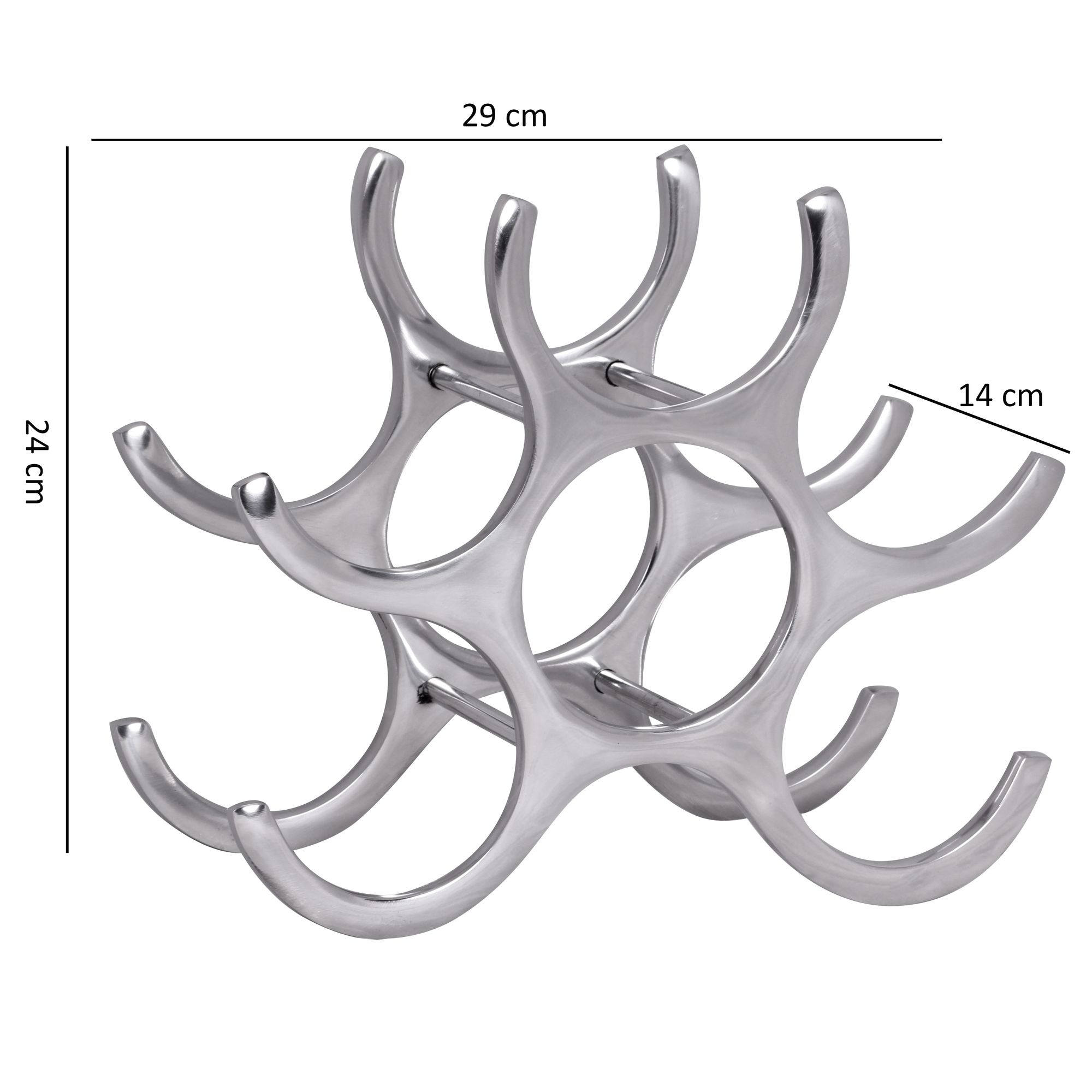 Informations sur le produit "Support à vin design en aluminium argenté 6 bouteilles | Aluminium | 29 x 24 x 14 cm"