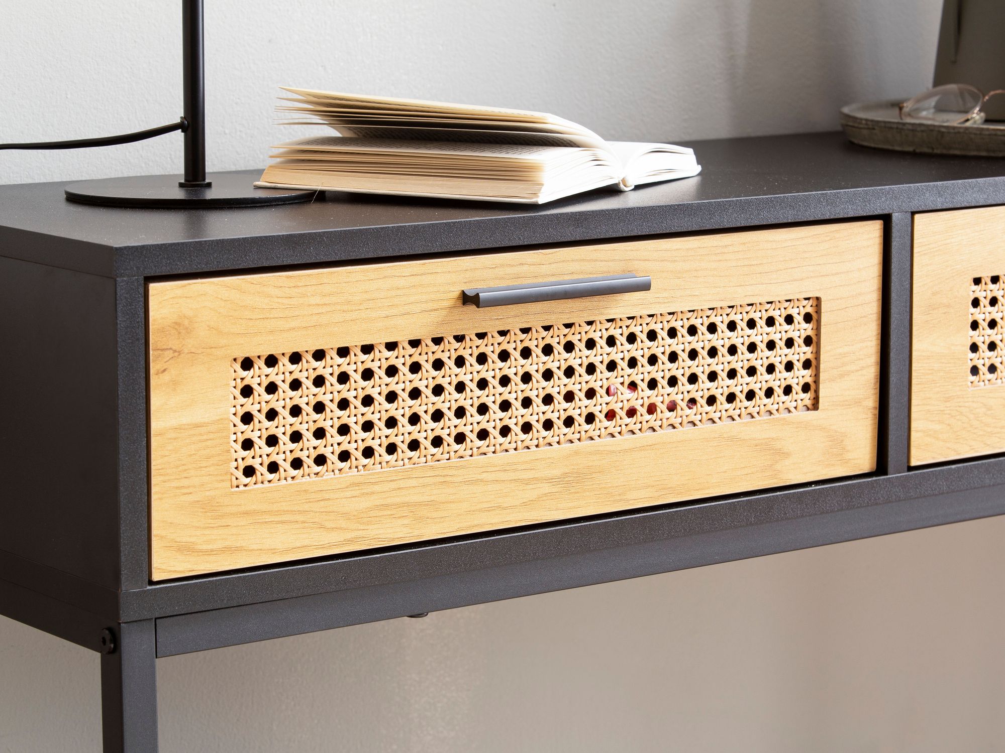 Console noire 100x30x75 cm avec cannage viennois | Table d’entrée design intemporel