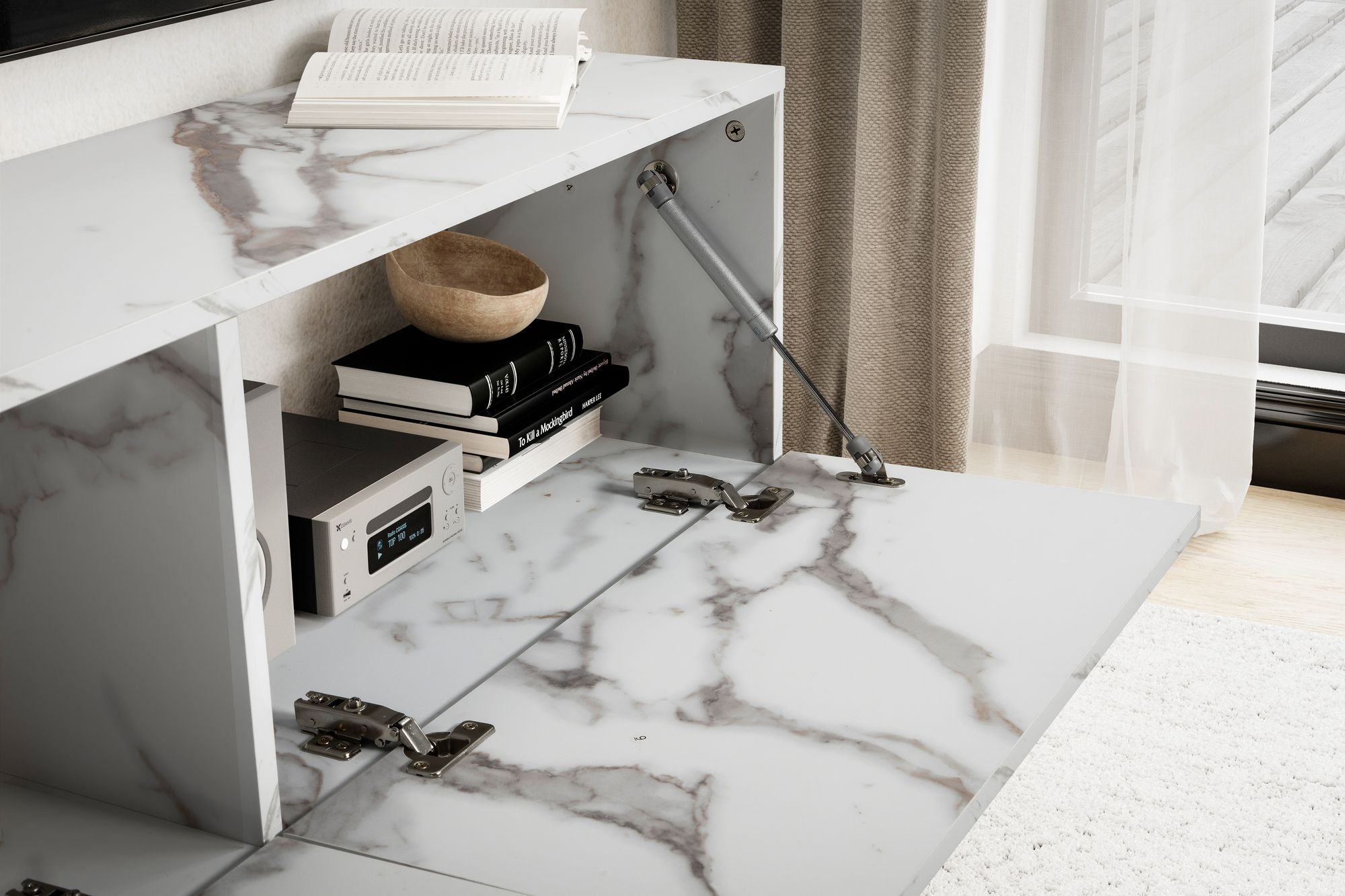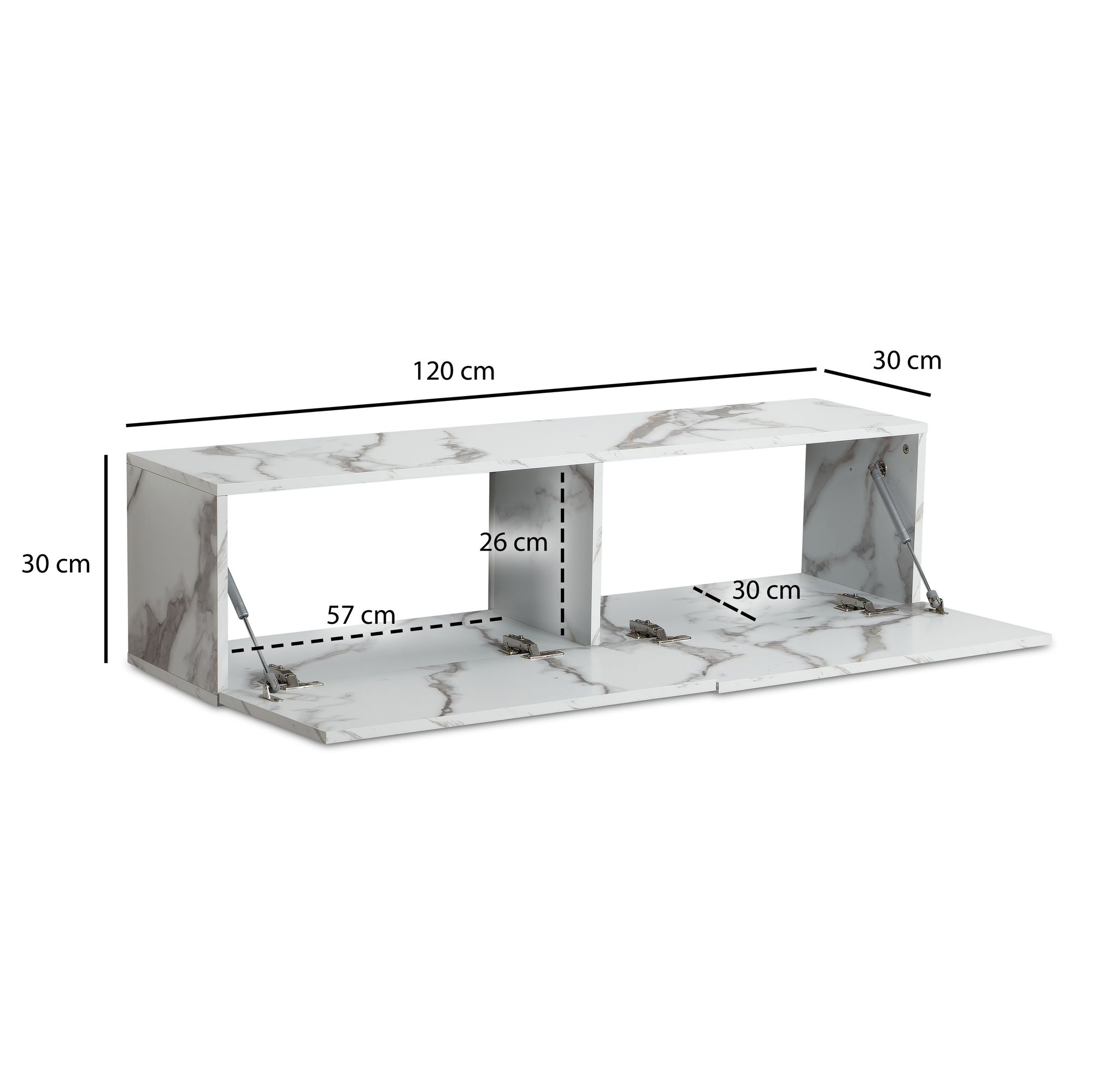 Lowboard suspendu 120x30x30 cm Blanc mat effet marbre | Meuble TV design moderne