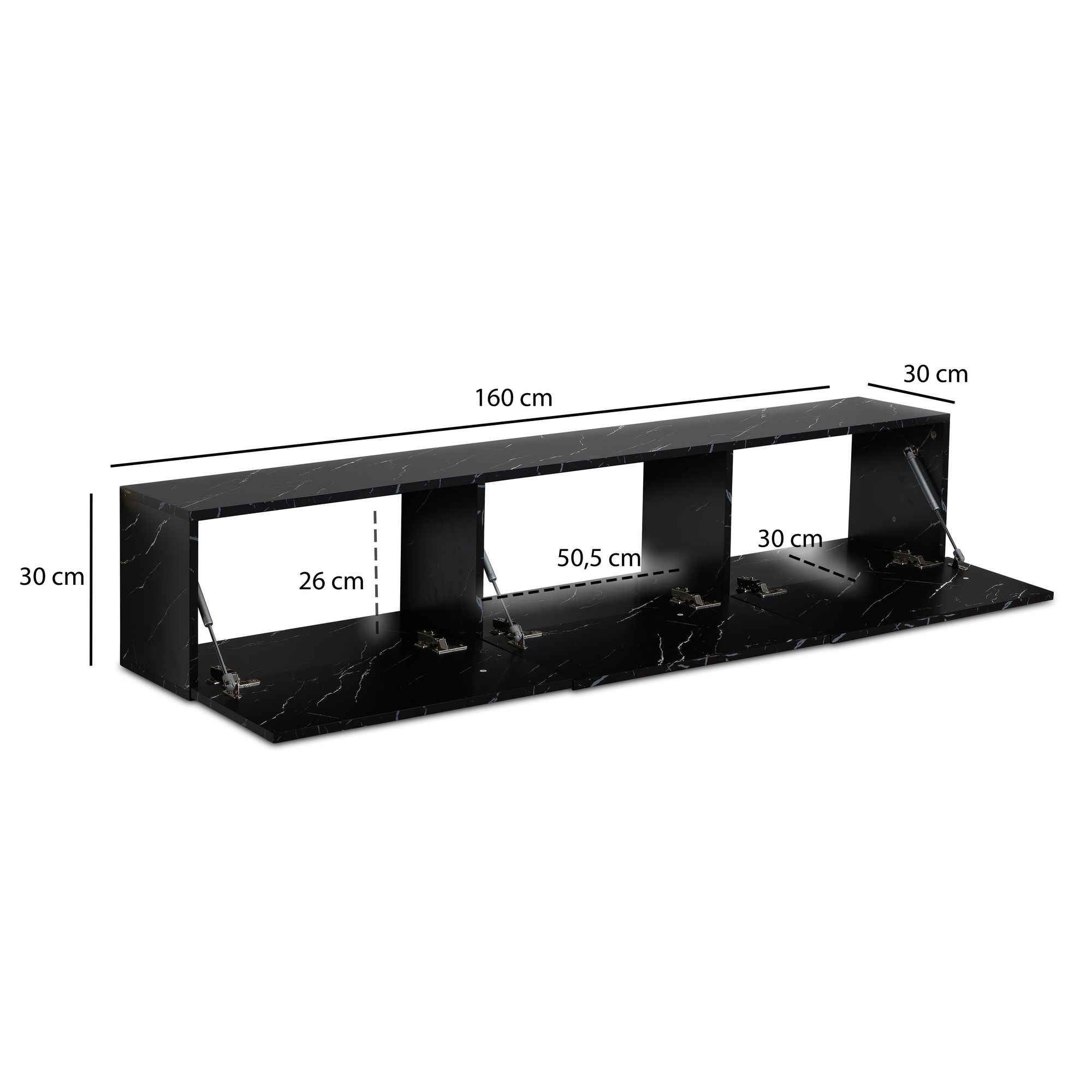 Lowboard Suspendu Aspect Marbre Noir | 160x30x30 cm | MDF avec Revêtement Mélaminé