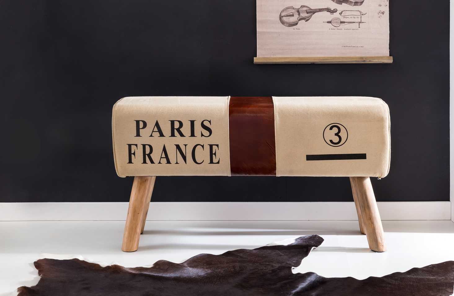 Informations sur le produit "Banc Design Turnbock en Coton 83% & Cuir Véritable 17% Beige & Marron | 91 x 51 x 30 cm"