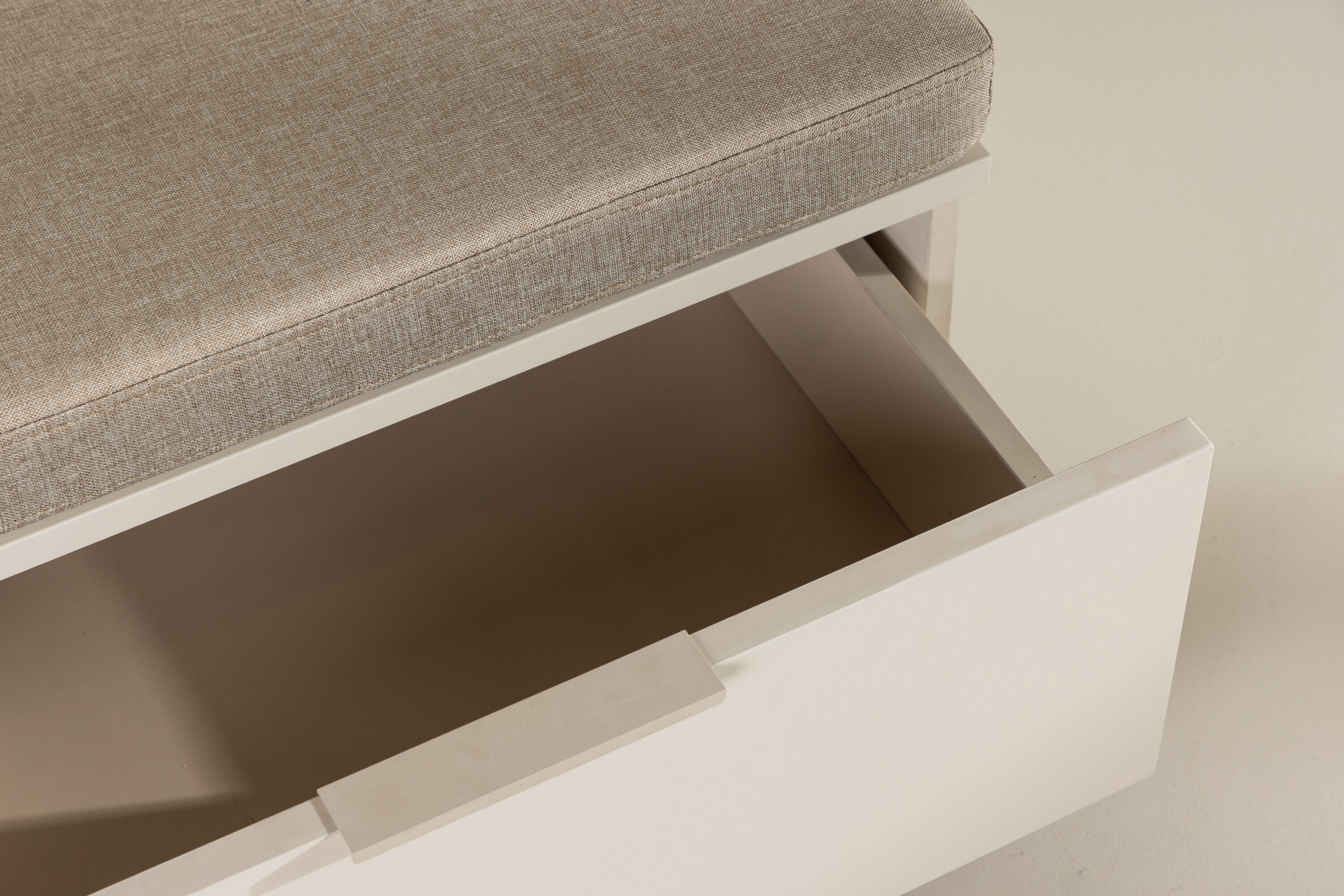 Ici, vous obtenez un couloir qui vous accueille chaleureusement, vous et vos invités. Ajoutez une touche de fonctionnalité et de style à votre intérieur avec le coussin de rangement Nice. Il est disponible en deux tailles différentes en fonction du nombre de boîtes de rangement que vous avez en dessous ! Dimensions : 120x60cm.
