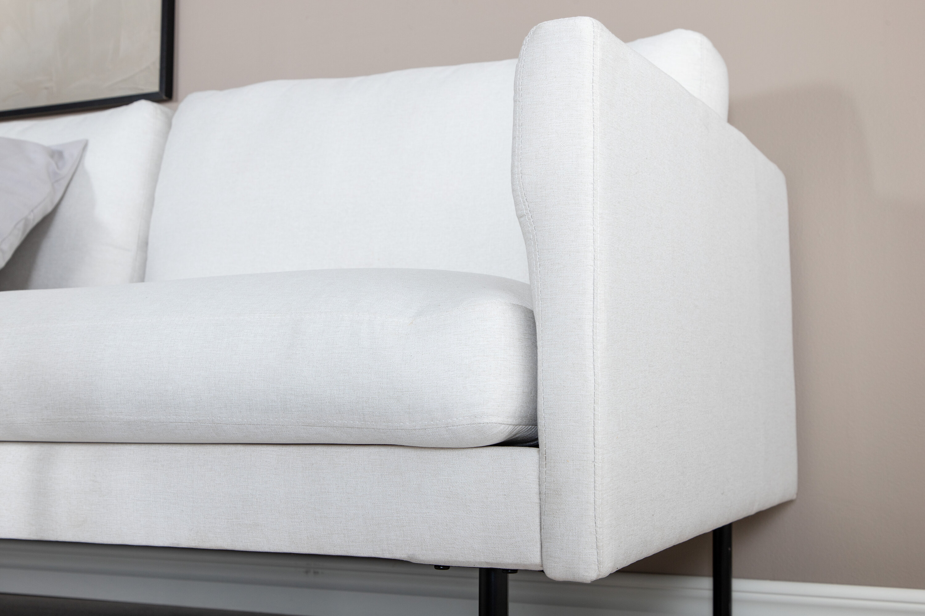 Qu'est-ce qu'un canapé de rêve sinon ce canapé 2 places élégant et moderne en tenue beige clair ? Notre canapé confortable de la série Zoom Inger procure à votre maison une sensation incroyablement sensible à la mode et invitante qui prolonge les moments du canapé. Le design est intemporel avec des formes nordiques droites, des accoudoirs hauts et des pieds en métal étroits de couleur noire qui brisent la tapisserie du canapé. Accordez-vous du temps pour vous détendre et laissez le canapé être au centre de la maison ! Dimensions du canapé : Largeur : 181 cm, profondeur : 54 cm, hauteur : 80 cm.