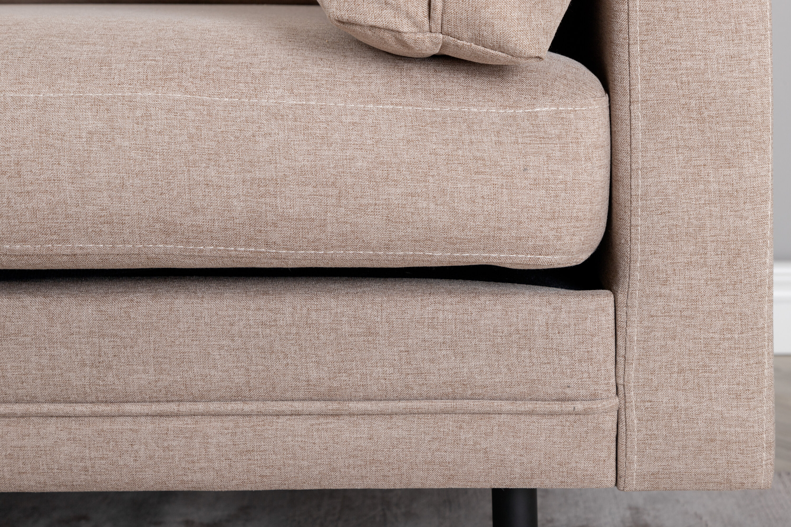 Décorez votre maison avec un élégant canapé 2 places de couleur beige et laissez le temps passer ici devenir l'un des points forts d'aujourd' hui ! Le canapé Boom élève votre intérieur au niveau supérieur avec son design droit à la mode, son langage de conception élégant et son bon confort d'assise. Les jambes hautes en métal noir contribuent à l'impression de style et la profondeur du canapé vous invite à de longs et confortables moments de canapé. Dimensions du canapé : Largeur : 201 cm, profondeur : 53 cm, hauteur : 90 cm.