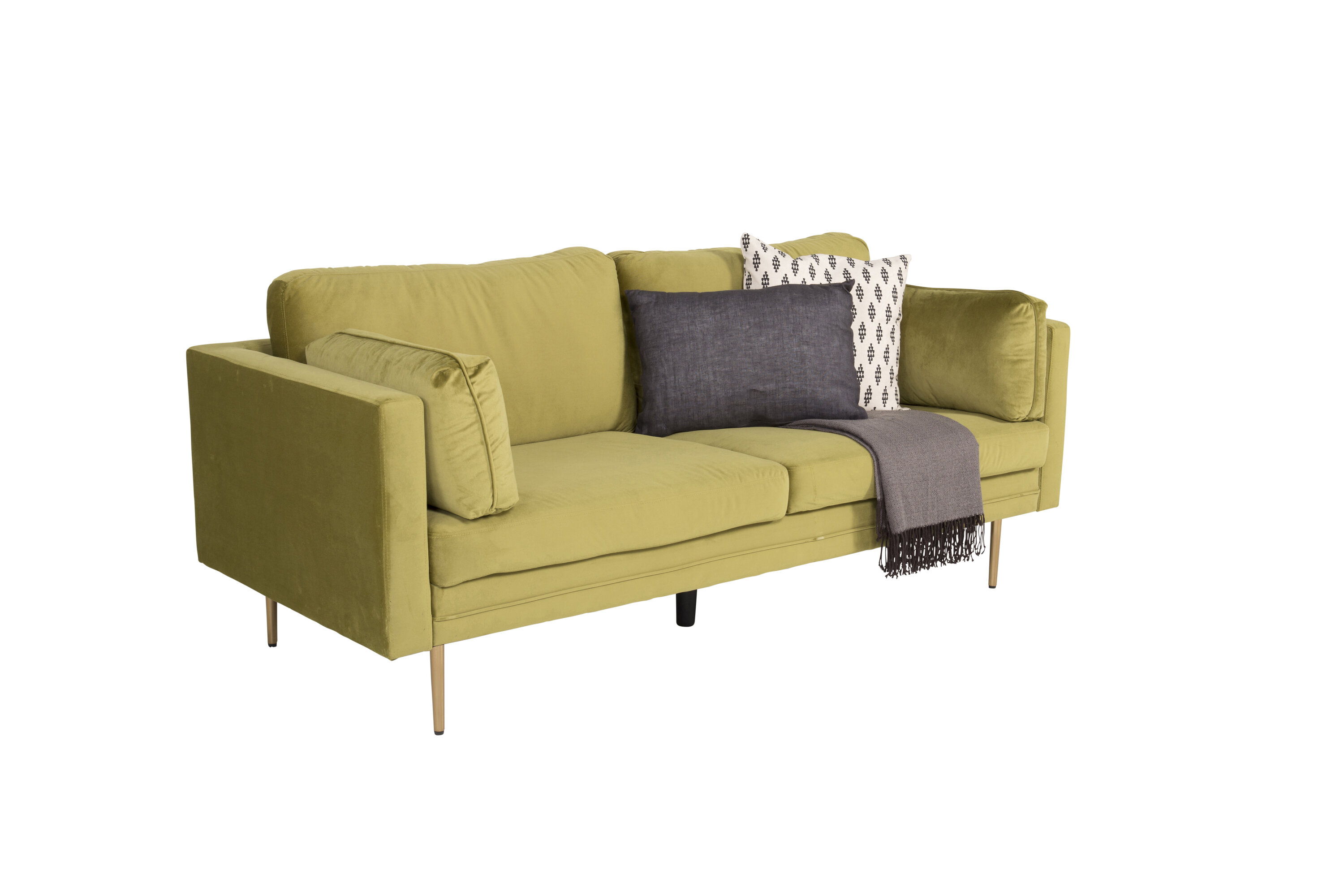Décorez votre maison avec un agréable clic de couleur ! Un élégant canapé de 2 à 3 places de la série Boom offre à la fois un design élégant, un confort d'assise élevé et se décline en plusieurs couleurs. Ce canapé confortable est une icône de style avec sa forme nordique droite et ses accoudoirs hauts modernes. Les délicieux vêtements en velours vert et les os en forme de cylindre en métal créent une expression intemporelle qui ne manquera pas d'embellir votre maison.