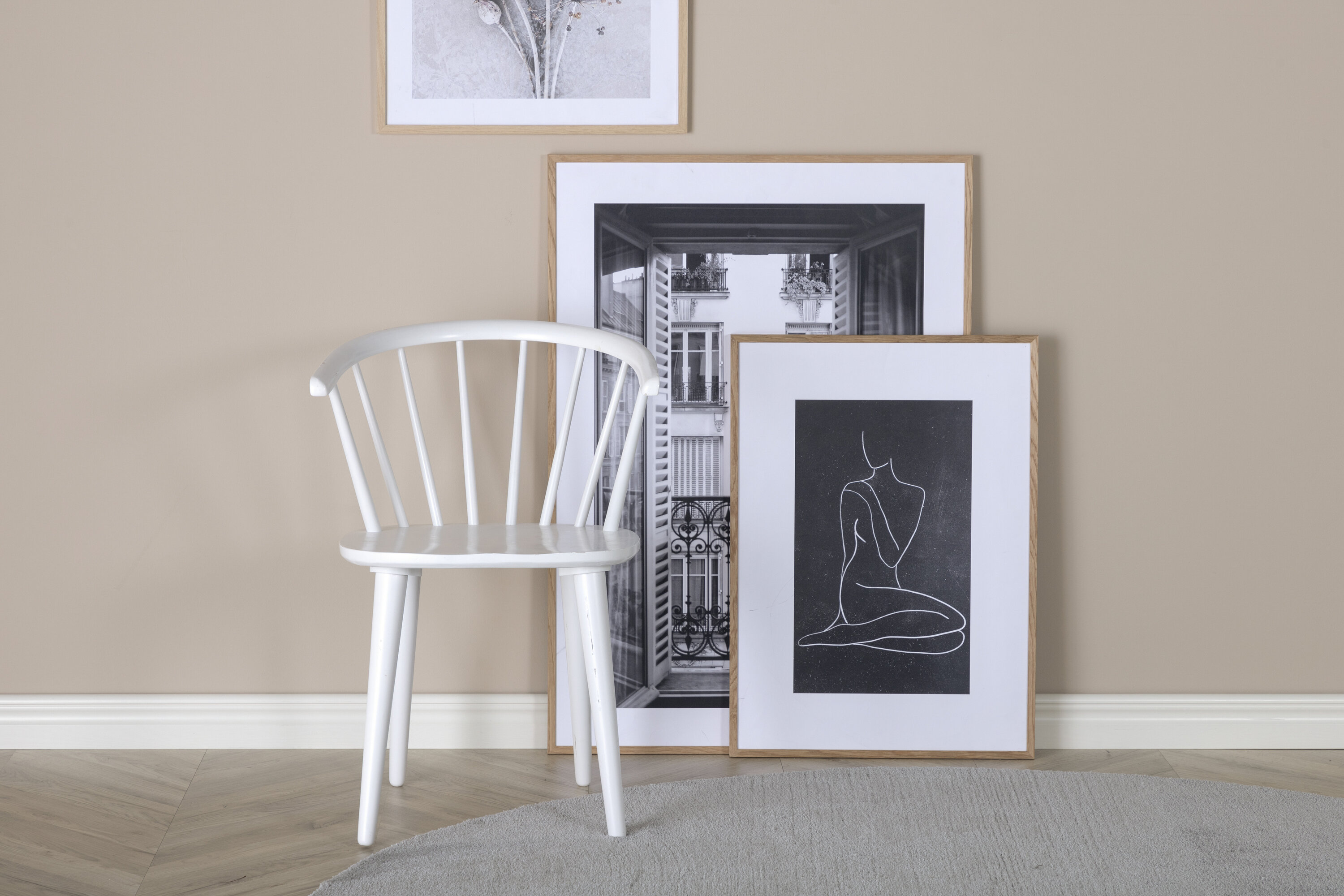 Chaise Pin/chaise de salle à manger dans un beau design classique. Le dos incurvé avec des accoudoirs plus petits et une assise large offre un bon confort. Eune jolie et charmante chaise en forme de bâton/chaise de salle à manger qui combine un design classique avec un style moderne. Cette chaise de salle à manger de la série Bullerbyn a un dossier légèrement arrondi de couleur blanche, en bois de caoutchouc durable. Complétez avec une délicieuse table à manger et laissez le temps ici être le point culminant de la journée ! Assemblage plus facile requis.