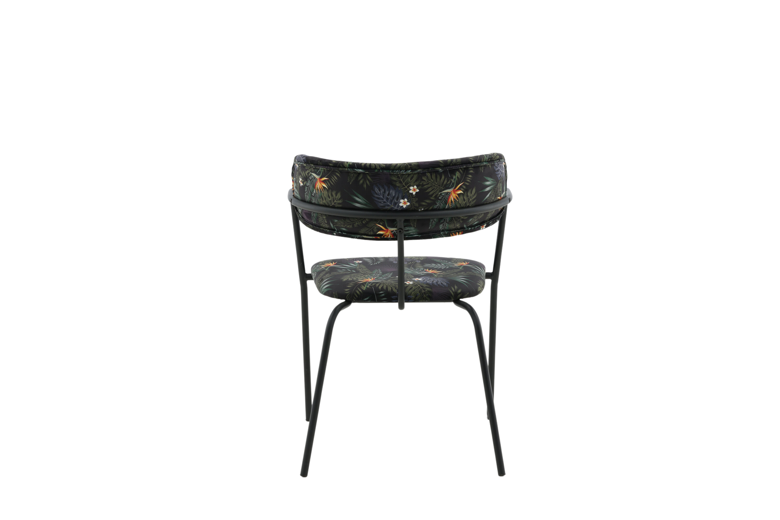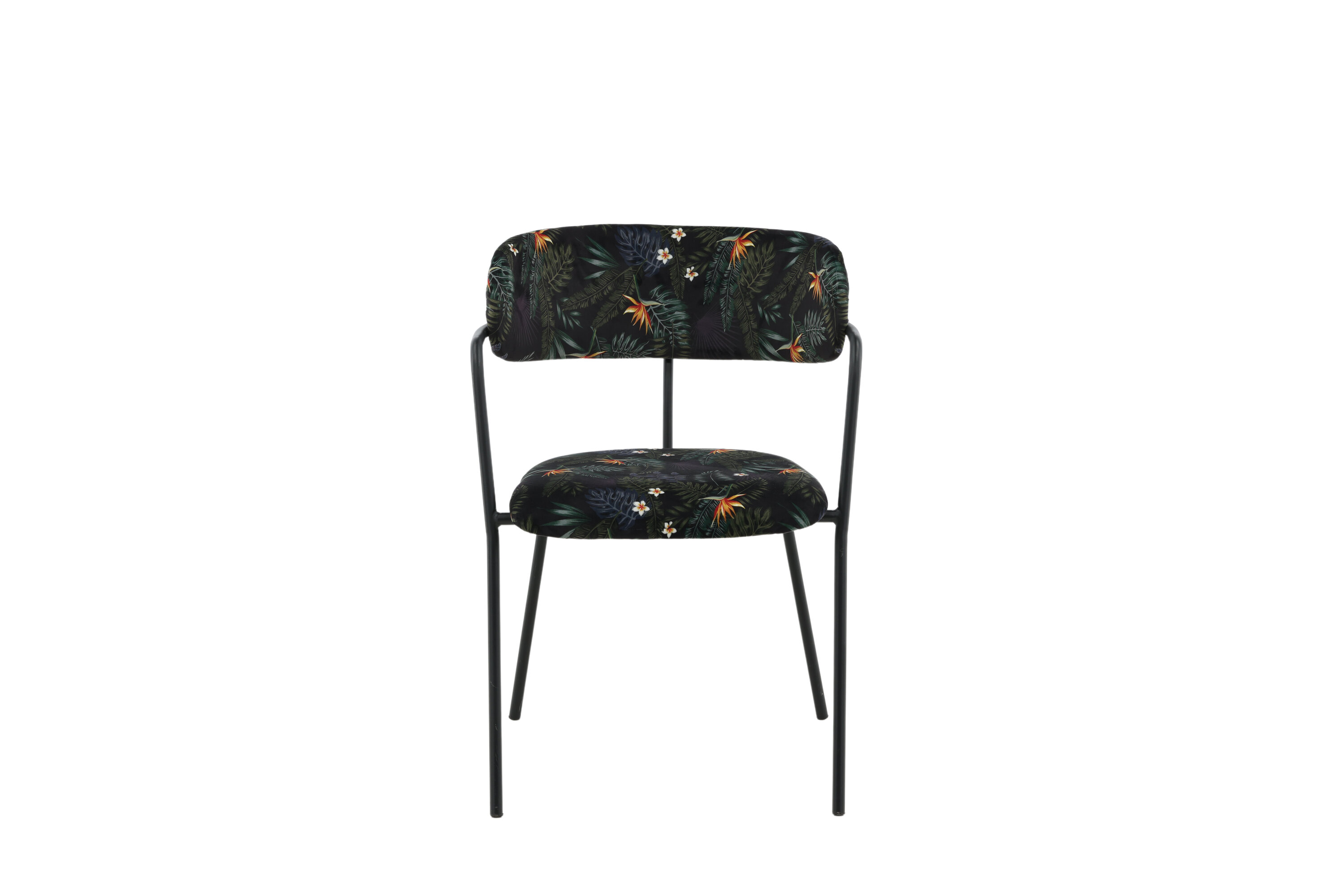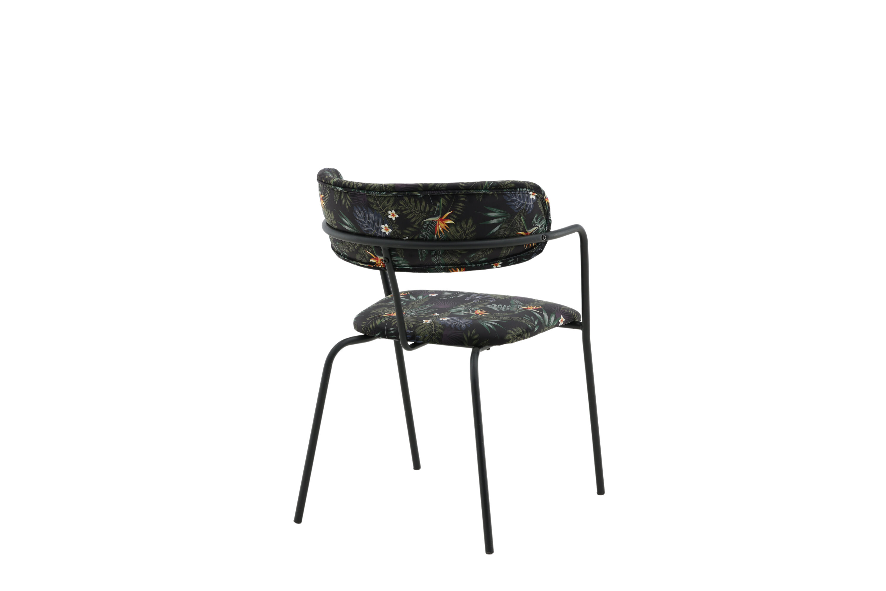 Créez un point focal remarquable avec des chaises de salle à manger multicolores de la série Arrow ! Cette chaise de salle à manger est dotée de pieds et d'accoudoirs intégrés en métal noir thermolaqué et d'un design élégant avec un dos incurvé. Dossier et assise en tissu polyester rembourré noir à motif floral qui crée une impression personnelle à l'intérieur. Un certain montage est nécessaire.