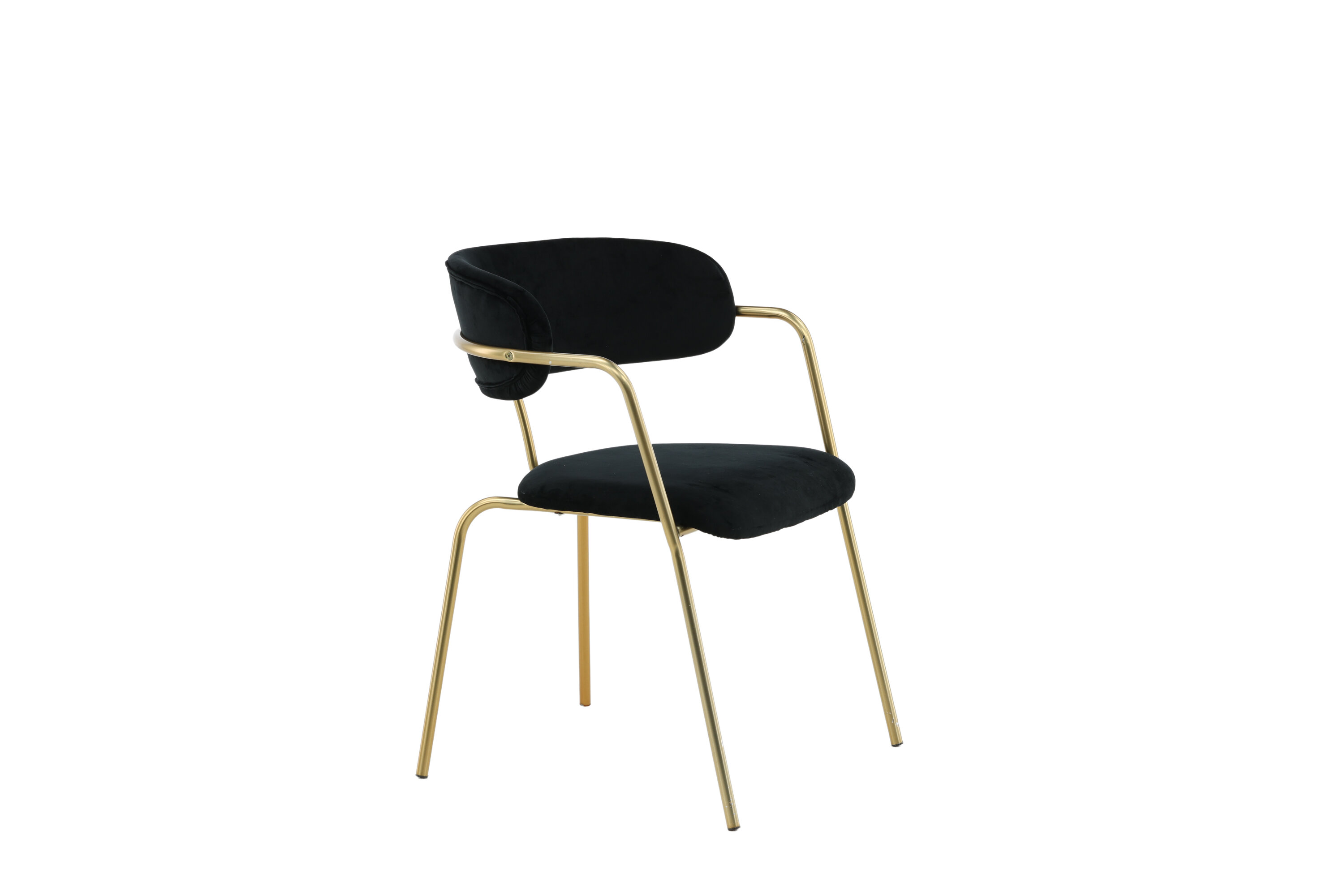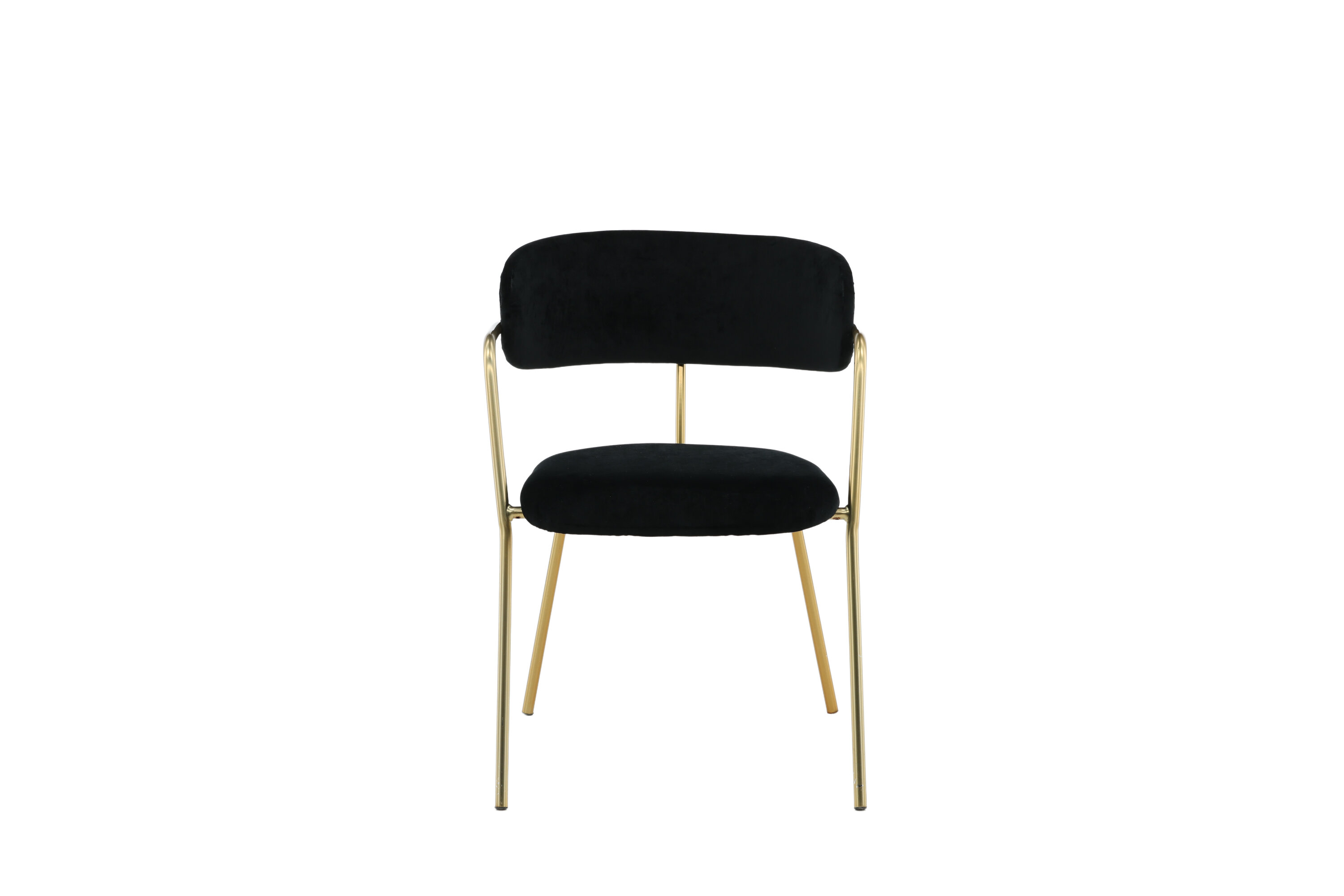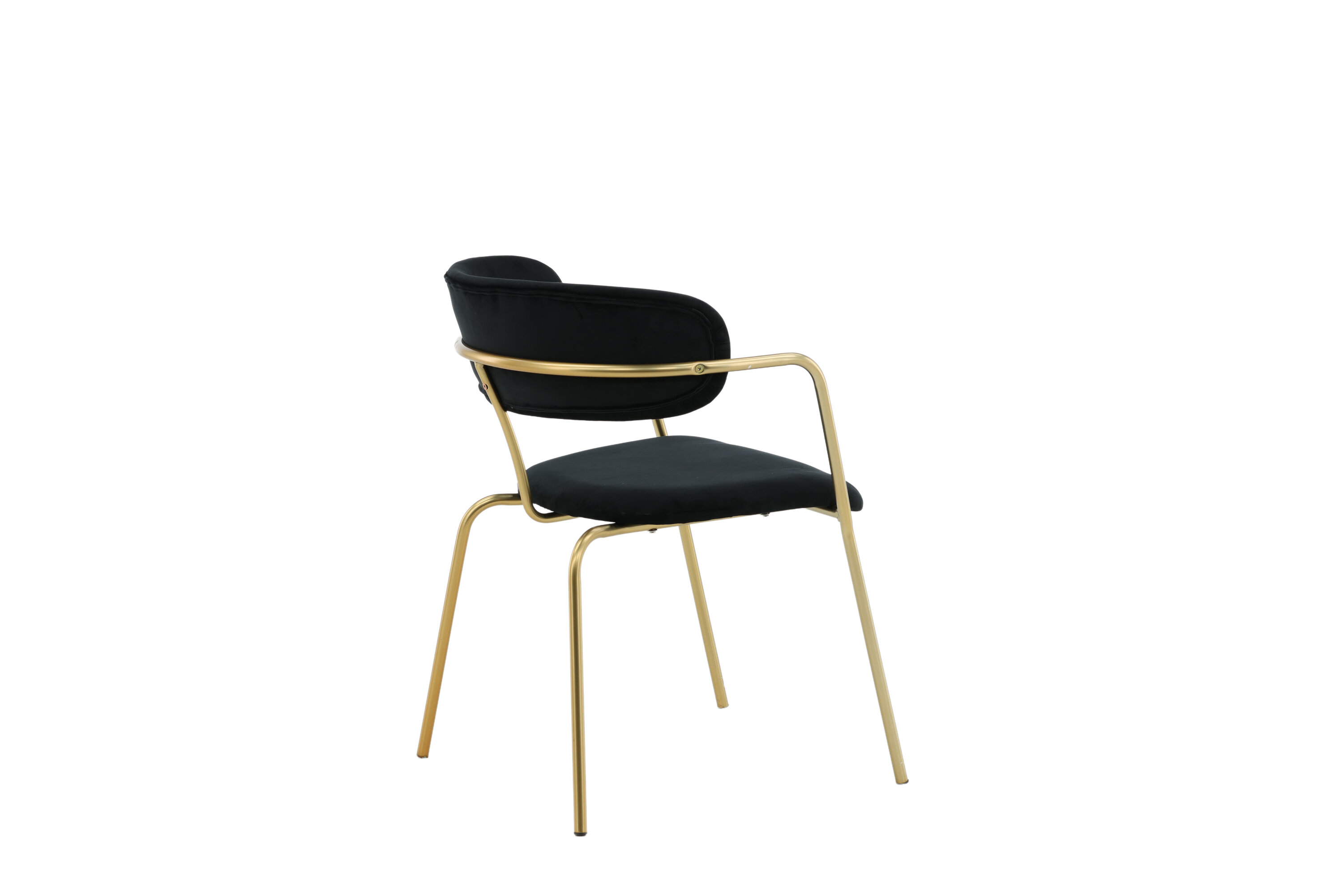 Créez un eye-catcher tendance au cœur de la maison ! Cette élégante chaise de salle à manger de la série Arrow est dotée d'un cadre moderne avec des pieds et des accoudoirs intégrés en aluminium laiton. Le dos est légèrement arrondi dans le même matériau que l'assise, tissu velours noir arrêté. Faites passer le décor de votre maison au niveau supérieur ! Un assemblage plus léger est requis.