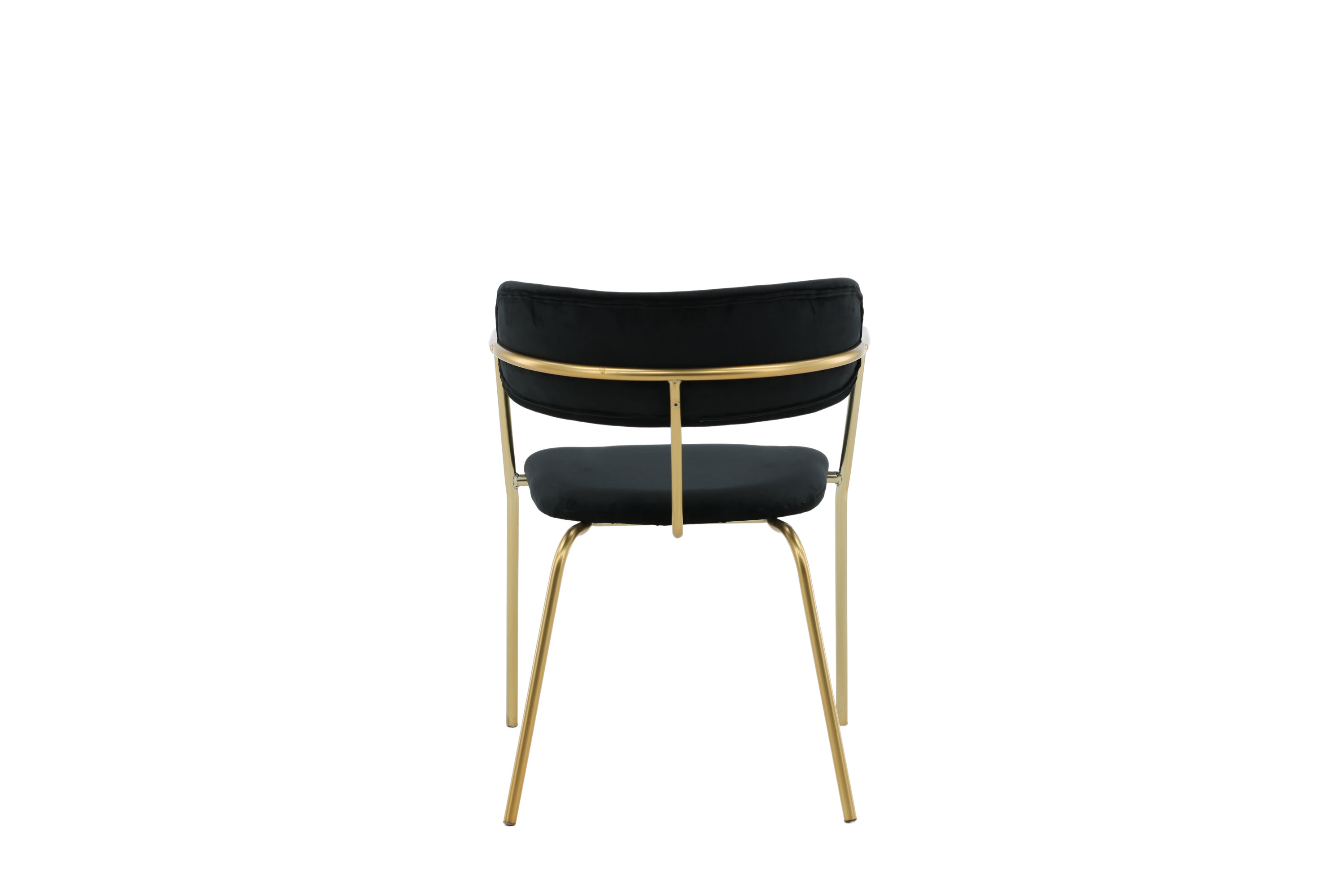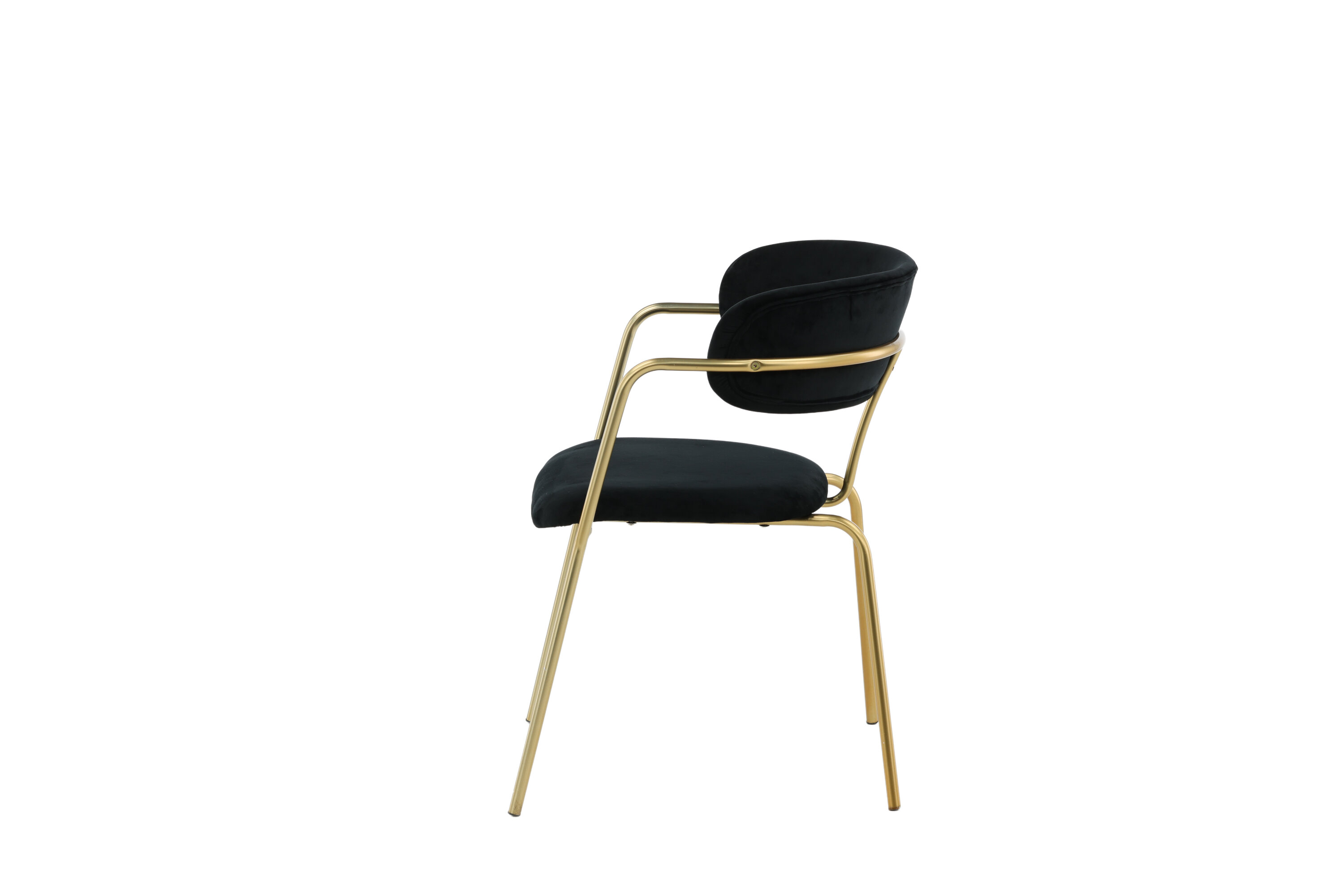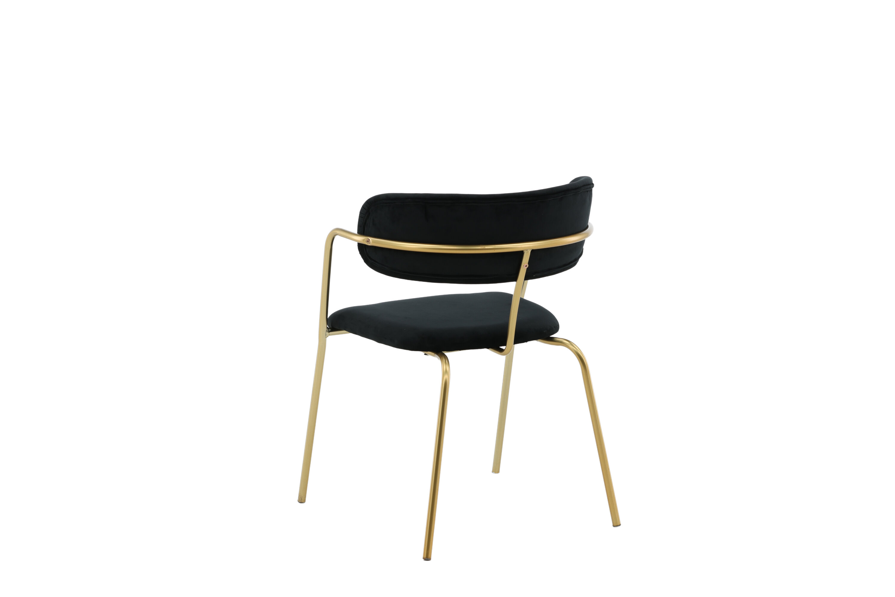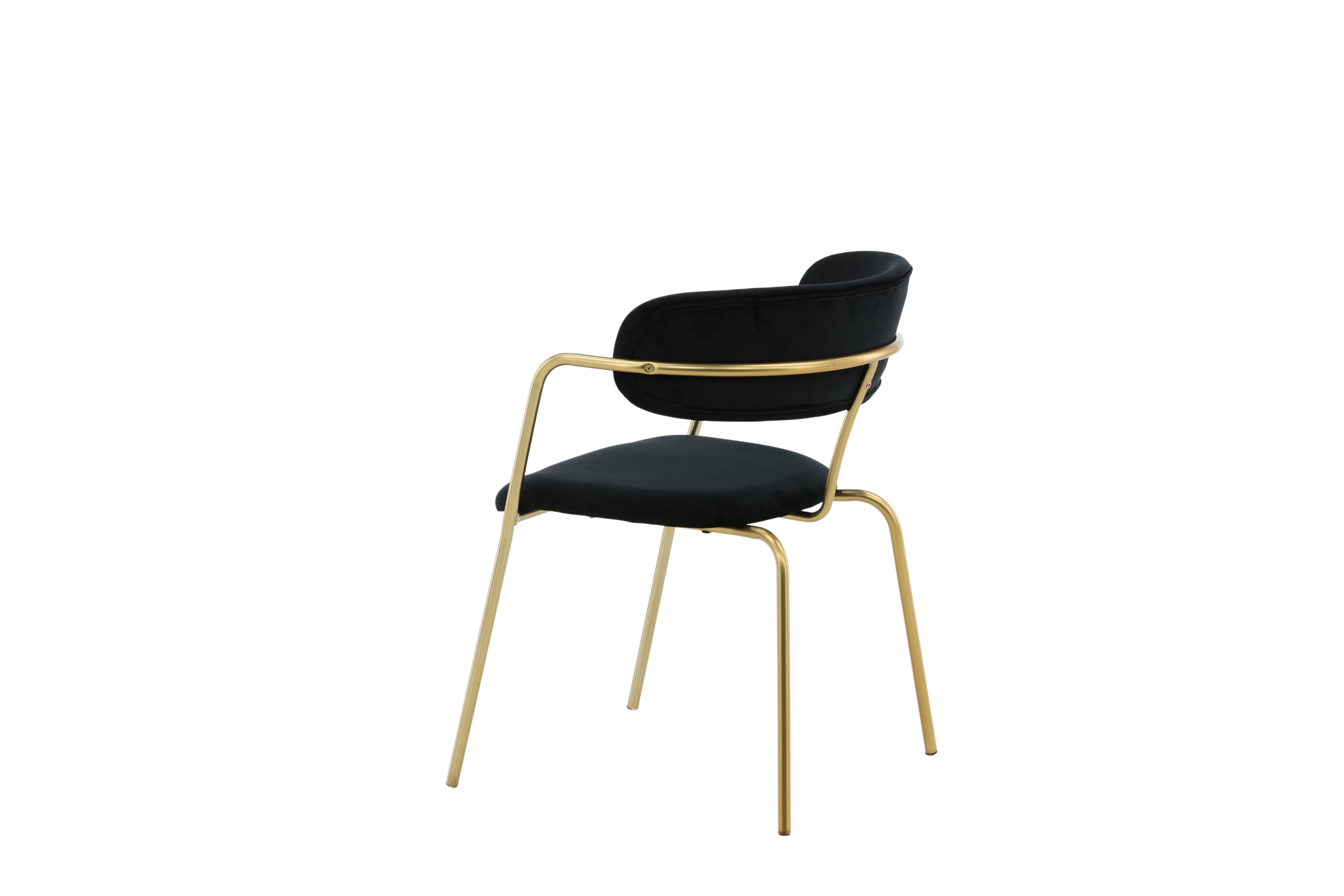 Créez un eye-catcher tendance au cœur de la maison ! Cette élégante chaise de salle à manger de la série Arrow est dotée d'un cadre moderne avec des pieds et des accoudoirs intégrés en aluminium laiton. Le dos est légèrement arrondi dans le même matériau que l'assise, tissu velours noir arrêté. Faites passer le décor de votre maison au niveau supérieur ! Un assemblage plus léger est requis.