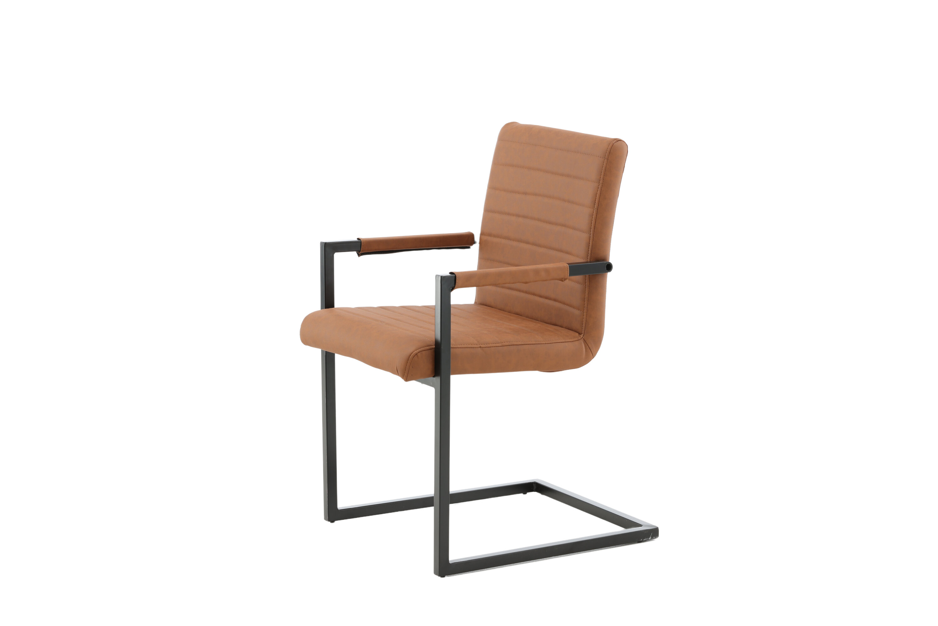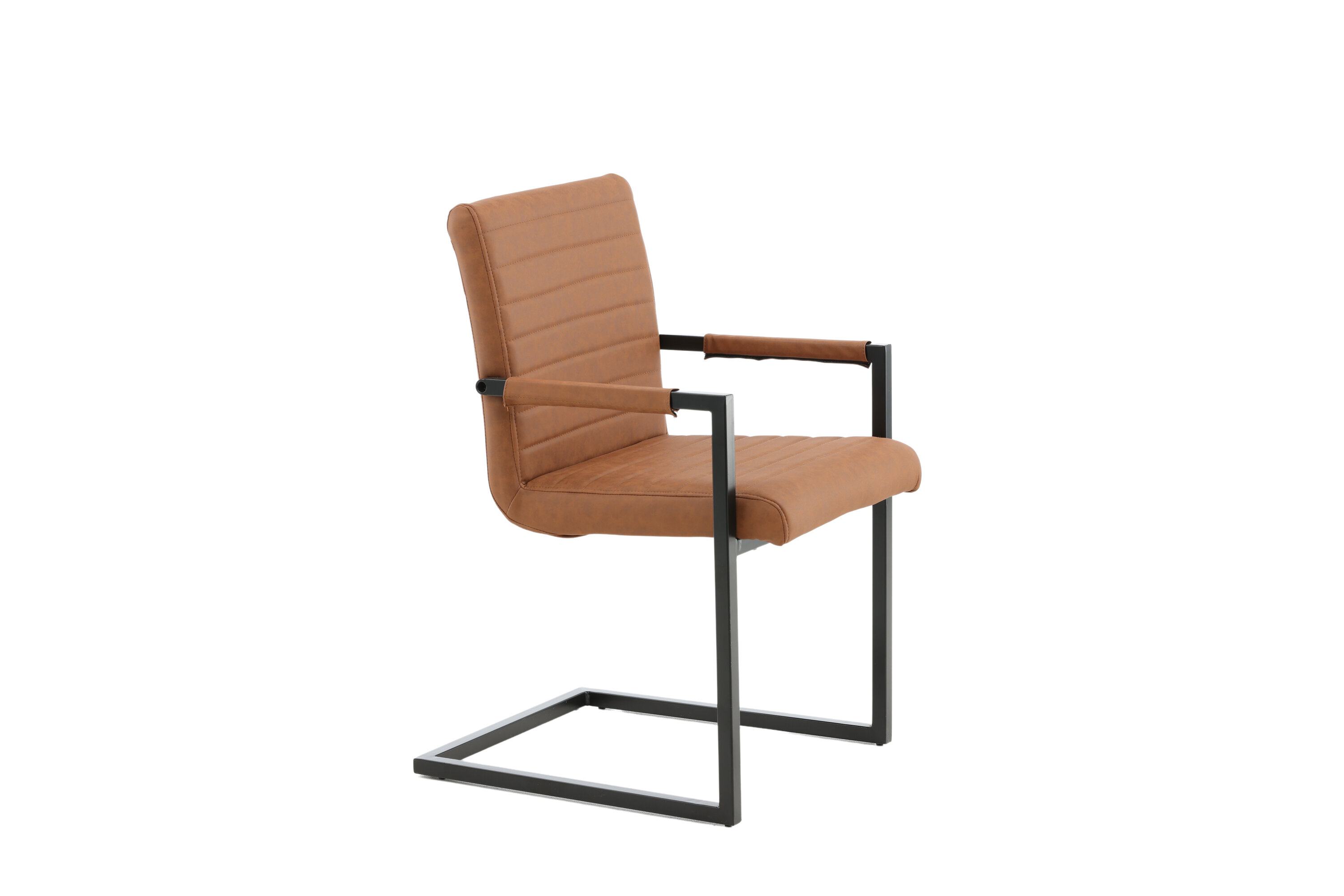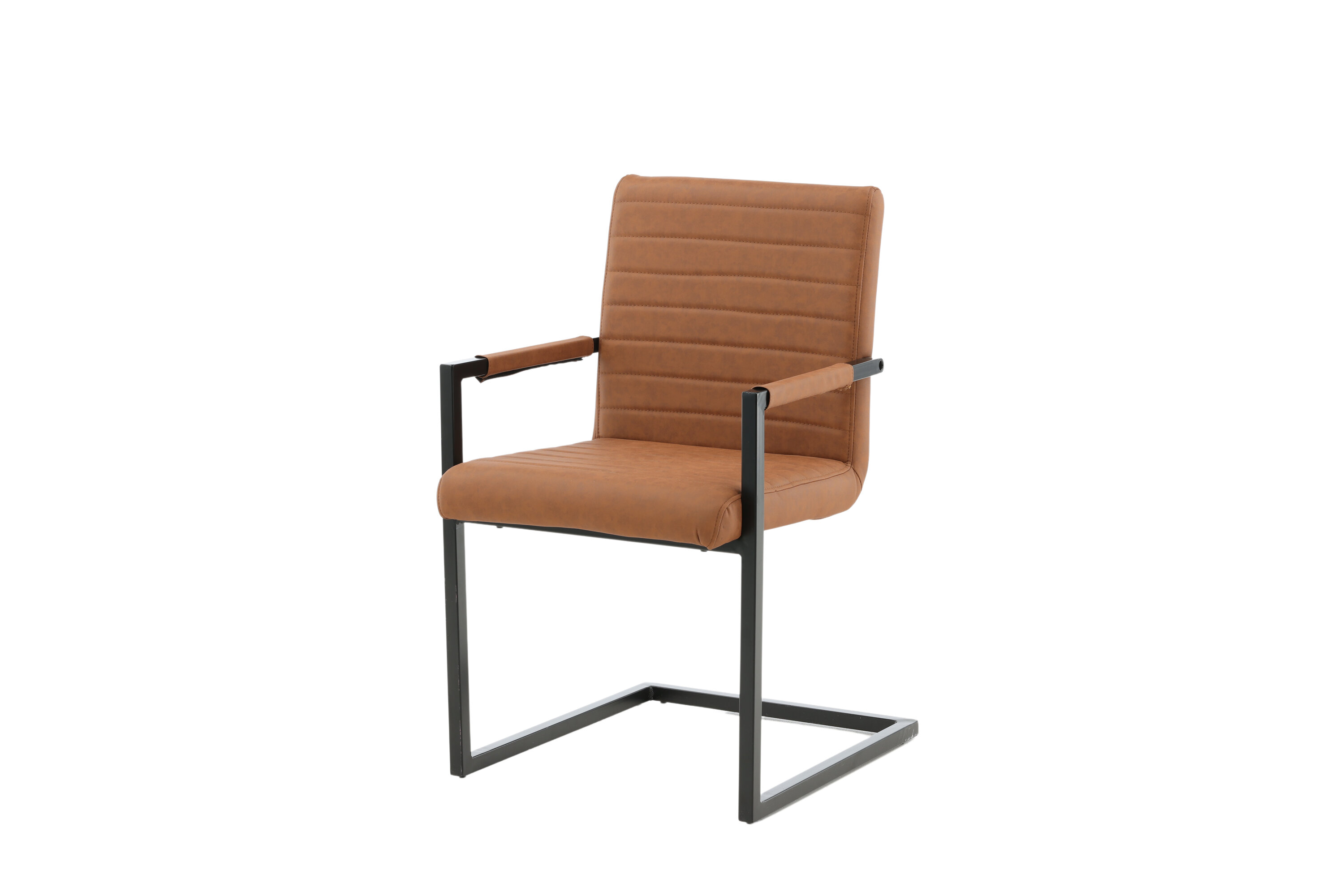 La chaise de salle à manger de la série Art vous propose un fauteuil/fauteuil dans un design industriel entièrement habillé, avec un châssis rustique et un accoudoir intégré en métal peint par poudre noire. Dossier et assise larges pour plus de confort en cuir artificiel marron avec des coutures décoratives à l'intérieur du dossier et de l'assise dans un joli motif. Un assemblage plus léger est requis.