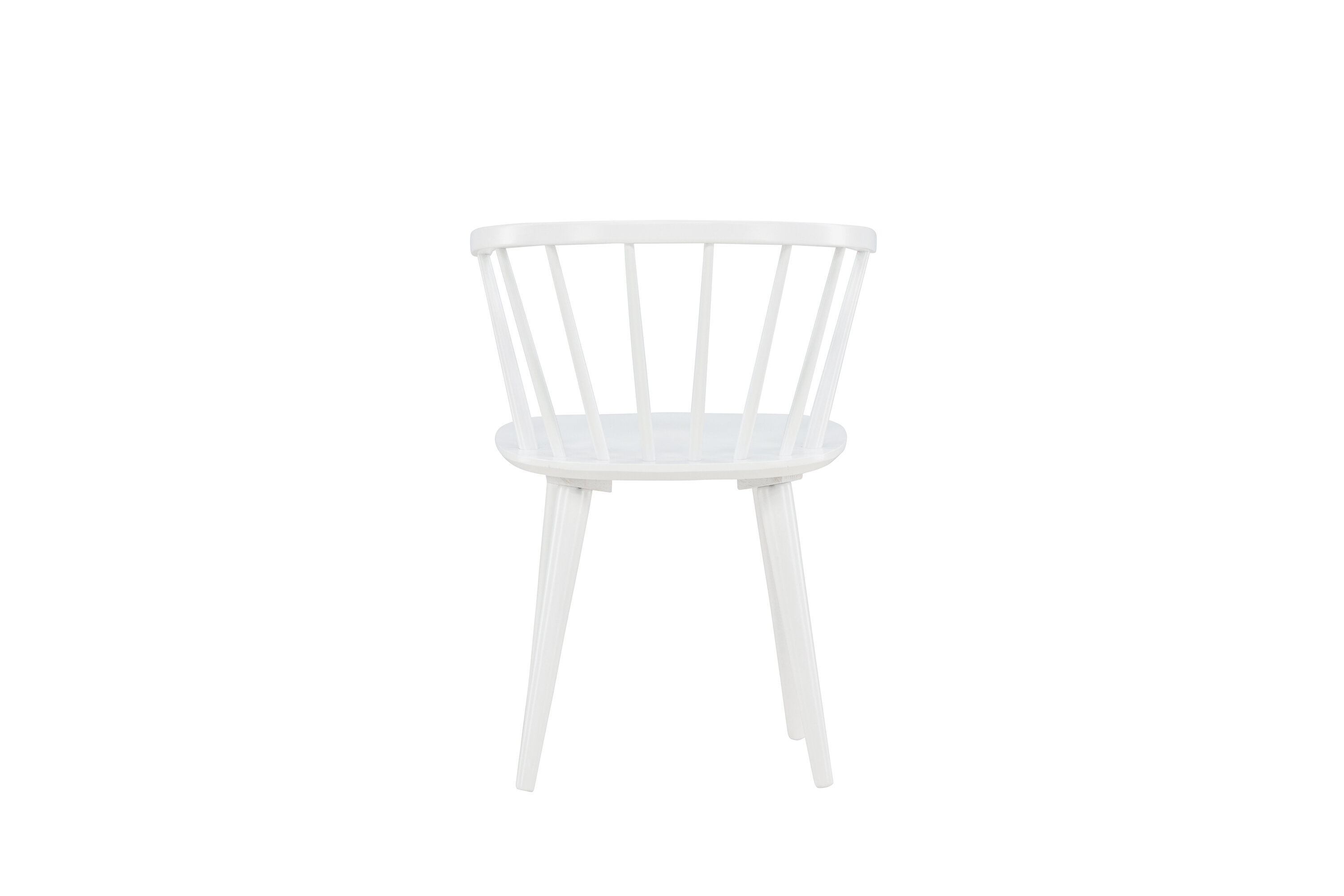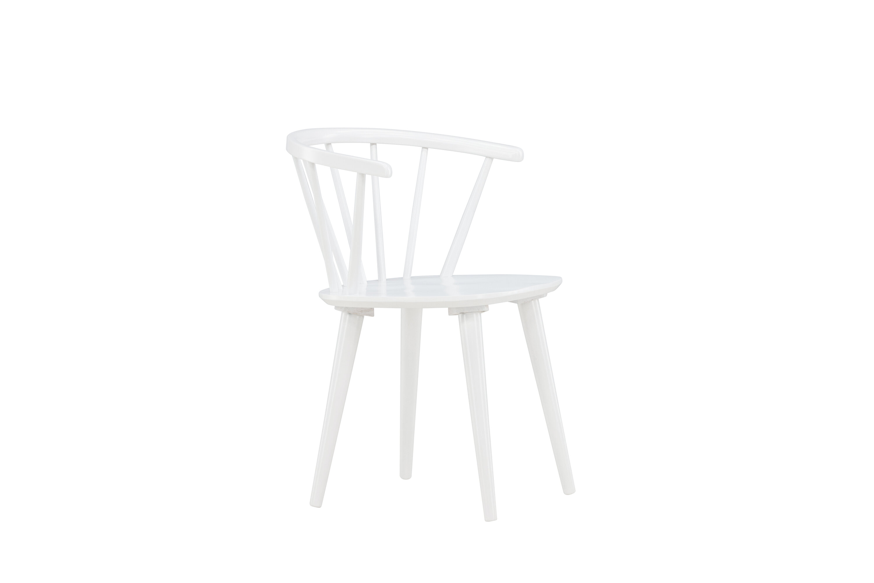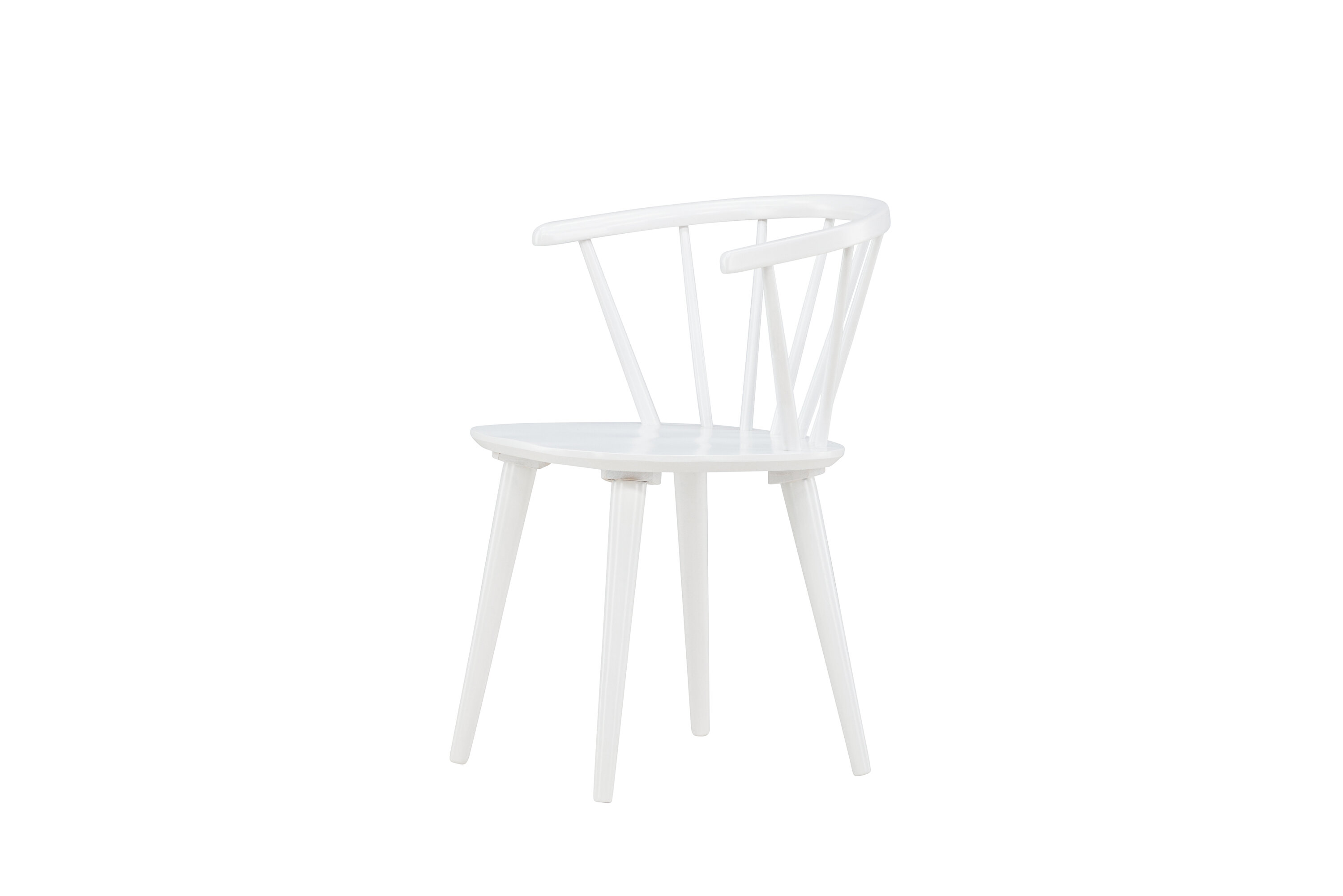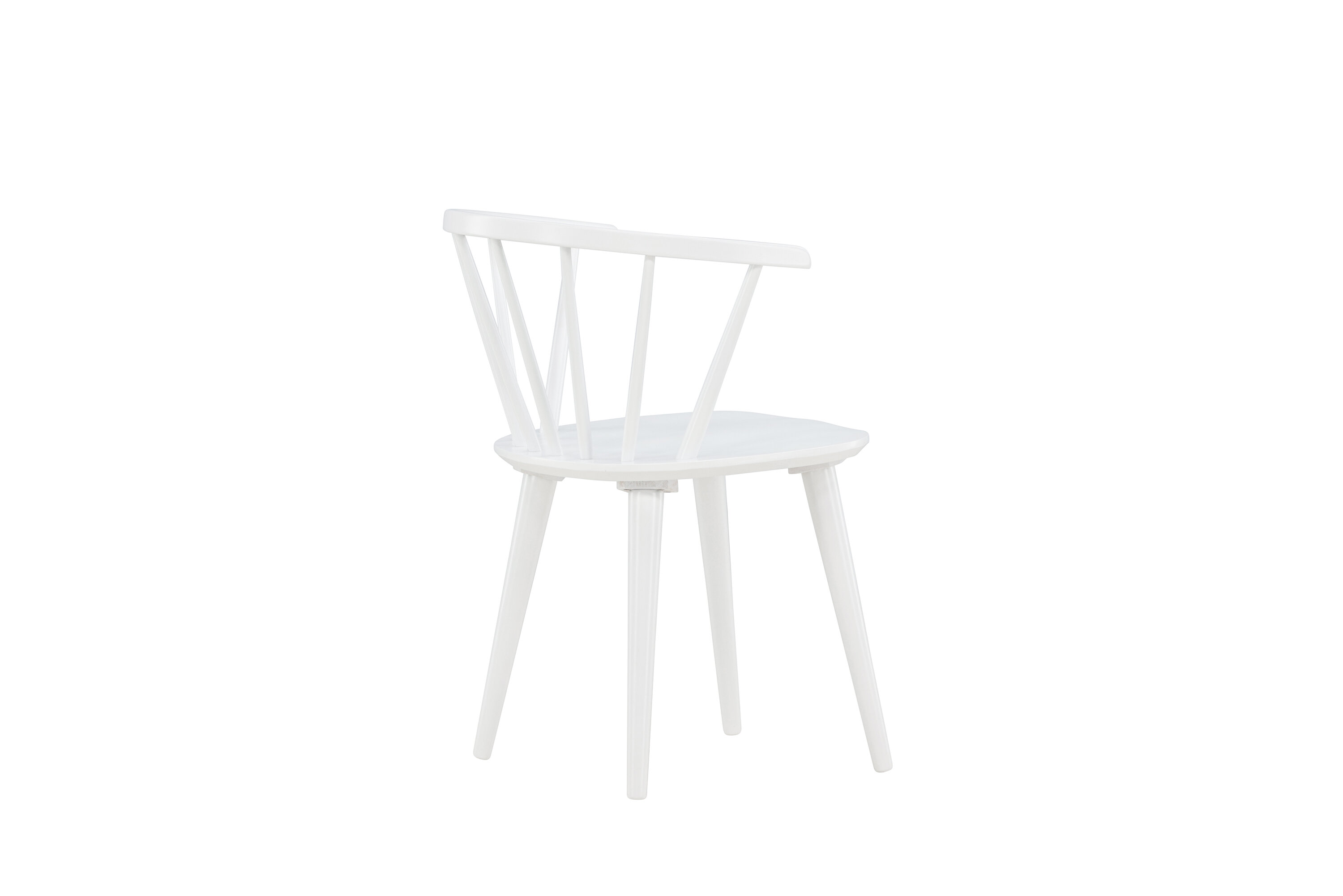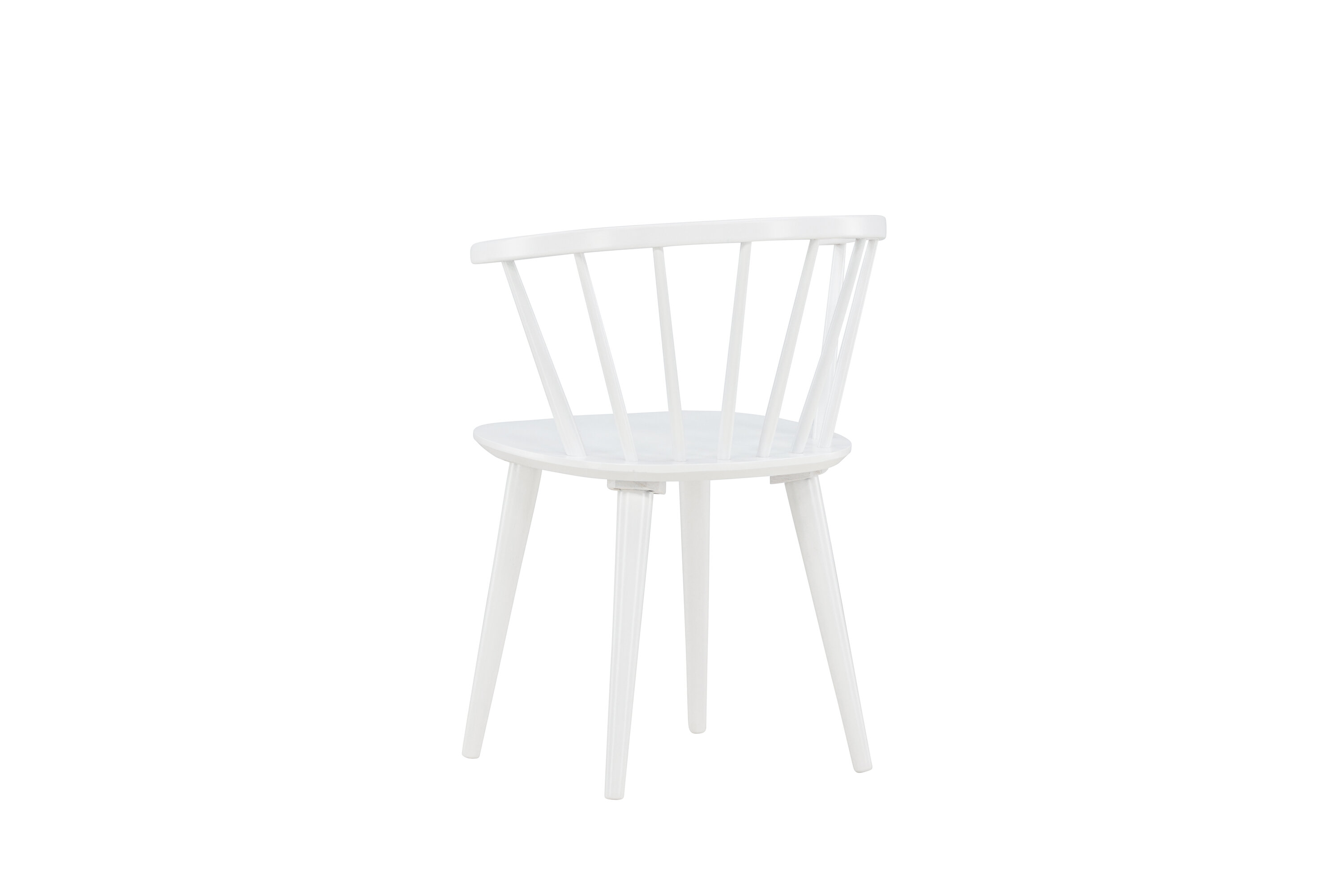 Bobby est une chaise de salle à manger en bois de caoutchouc et de couleur blanche. Cette chaise crée une atmosphère chaleureuse et accueillante dans la pièce. Avec son dossier souple, il offre une expérience d'assise confortable.