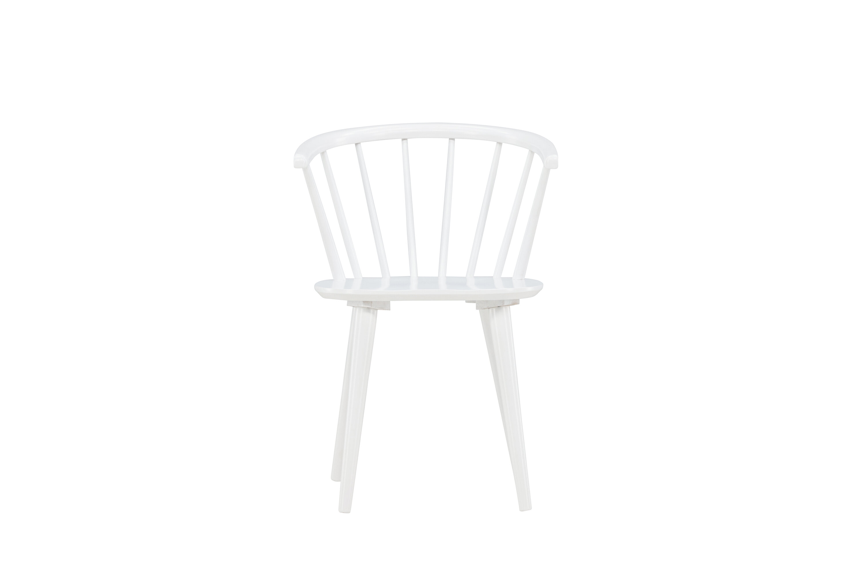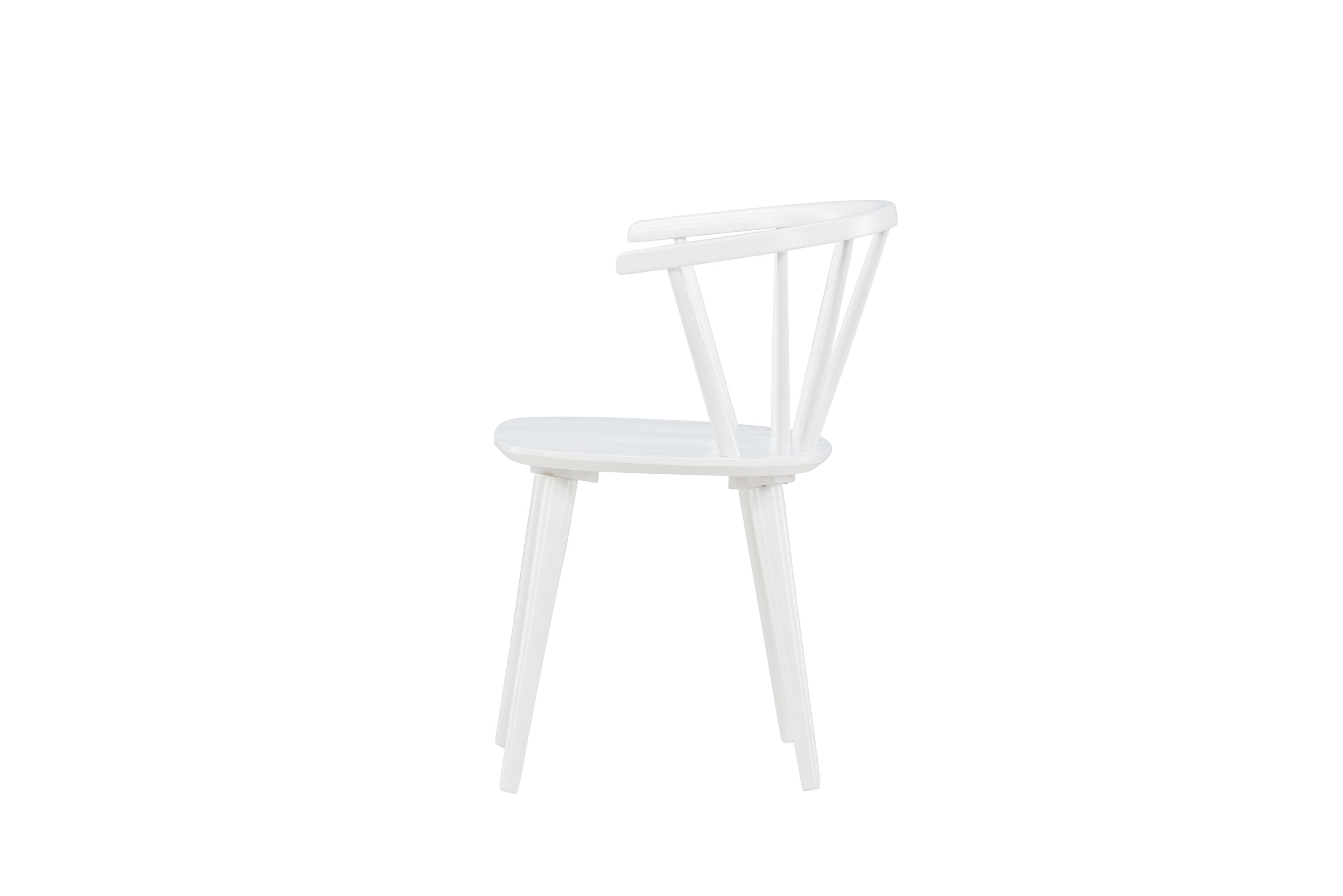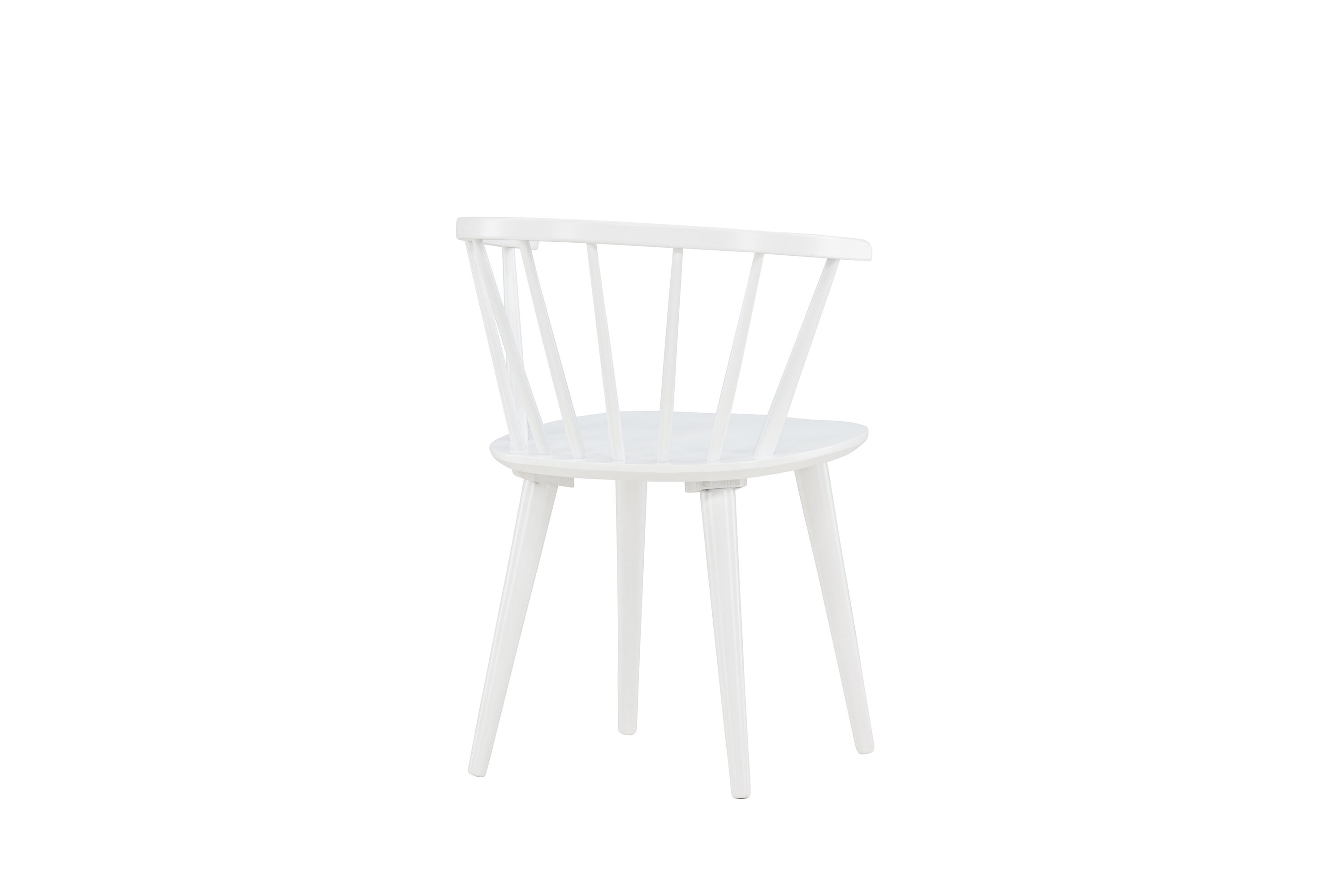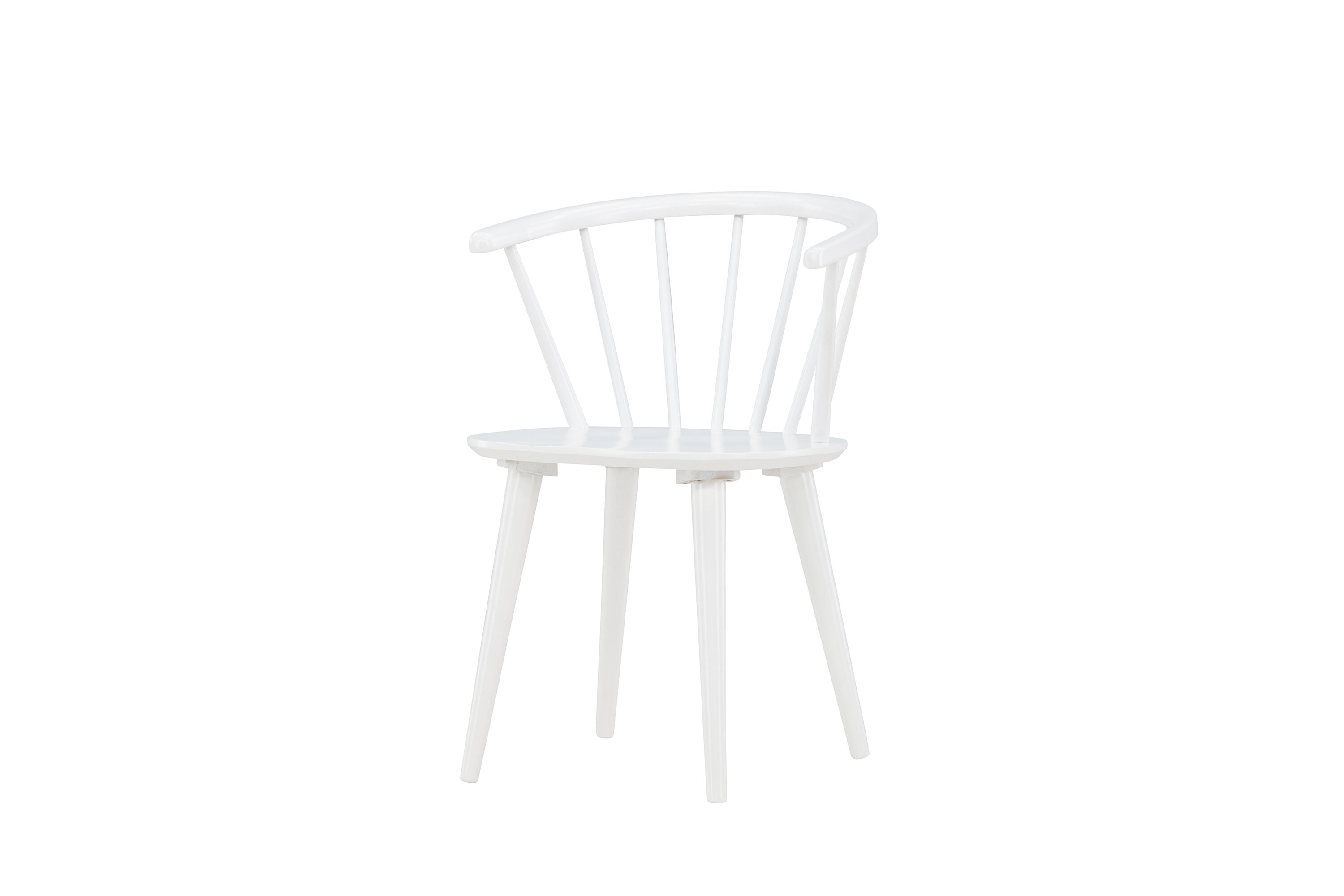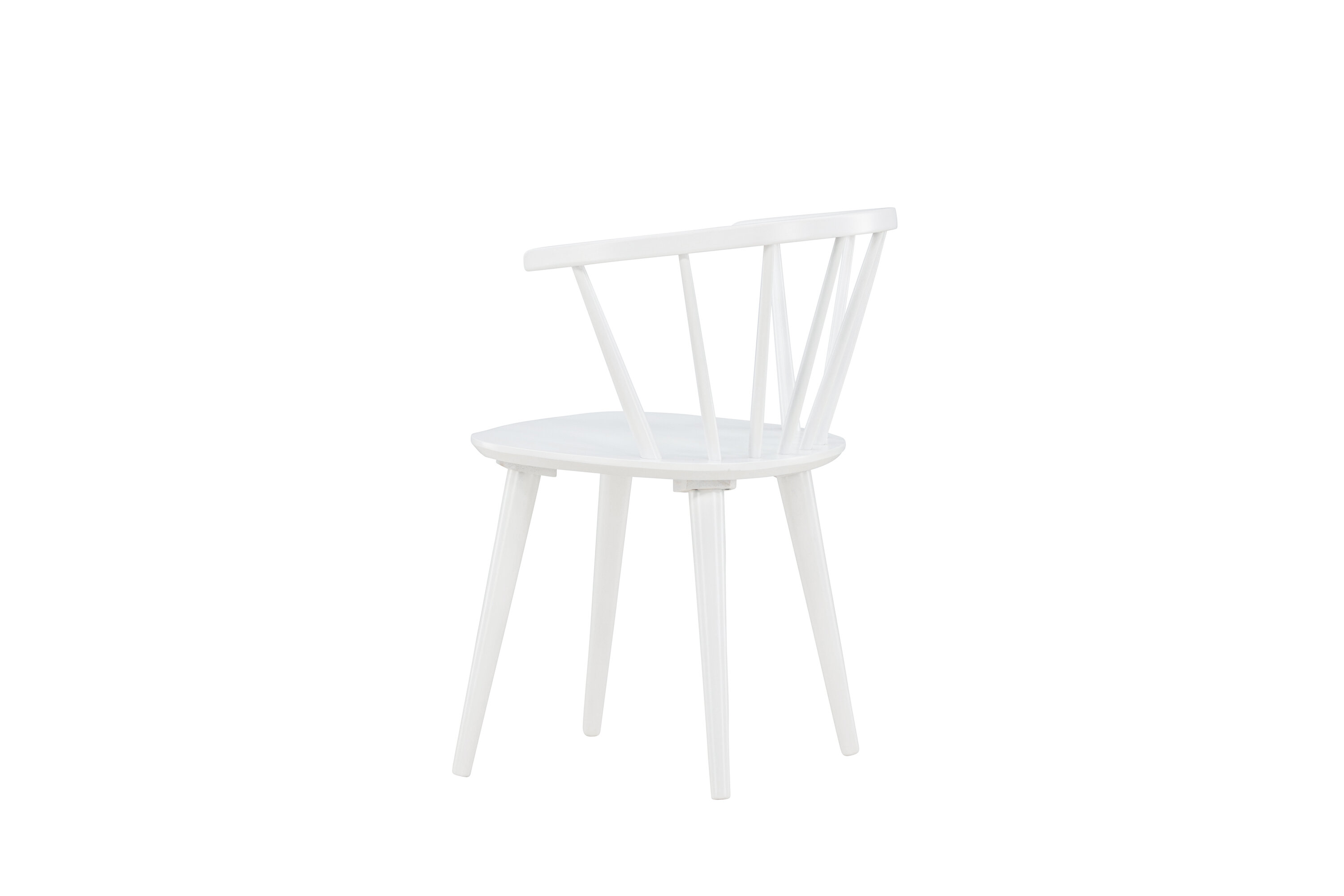 Bobby est une chaise de salle à manger en bois de caoutchouc et de couleur blanche. Cette chaise crée une atmosphère chaleureuse et accueillante dans la pièce. Avec son dossier souple, il offre une expérience d'assise confortable.