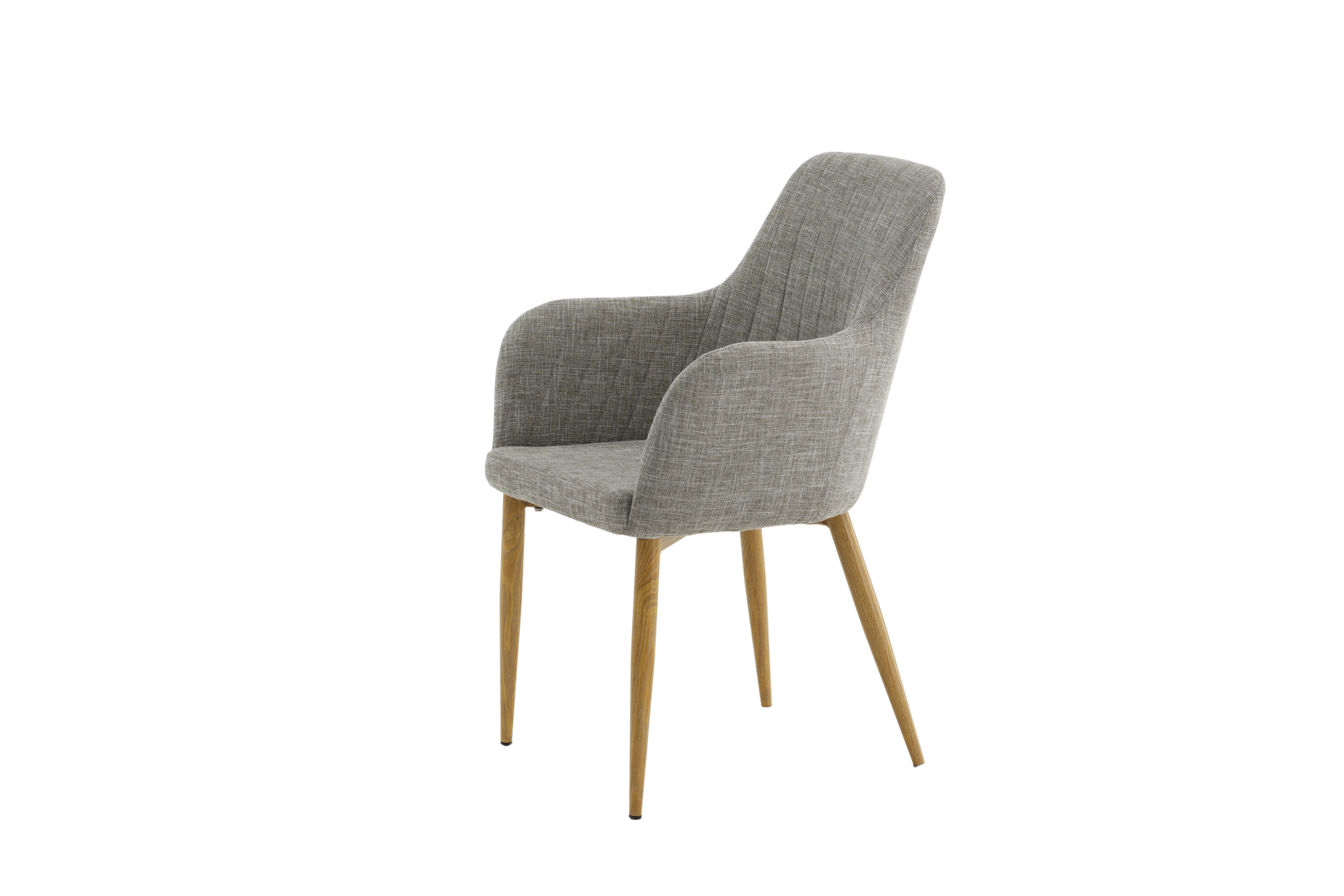Évitez de faire des compromis entre design et confort ! Cette chaise de salle à manger de la série Comfort vous offre le meilleur des deux mondes. Dans un design robuste entièrement rembourré avec des pieds en métal plaqué chêne et un dossier et un siège avec accoudoirs intégrés en tissu polyester gris clair, cette chaise offre des sièges confortables. Les coutures décoratives à l'intérieur du dossier et des accoudoirs ajoutent une touche élégante. Un certain montage est nécessaire.