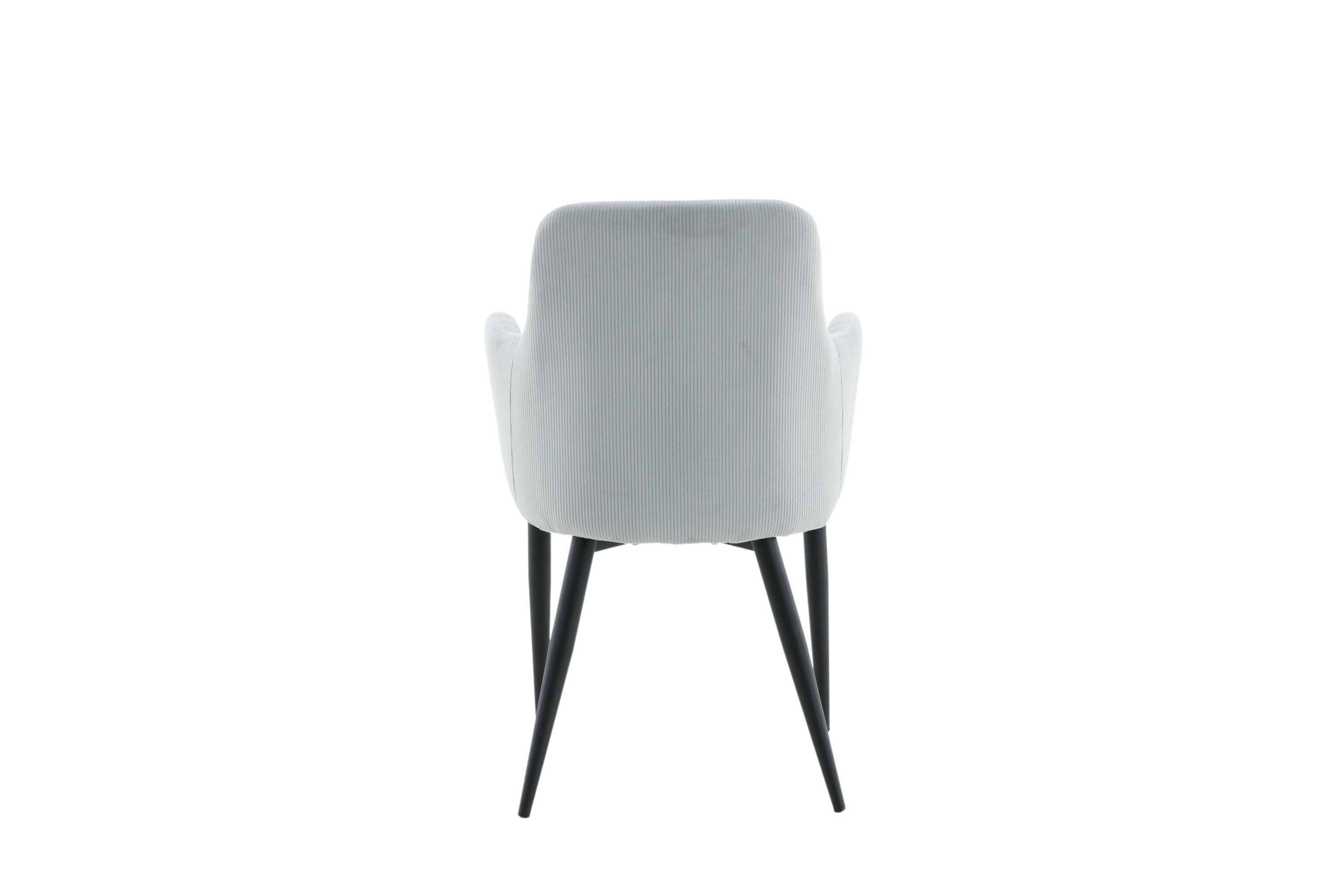 Laissez le design moderne rencontrer la nostalgie des années 50 avec cette chaise en velours tendance de la série Comfort ! Vêtue d'un doux tissu de velours gris qui crée un look moderne pour le cœur de la maison. Les pieds sont en métal noir thermolaqué et le siège avec accoudoirs intégrés en velours gris offre un siège confortable. Les coutures décoratives à l'intérieur du dossier et des accoudoirs ajoutent un détail élégant. Un certain montage est nécessaire.
