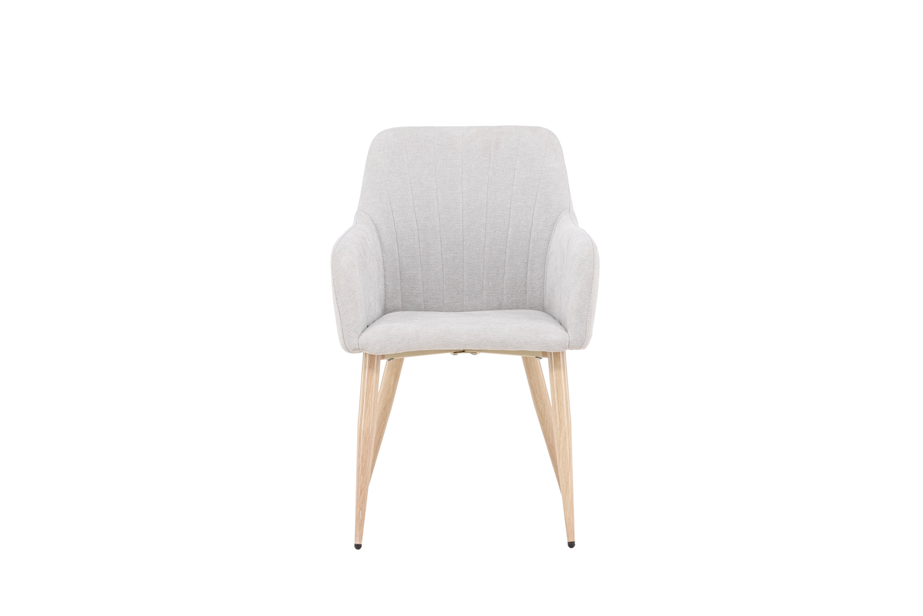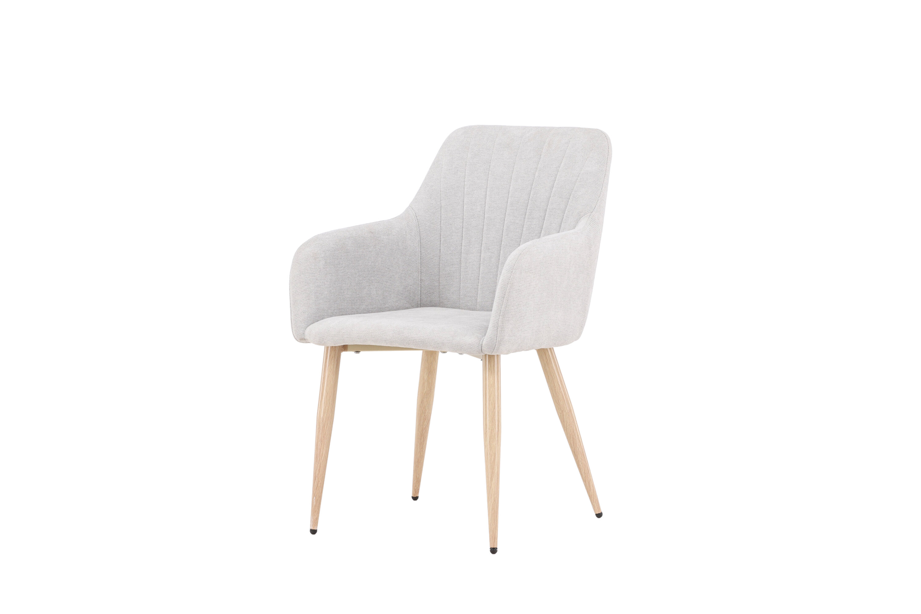 La chaise est faite de lin polyester pour une expérience d'assise confortable et a des pieds en acier pour une stabilité et une utilisation durable.