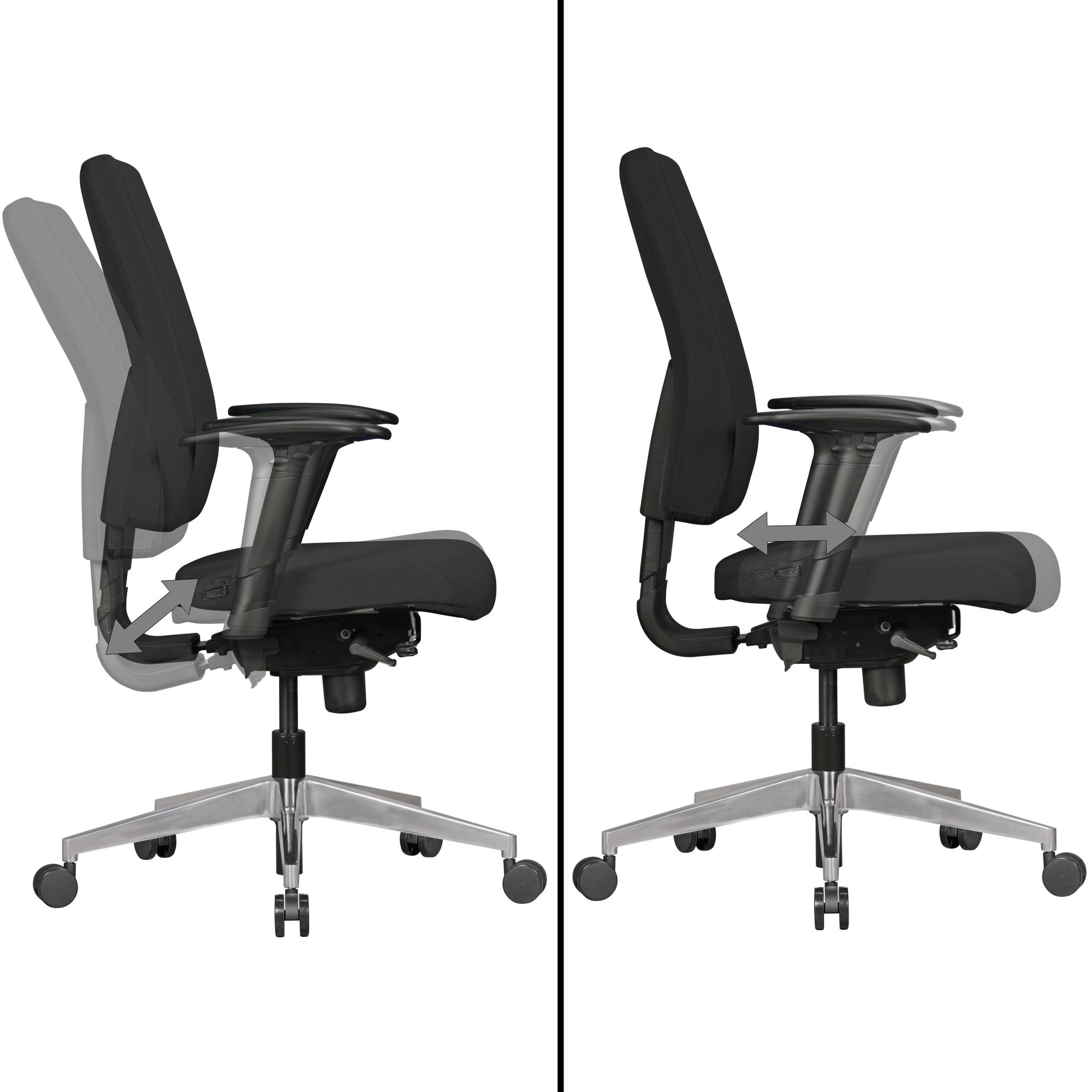Les accoudoirs réglables en hauteur et la mécanique synchro 3 points permettent une assise personnalisée et soutiennent parfaitement le dos, notamment la zone lombaire. La profondeur d'assise est ajustable (5 cm) pour un maintien adapté.