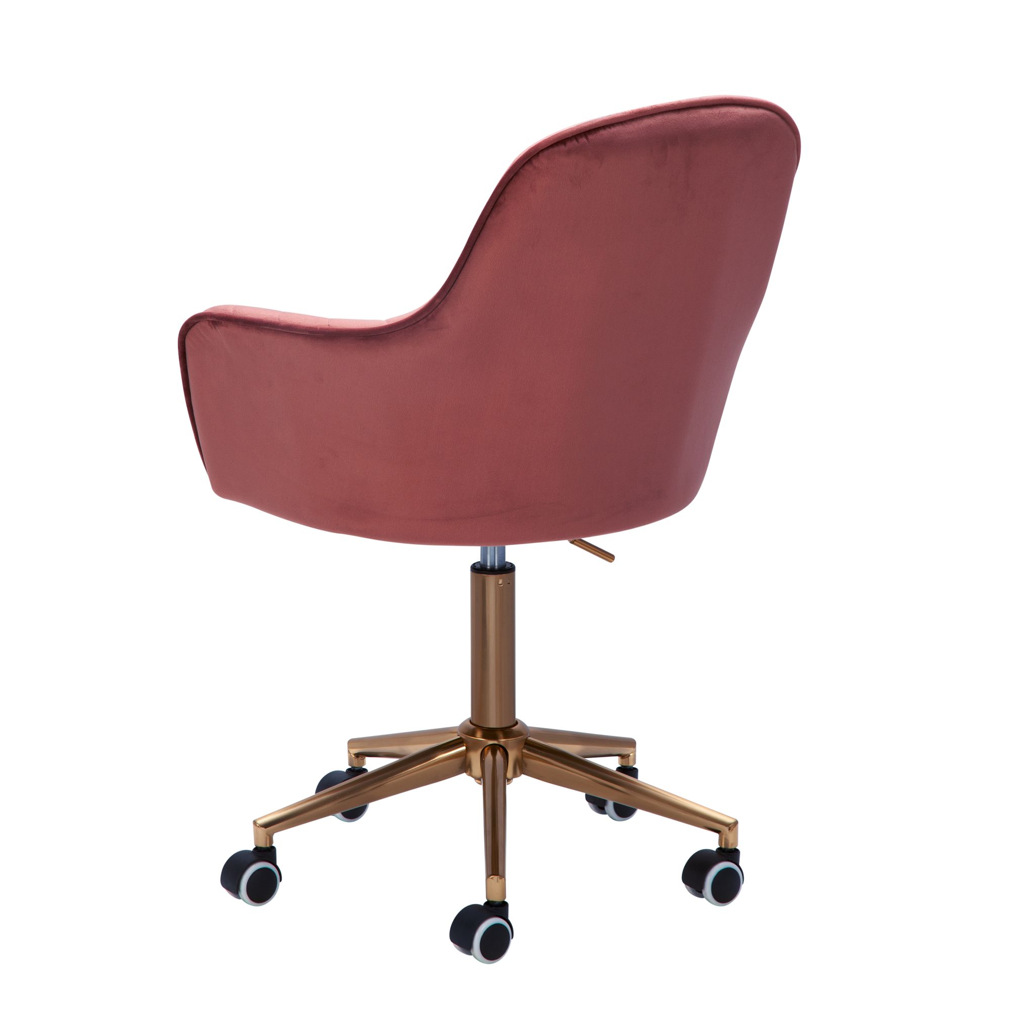 Apportez une touche douce et élégante à votre espace de travail avec cette chaise de bureau en velours rose. La coque ergonomique offre un excellent confort d'assise tandis que le piètement doré peint en fer garantit stabilité et style. Compacte et pratique, sa hauteur est ajustable entre 43 et 63 cm, supportant jusqu'à 120 kg.