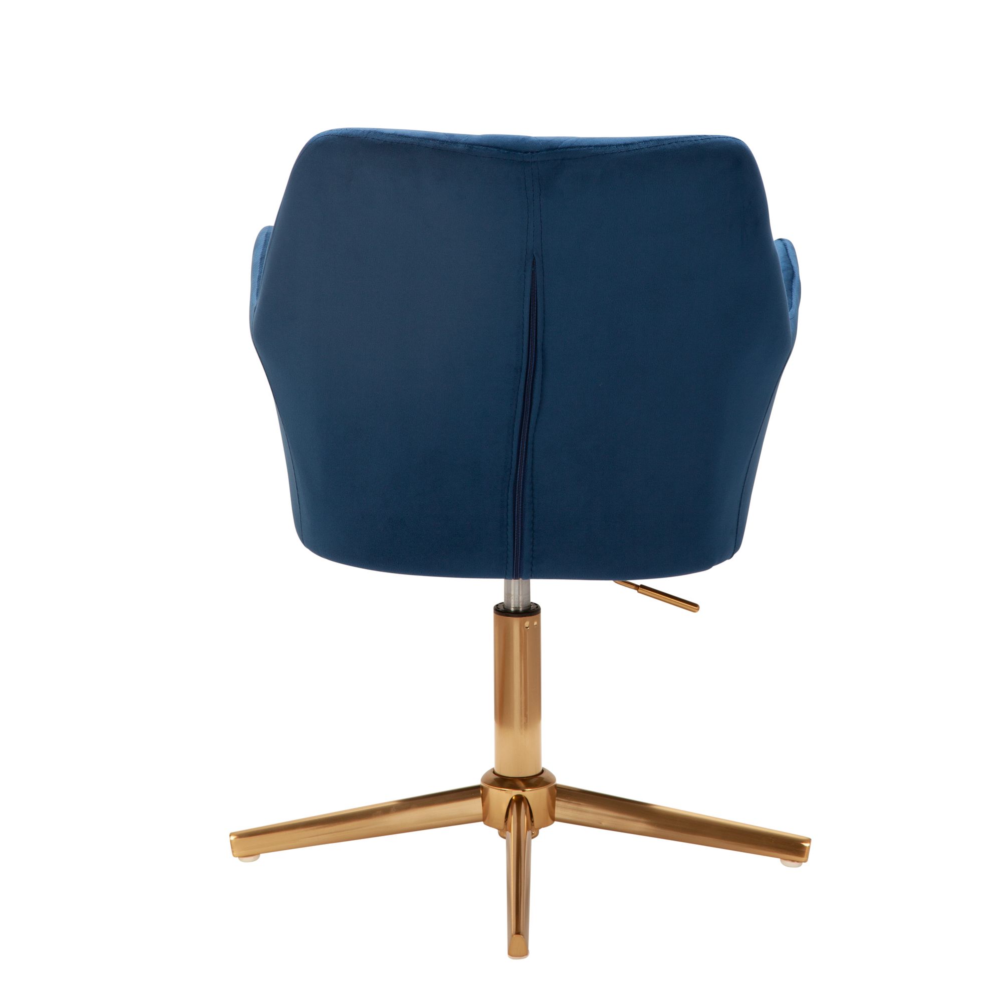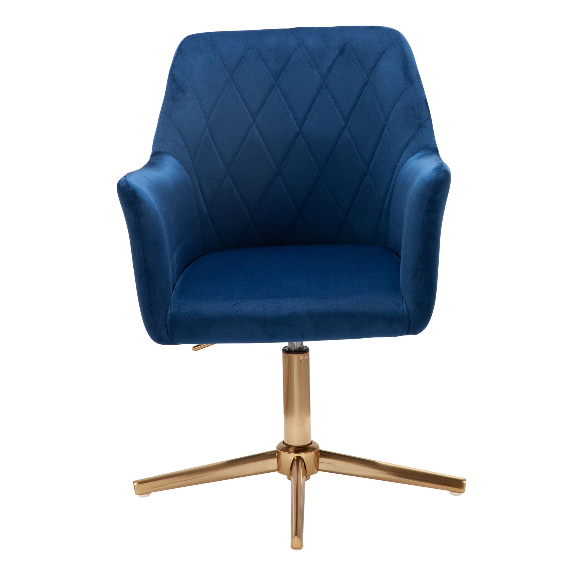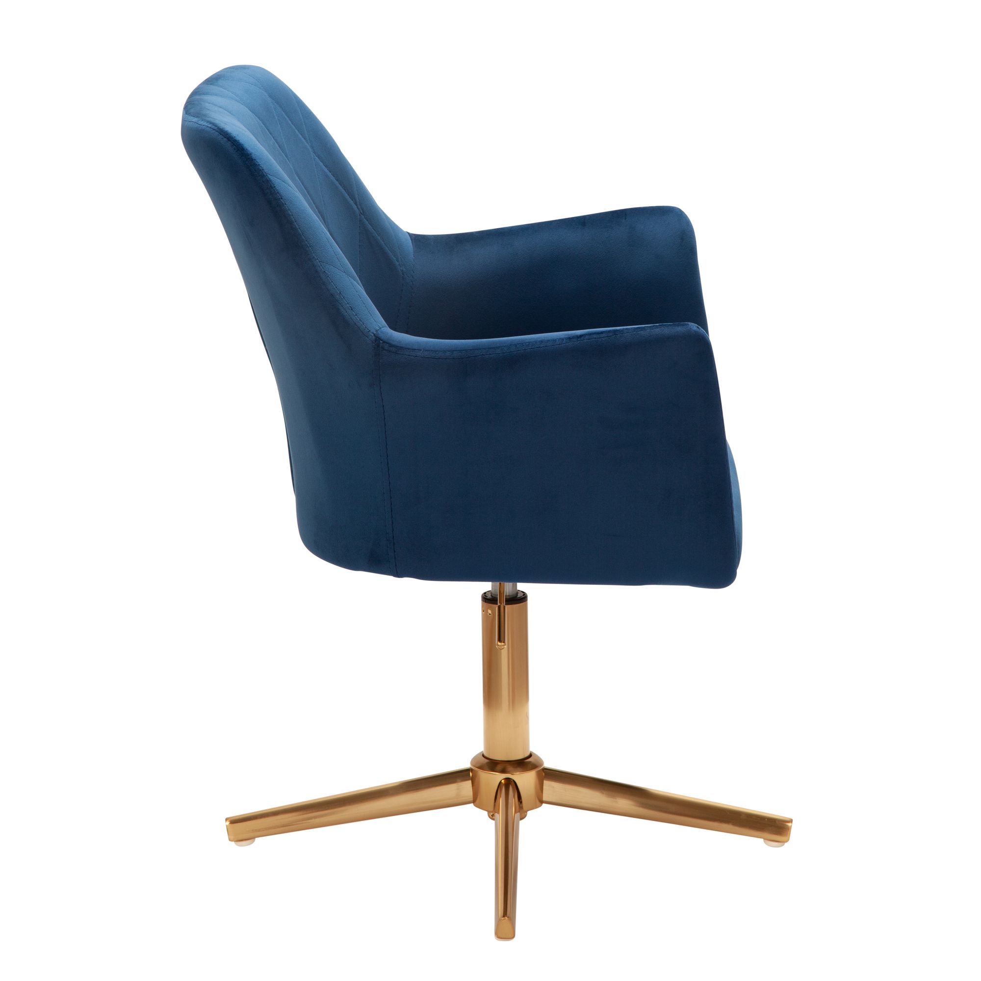 Chaise de bureau bleu foncé velours | Métal doré | Hauteur réglable 80-97 cm