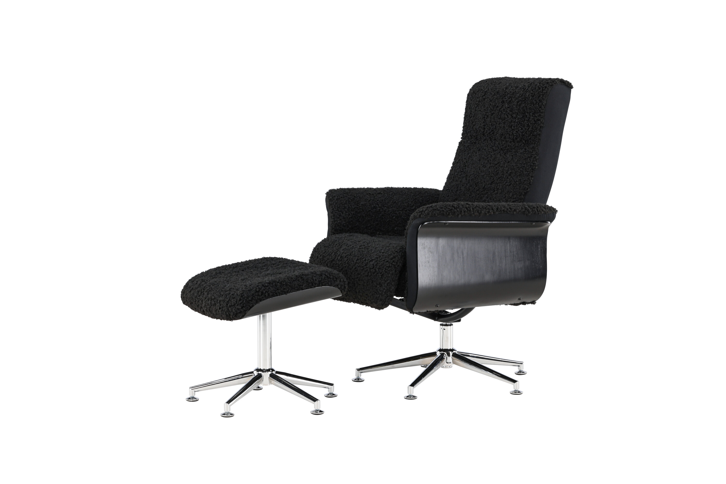 Entrez dans un monde de confort et de style avec le fauteuil Hagön ! Ce fauteuil doux en tissu gris foncé ressemblant à de la fourrure vous accueille avec un confort et un confort instantanés. Le dossier flexible peut être ajusté pour offrir un confort parfait lorsque vous souhaitez lire un livre ou simplement vous détendre. Pour une expérience d'assise haut de gamme, le Hagön comprend également un repose-pieds assorti pour un soutien et une détente supplémentaires pour vos pieds. Avec ses accoudoirs confortablement arrondis et son élégant cadre noir, complété par des pieds chromés, ce fauteuil offre une esthétique moderne qui se fond harmonieusement dans n'importe quelle pièce. Avec son design nordique et son confort imbattable, le Hagön est un ajout indispensable à toute maison soucieuse de son style.