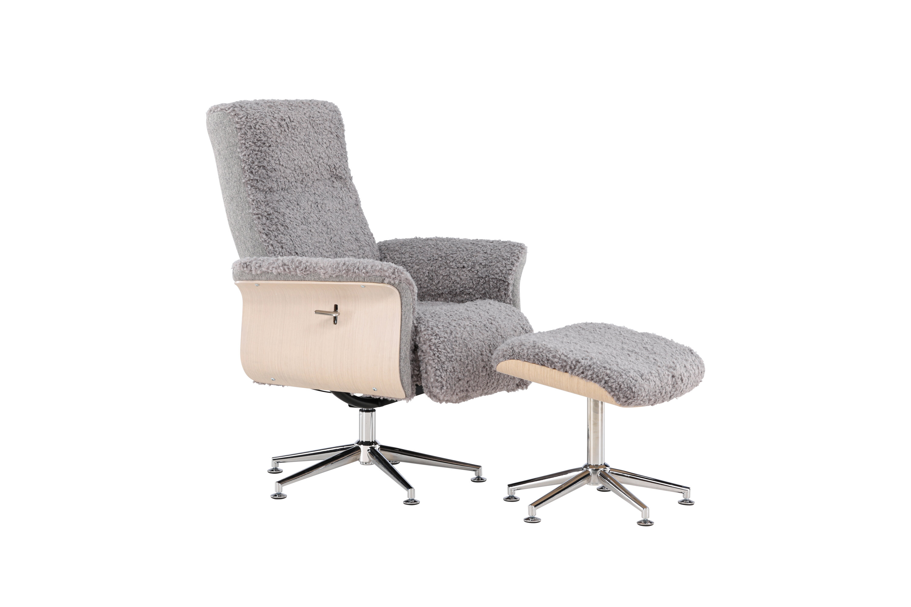 Le fauteuil Hagön constitue un investissement intemporel pour votre maison ! Avec un design soigné et des détails soignés, ce fauteuil représente un chef-d' œuvre du design nordique. Vêtu d'un tissu gris doux ressemblant à de la fourrure, Hagön procure une sensation de luxe et de bien-être dès le premier instant. Le cadre en bois de couleur blanchie à la chaux contribue à une esthétique aérée et moderne qui se fond parfaitement dans n'importe quel intérieur. Les élégantes jambes chromées ajoutent une brillance subtile au design. Les accoudoirs, agréablement arrondis et conçus pour la détente, et le repose-pieds qui les accompagne offrent un soutien et un confort supplémentaires aux pieds fatigués. De plus, le dossier est réglable pour maximiser le confort. Que vous souhaitiez profiter d'un livre ou socialiser avec des amis, Hagön est l'endroit idéal pour cela !