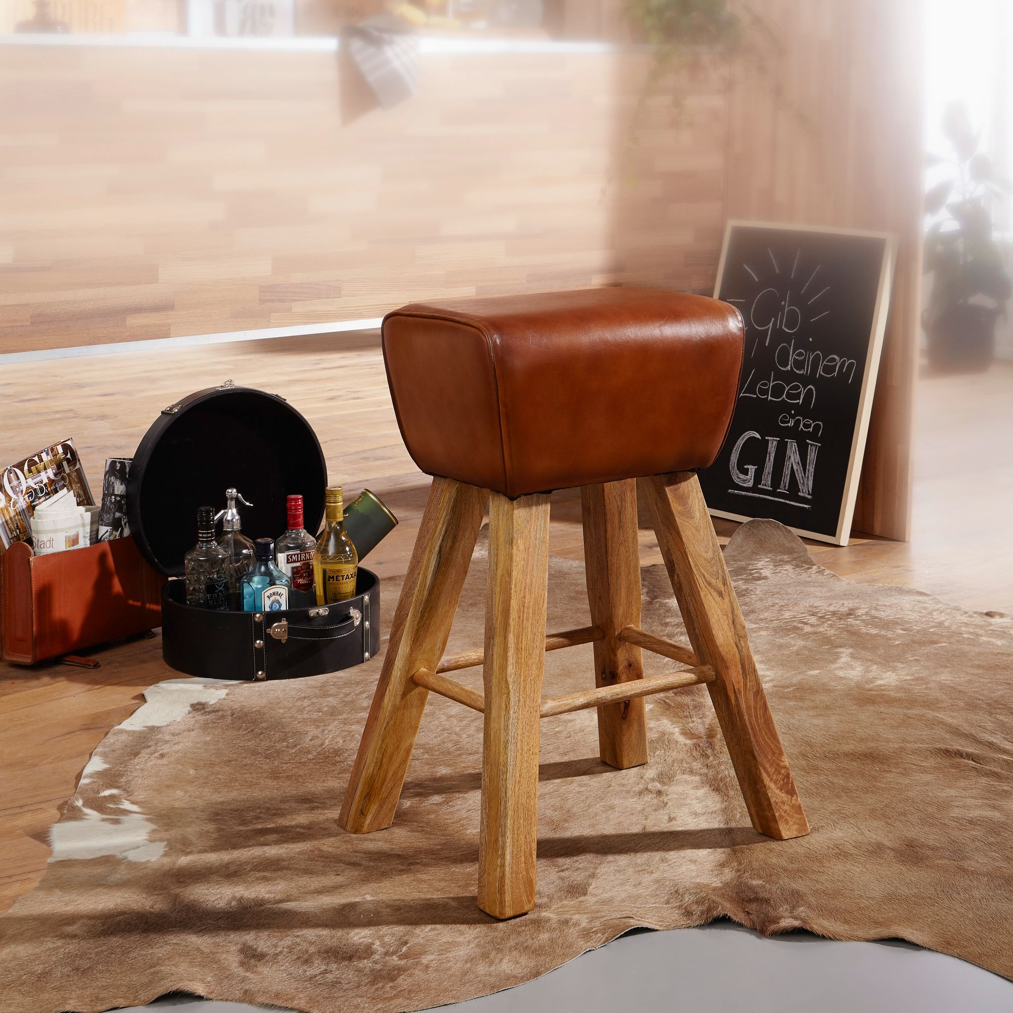 Informations sur le produit "Barhocker Country en bois de manguier et cuir marron | 43x75x43 cm"