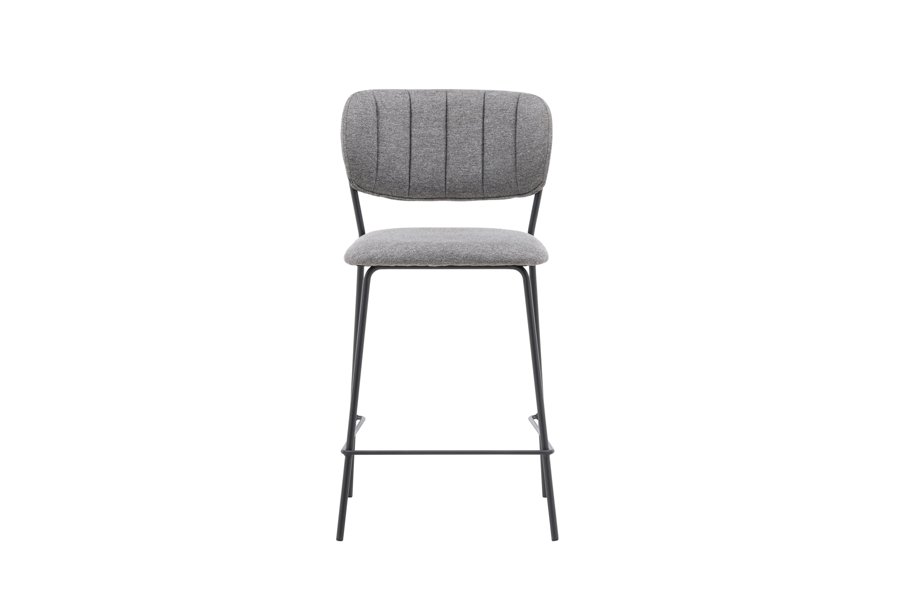 Aménagez le cœur de la maison moderne, confortable et intemporel avec un tabouret de bar attrayant de la série Bell dans un design élégant ! Ce tabouret de bar a un design entièrement habillé avec un dossier et un siège légèrement arrondis en tissu polyester gris avec des coutures décoratives élégantes et les pieds de la chaise sont étroits en acier noir avec repose-pieds intégré - garanti comme agréable et confortable. Créez un look accueillant et agréable autour de votre table de bar et savourez de délicieux repas ensemble !