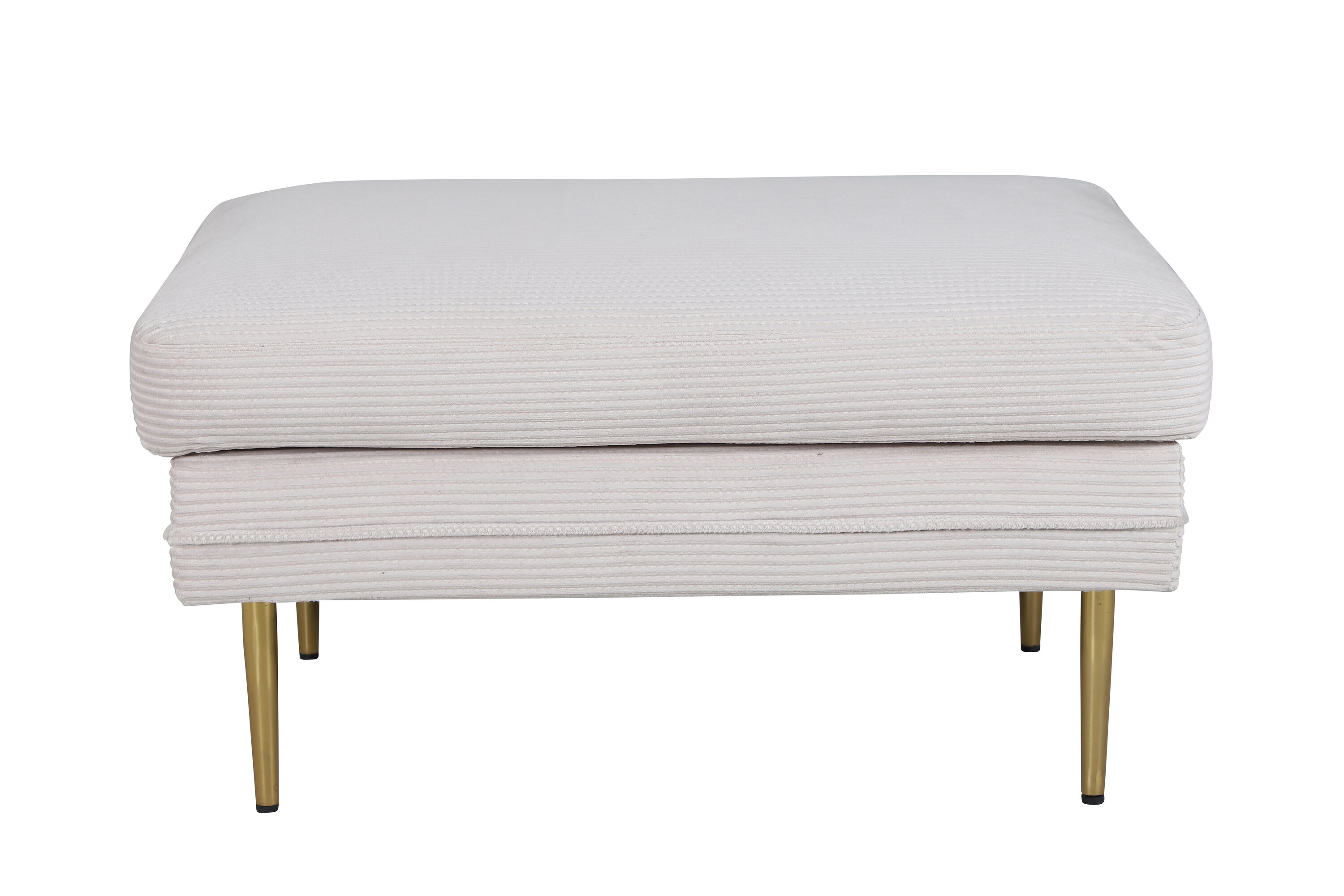 Laissez le design moderne rencontrer la nostalgie des années 50 avec ce pouf en velours côtelé tendance de la série Boom ! Ce repose-pieds impressionne par son look luxueux et devient un détail intérieur élégant. Fabriqué en blanc osseux/beige de délicieux velours côtelé, bois et métal. Les pieds de couleur laiton en métal thermolaqué sont élégants et contribuent à une atmosphère aérée. Dimensions du pouf : Longueur : 90 cm, largeur : 70 cm, hauteur : 49 cm. Ici, le design nordique droit est combiné avec des formes douces - meublées seules comme une icône de style ou avec nos fauteuils et canapés de la même série !