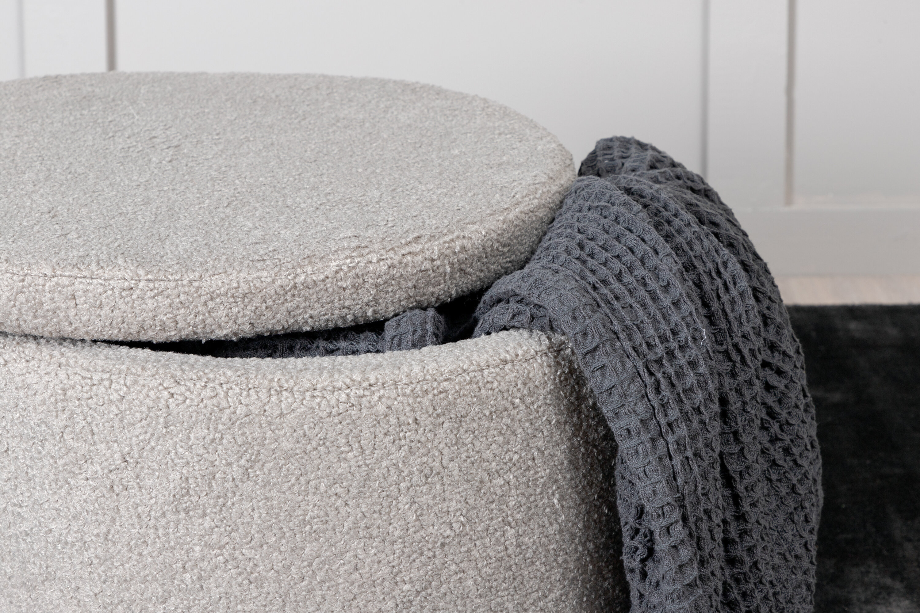 Aménagez votre maison de manière intelligente, bien pensée et avec style grâce à une bouffée de siège facile à placer de la série Dunken ! Avec son design droit en forme de cylindre et son tissu en peluche poilu de couleur grège à la mode, il crée une impression chaleureuse et à la mode. Utilisez-le comme repose-pieds pour reposer vos pieds, comme siège supplémentaire lorsque les voyageurs sont nombreux ou comme une icône de style à côté d'autres meubles - seule l'imagination fixe des limites ! Le couvercle est amovible et permet un rangement caché. Fabriqué à partir des matériaux mousse, fibre de coton, tissu nounours, bois courbé et acier. Puff Dimensions : Hauteur : 42,5 cm, diamètre : 35 cm.