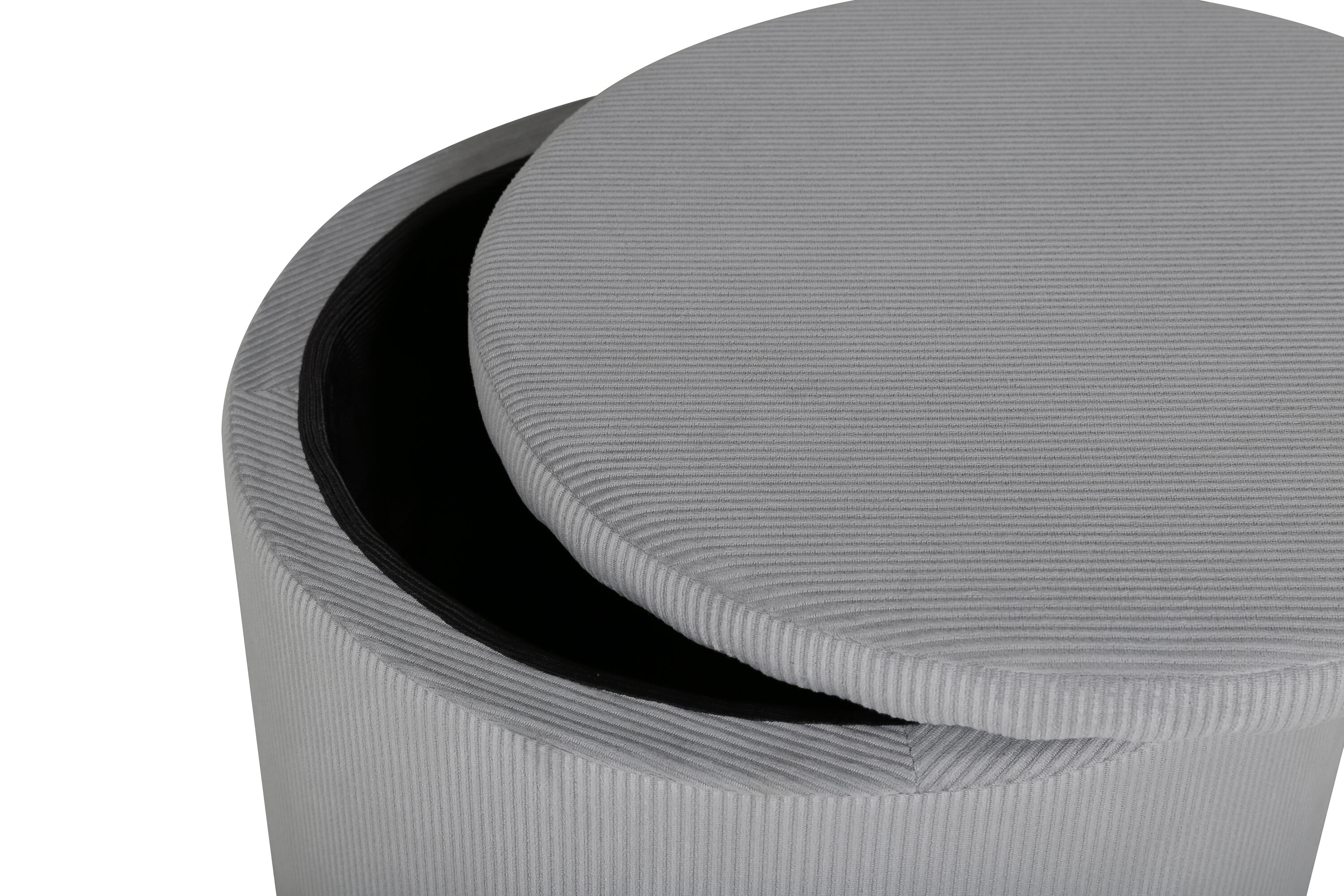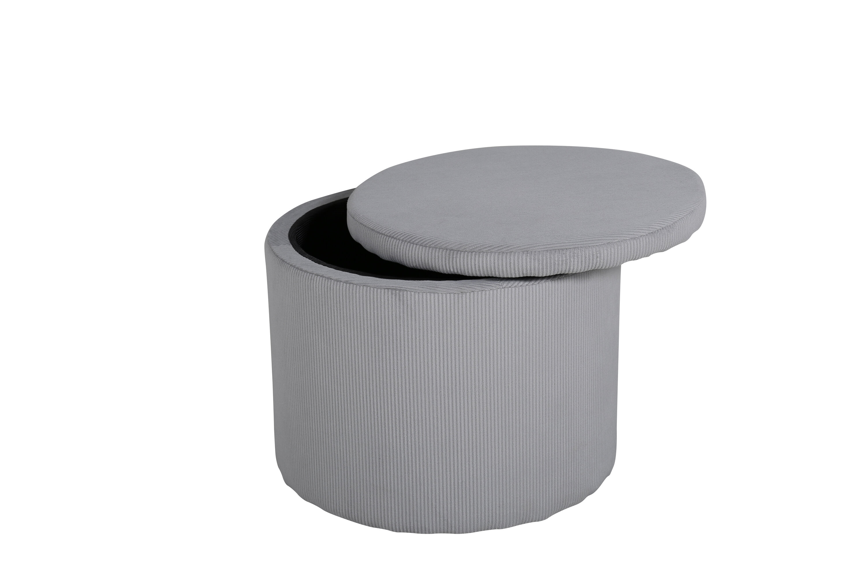 Associez un design moderne à la nostalgie des années 50 avec ce repose-pieds en velours côtelé gris ! Le repose-pied Dunken est à la fois facile à placer, pratique et accrocheur. Le repose-pieds est cylindrique avec un couvercle amovible qui permet un rangement caché et fonctionne également parfaitement à la fois comme repose-pieds, surface pour placer des articles ou siège supplémentaire. Fabriqué à partir de matériaux tels que la mousse, la fibre de coton, le tissu et le bois plié. Dimensions du repose-pied : Hauteur : 43 cm, diamètre : 51 cm.