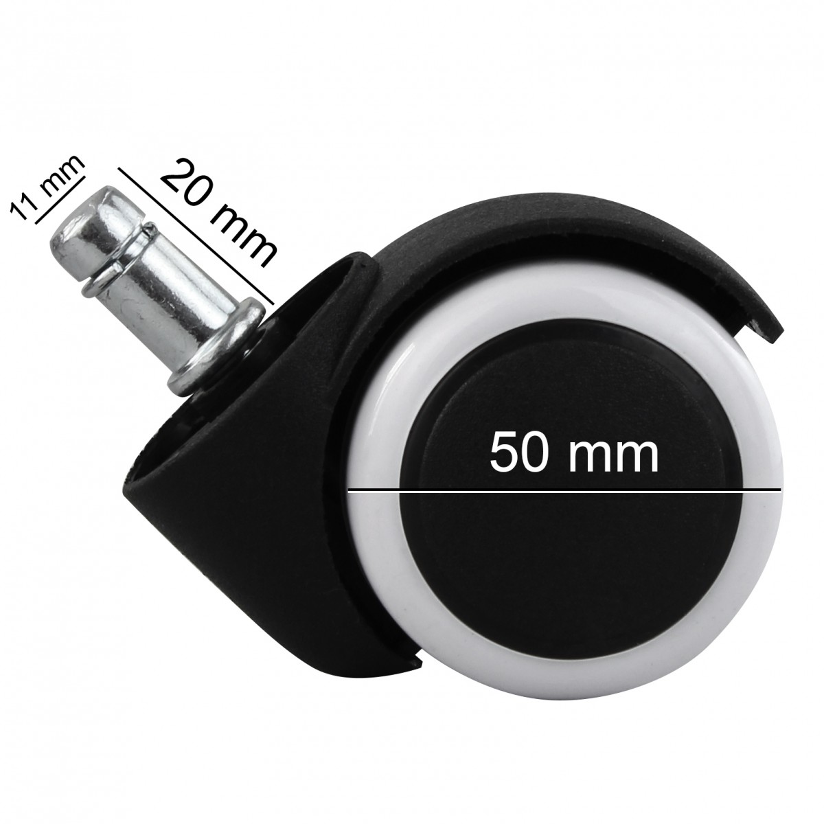 5 roulettes freinées pour sol dur polyuréthane noir/blanc | Diamètre 50 mm | Axe 11 mm