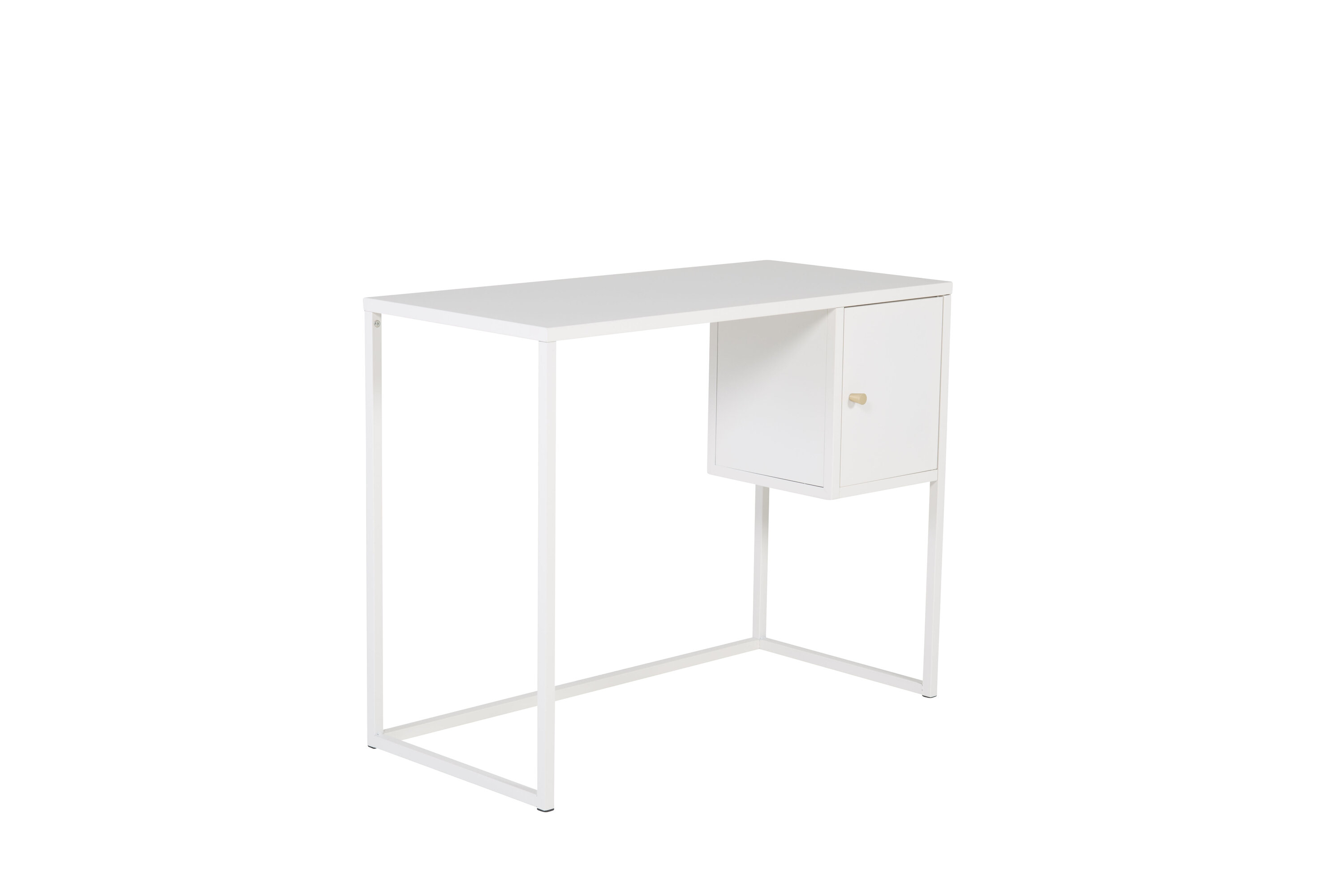 Baktal, un joli bureau au design industriel moderne avec un cadre intégré et une armoire carrée plus petite. Une porte plus petite avec un rangement caché et une surface en relief placée dans le coin droit en acier revêtu de poudre blanche. La porte a un bourgeon de couleur laiton. Dimensions : Longueur : 95 cm, largeur : 45 cm, hauteur : 50 cm. Un assemblage plus léger est requis.