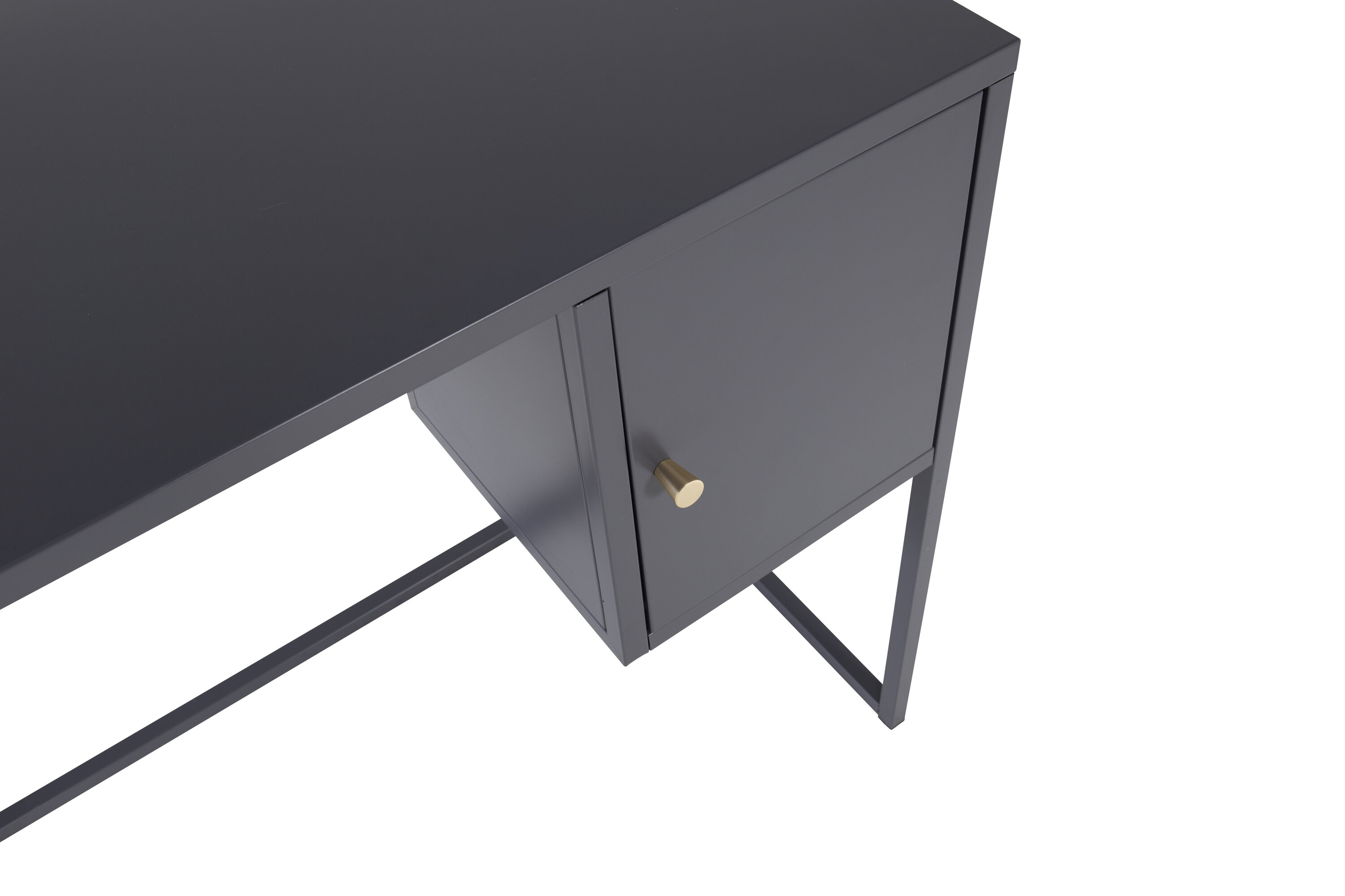 Baktal, un joli bureau au design industriel moderne avec un cadre intégré et une armoire carrée plus petite. Une porte plus petite avec un rangement caché et une surface en relief placée dans le coin droit en acier enduit de poudre gris clair. La porte a un bourgeon de couleur laiton. Dimensions : Longueur : 95 cm, largeur : 45 cm, hauteur : 50 cm. Un assemblage plus léger est requis.