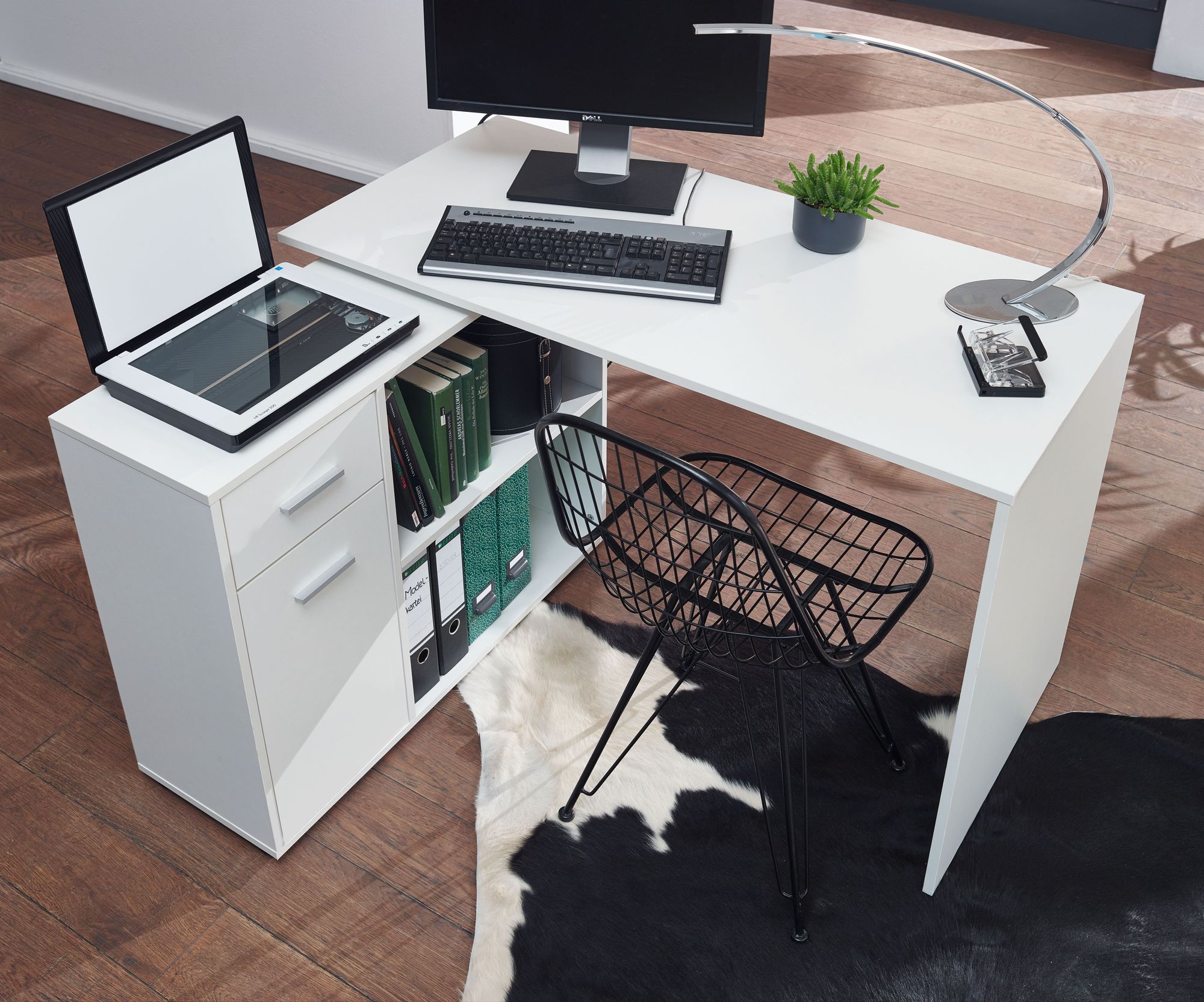 Informations sur le produit "Bureau d'angle design avec étagère | Blanc | 120 x 75,5 x 106,5 cm"
