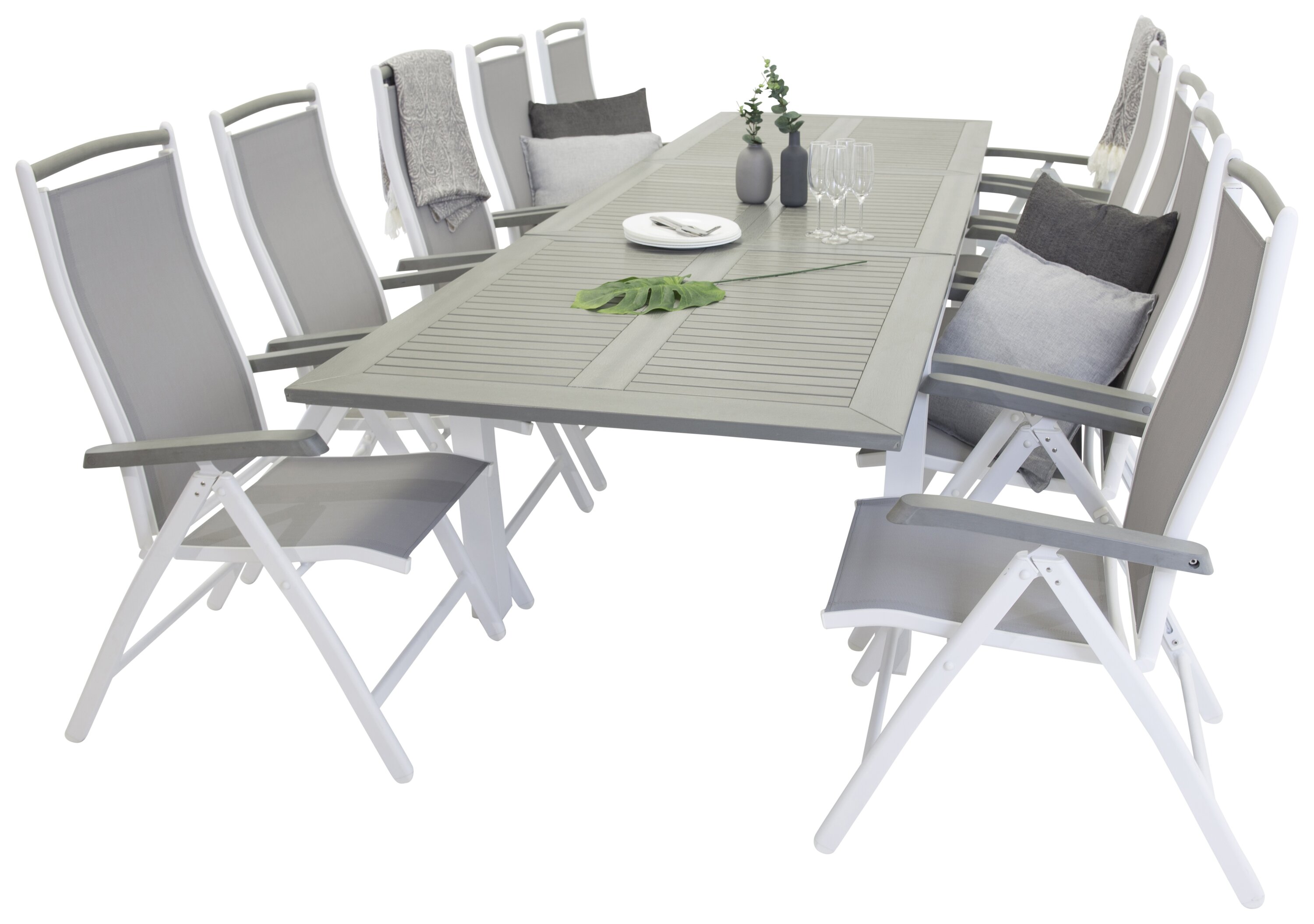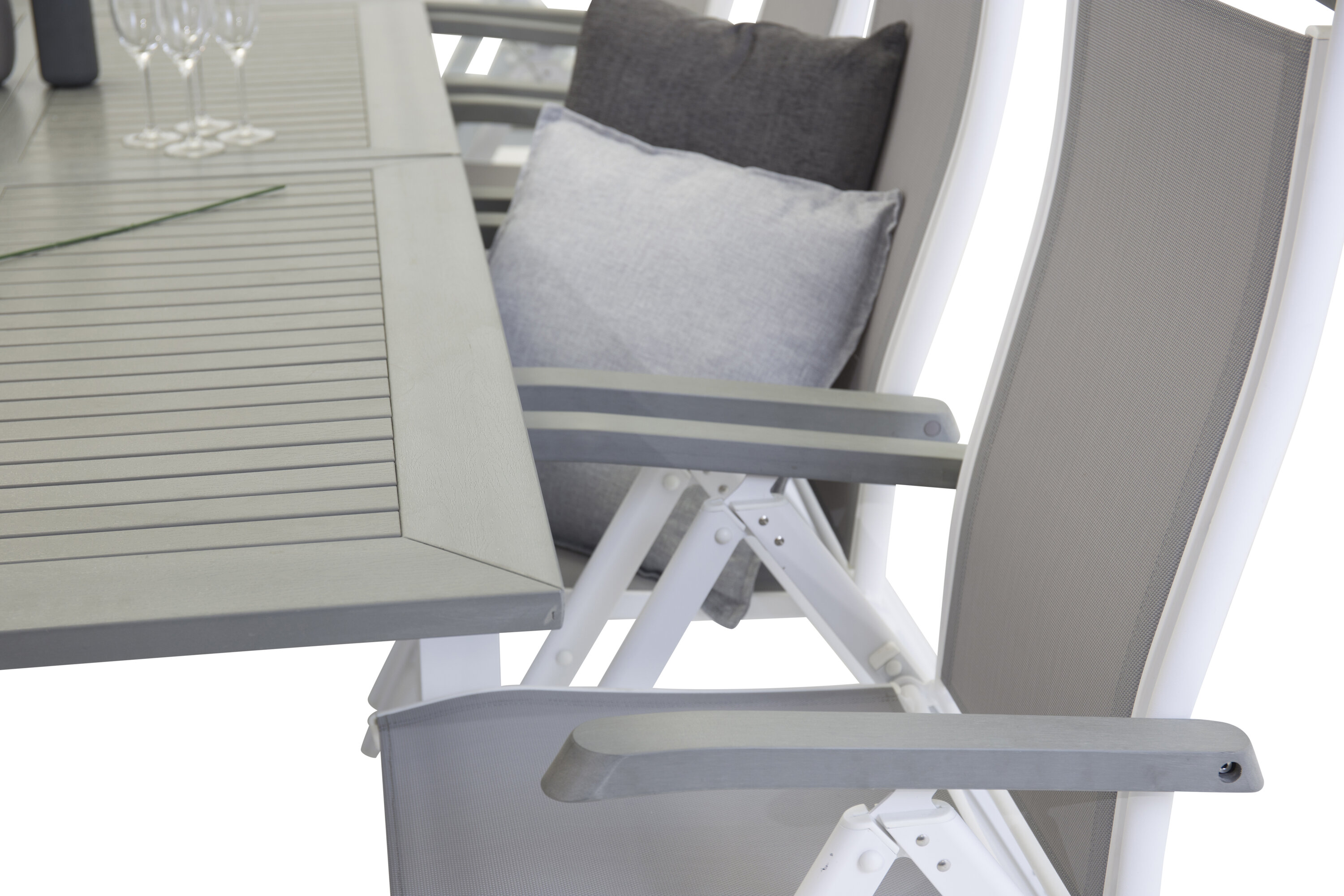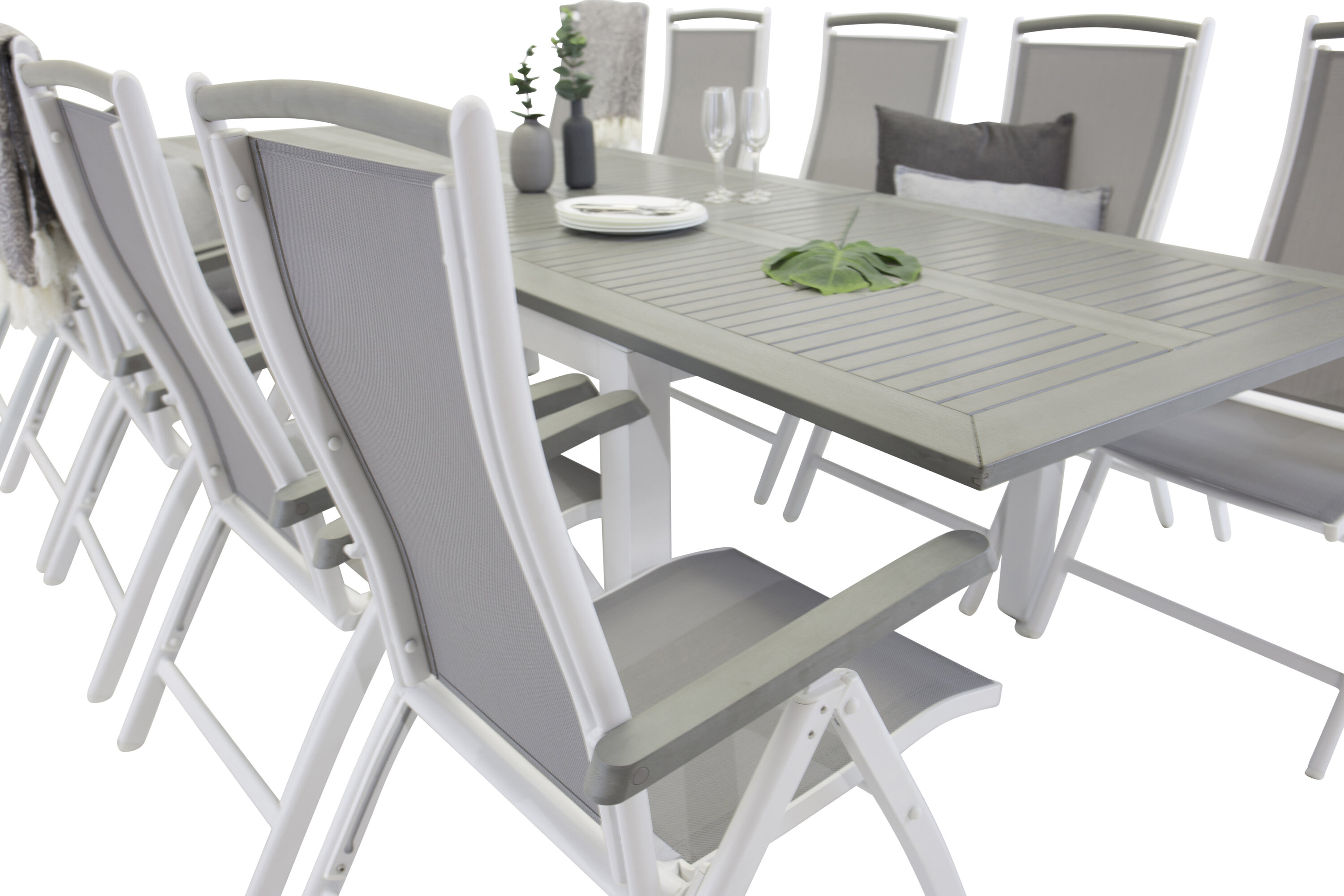 Albany Bord - Vit Alu/grå aintwood - 224/324*100+Albany 5 :pos Stol - Vit Alu/grå