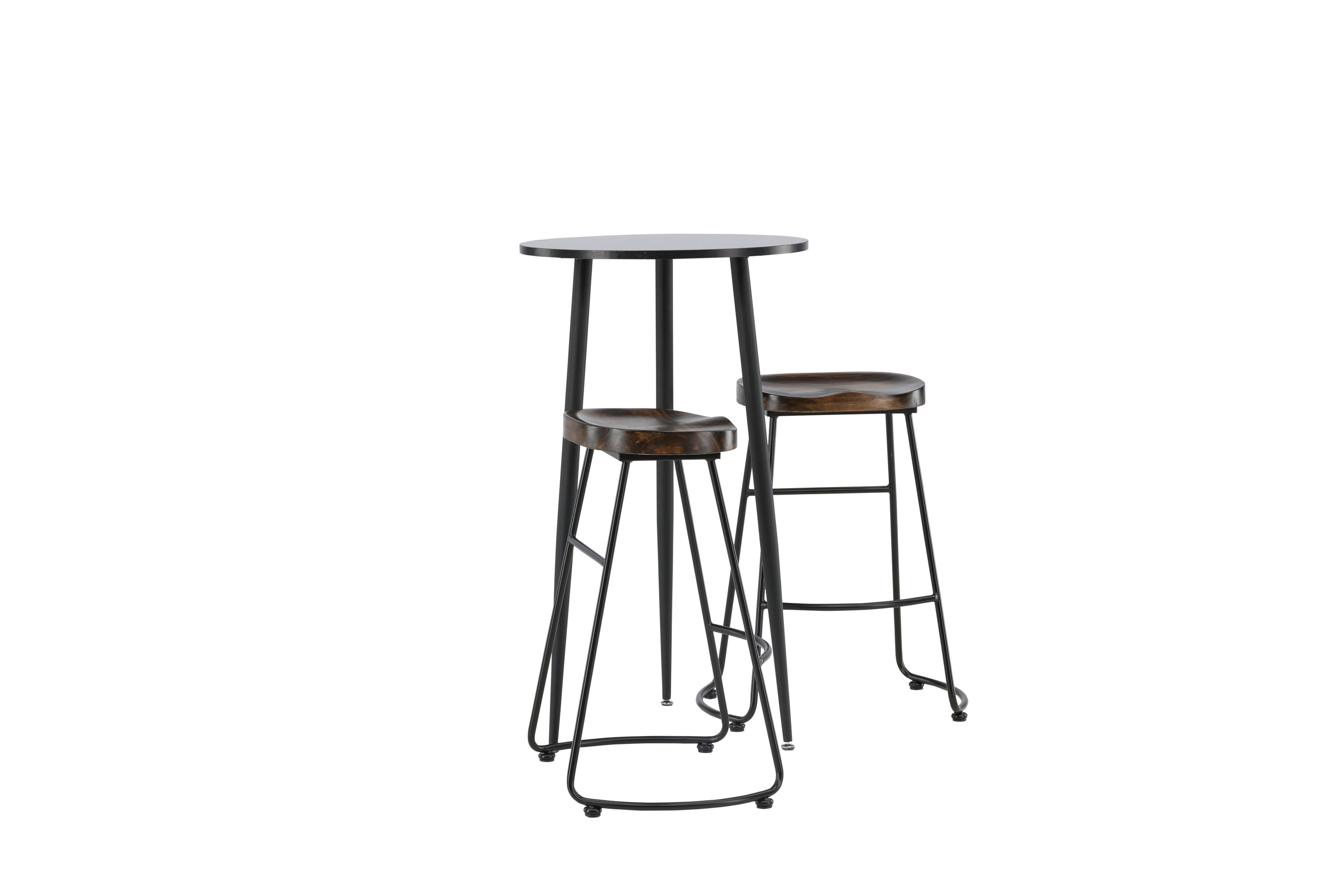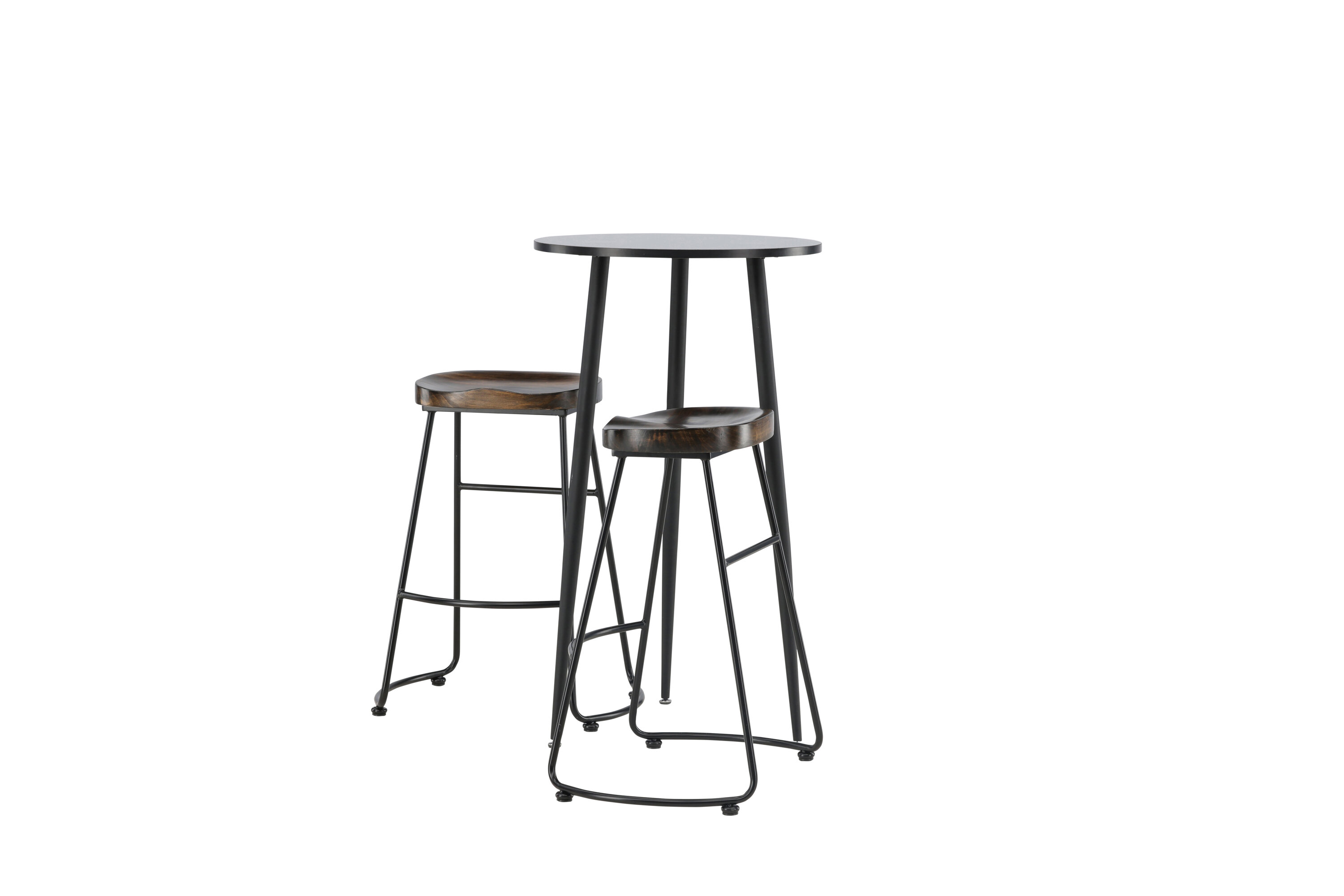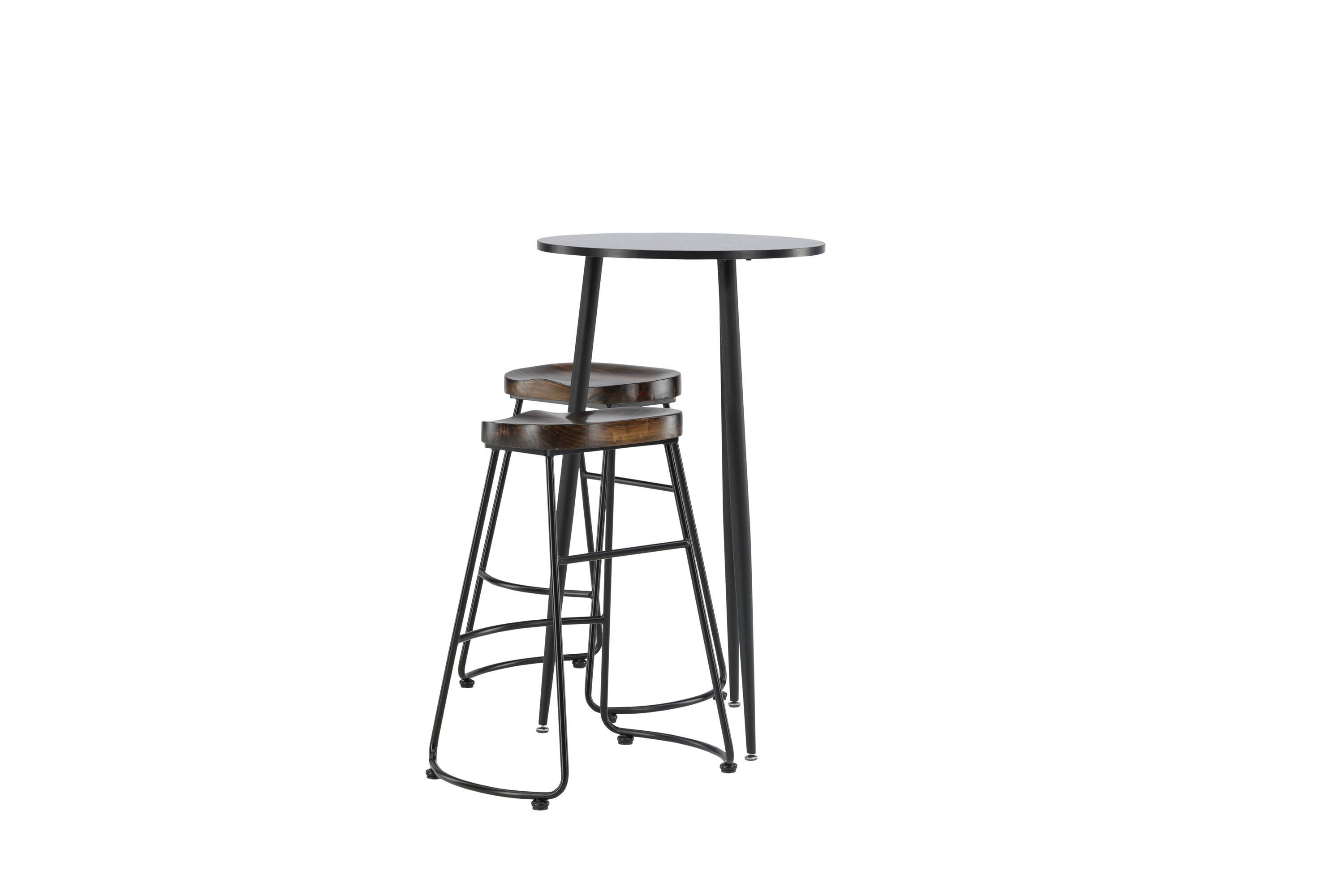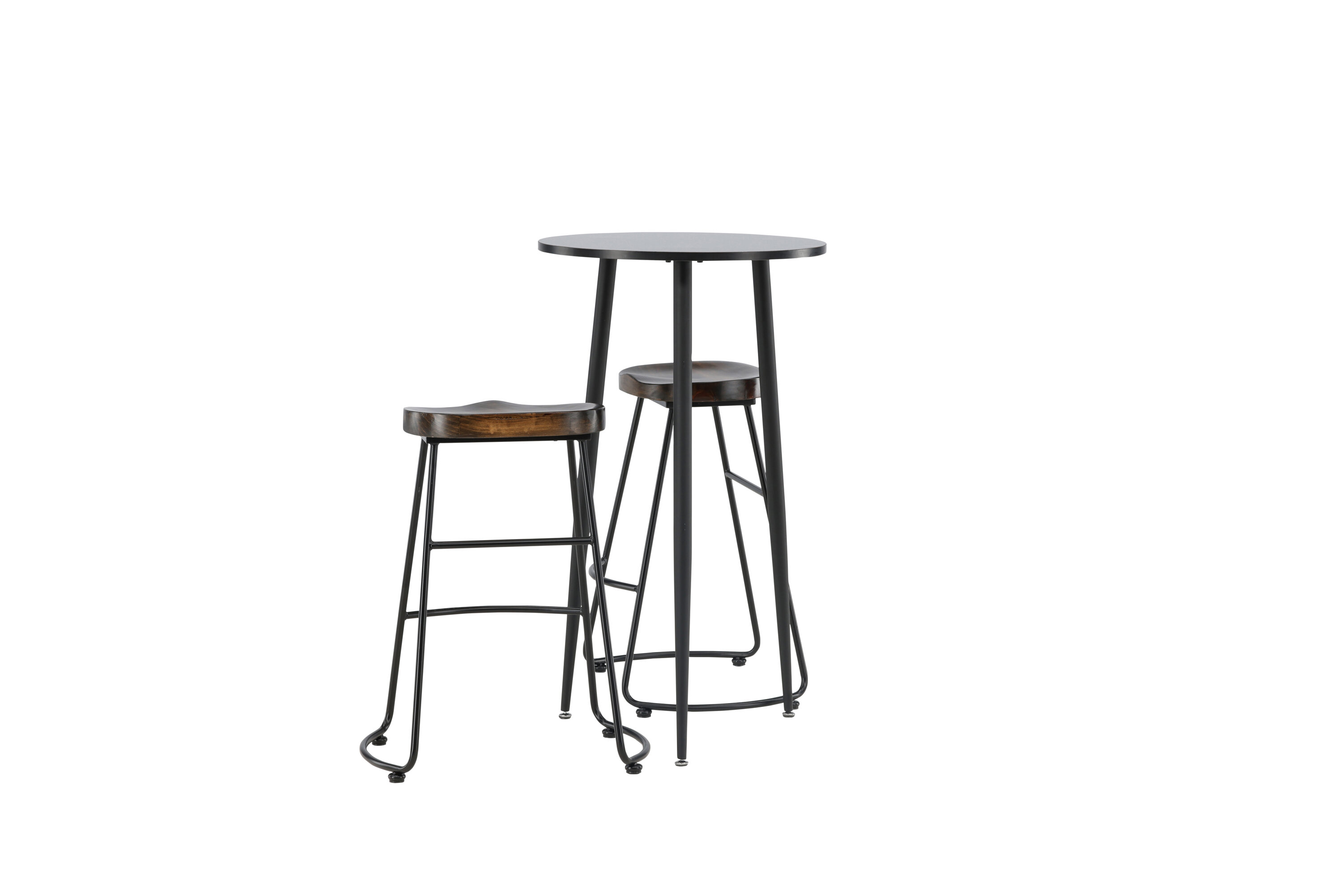 Rustique et élégante ! La magnifique table de bar Plaza a un plateau rond en MDF noir et les pieds de la table sont légèrement évasés en métal noir. Ici en combinaison élégante avec des tabourets de bar de la série Ozark. La chaise a un design classique avec un siège en bois foncé, façonné pour être aussi confortable que possible. La base en acier noir est stable et dispose d'un repose-pieds intégré. Décorez la petite cuisine dans des tons terreux ! Dimensions de la table : 60 cm.